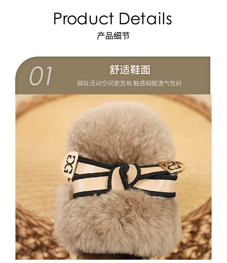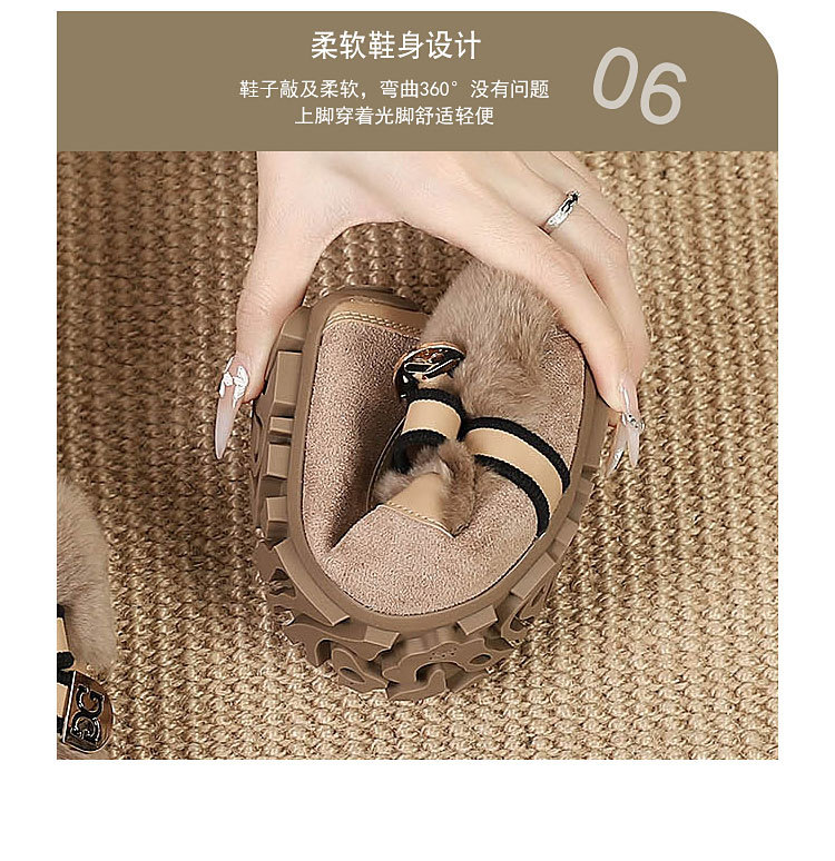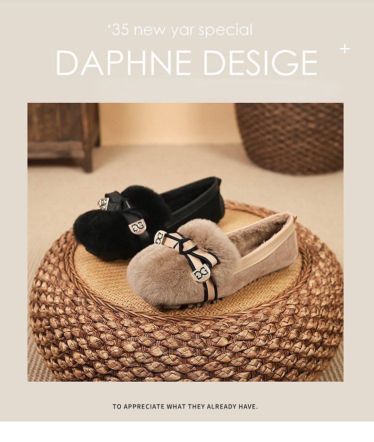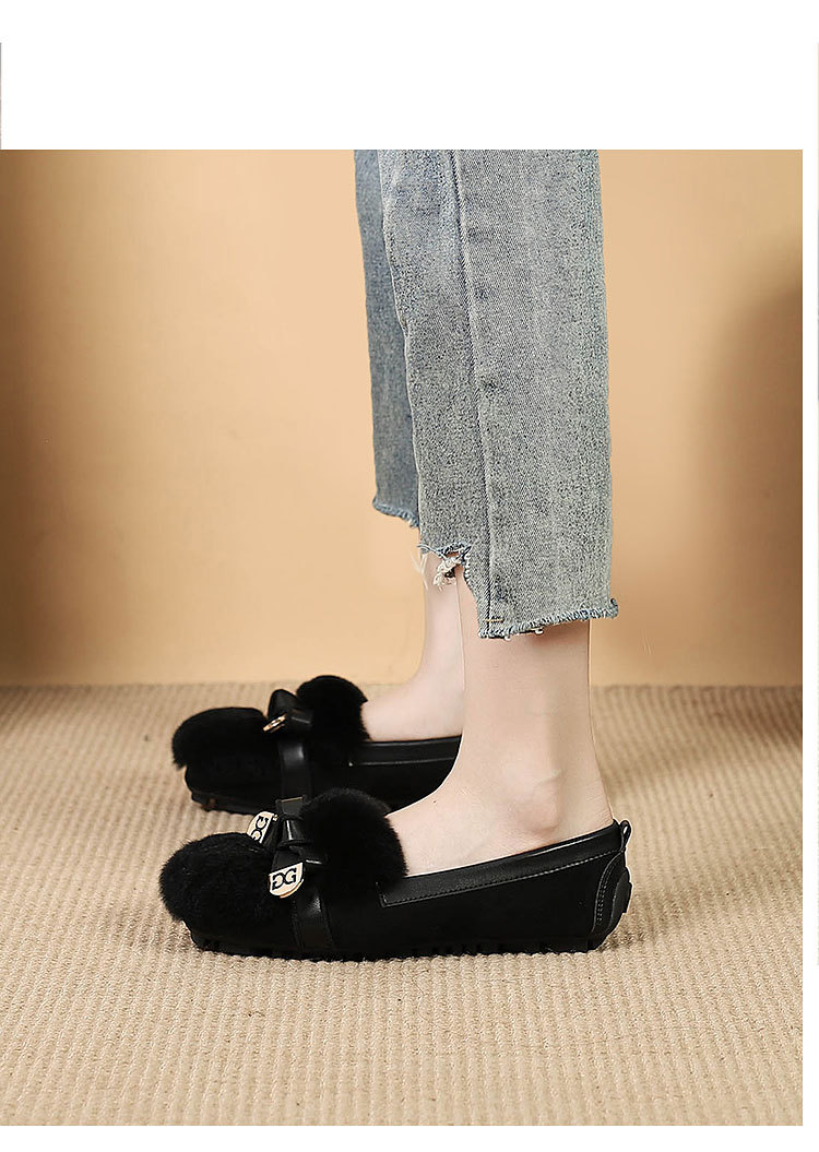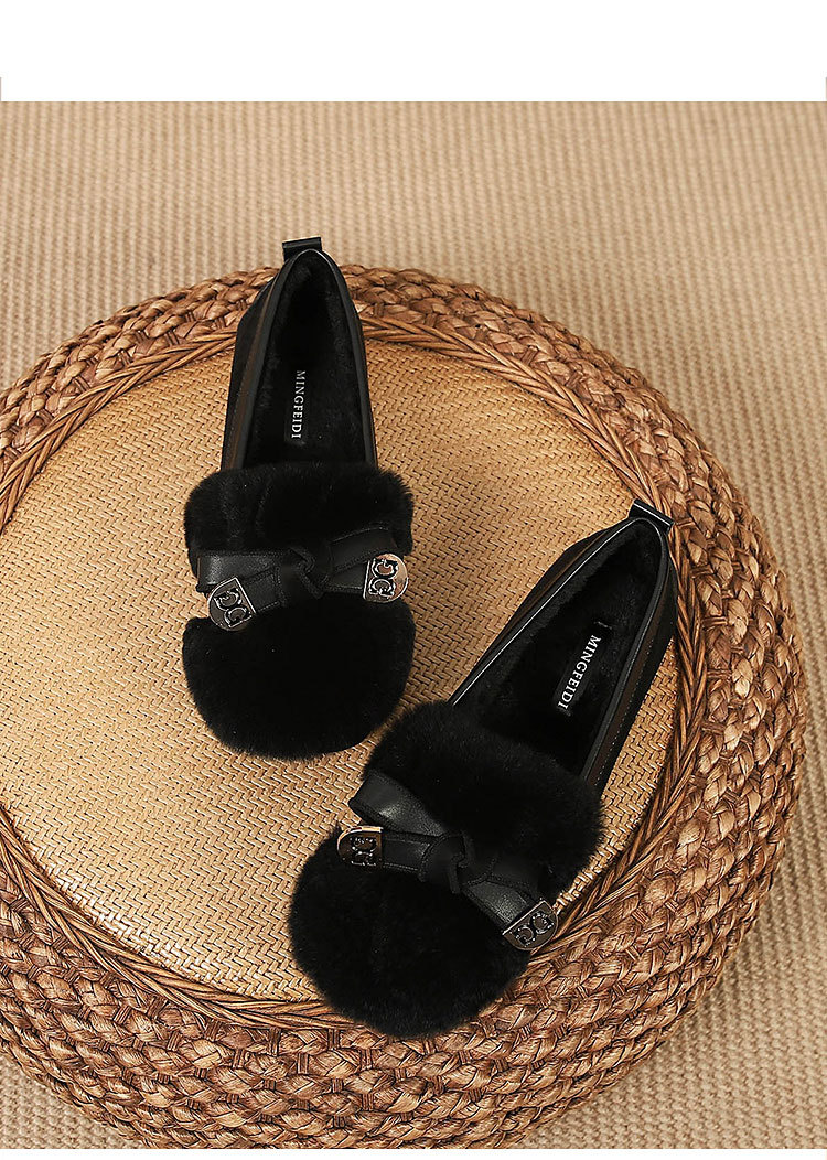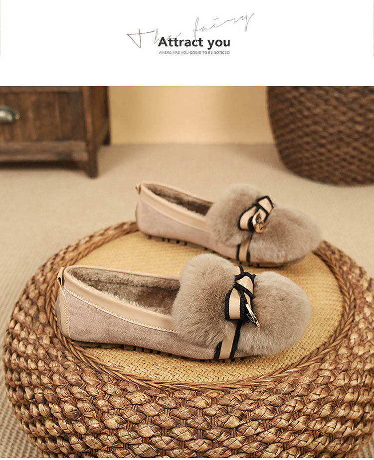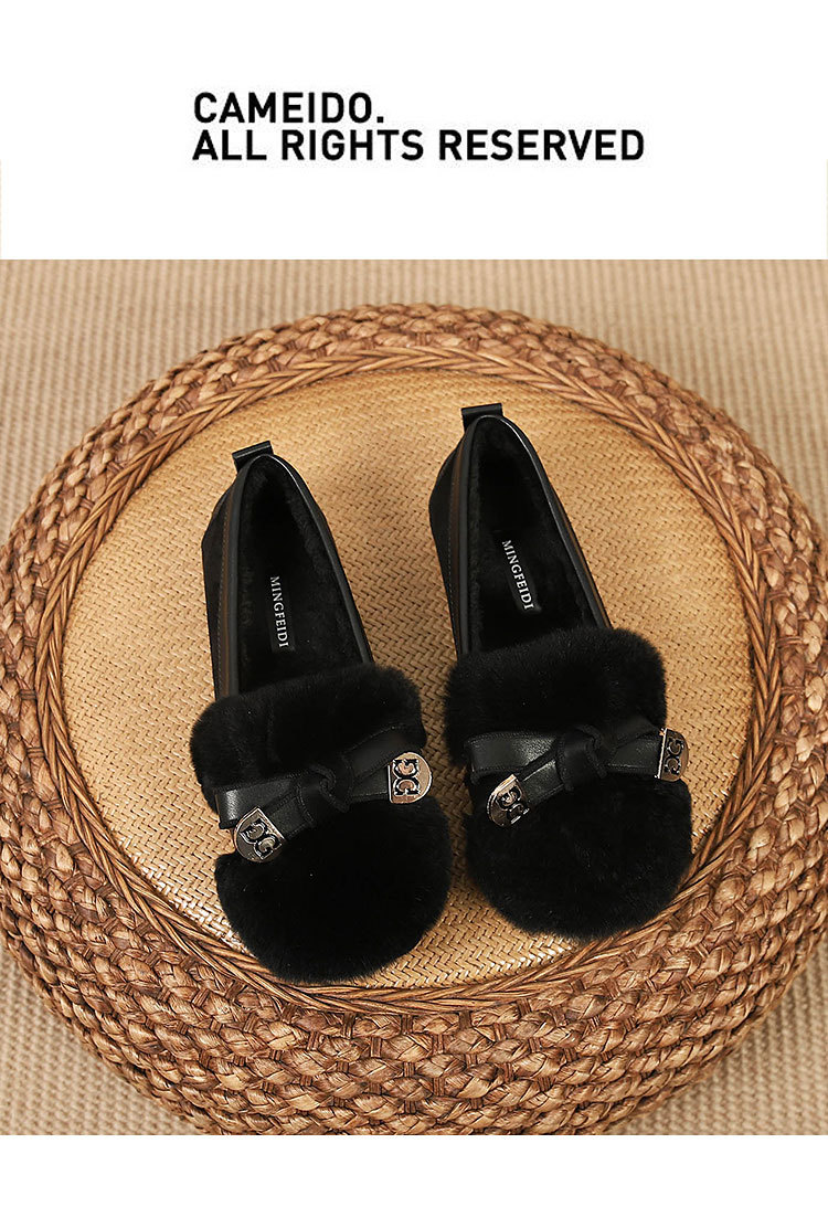Обувь Mao Женская осень и зима 2023 новые туфли на плоской флисовой подкладке Bean из меха кролика, хлопчатобумажные половники, большие размеры 41-43, зима