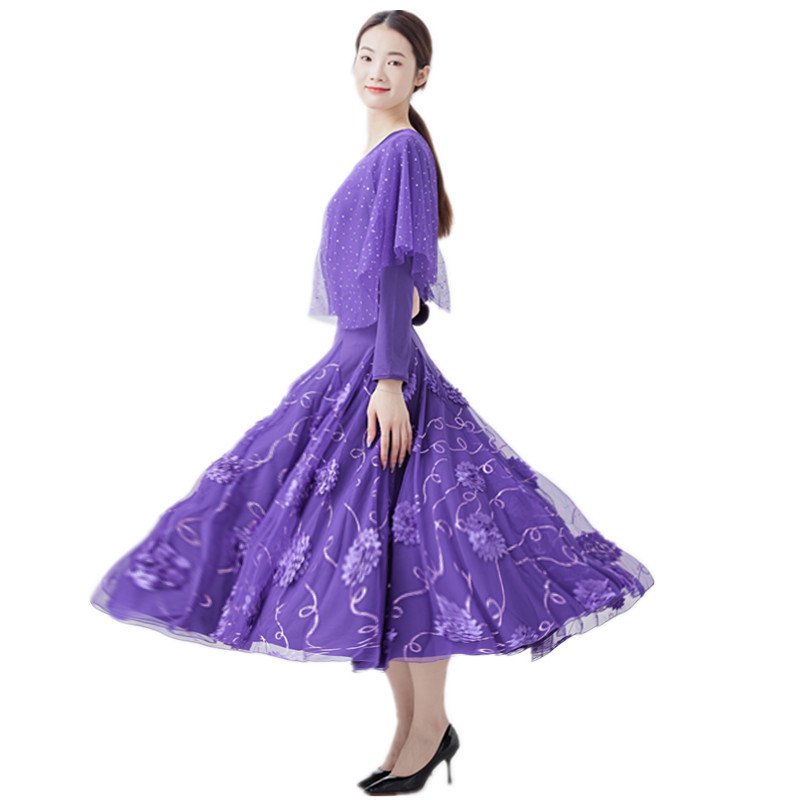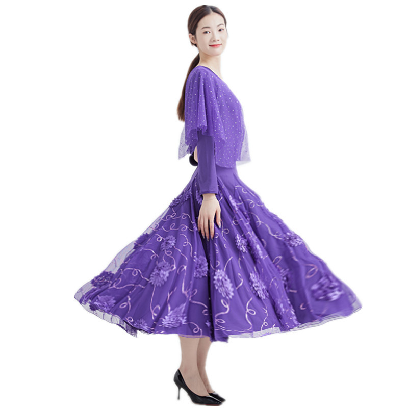 Новая юбка для современного танца, большая распашная юбка, одежда для выступлений с длинными рукавами, одежда для выступлений для бальных танцев, современный танец