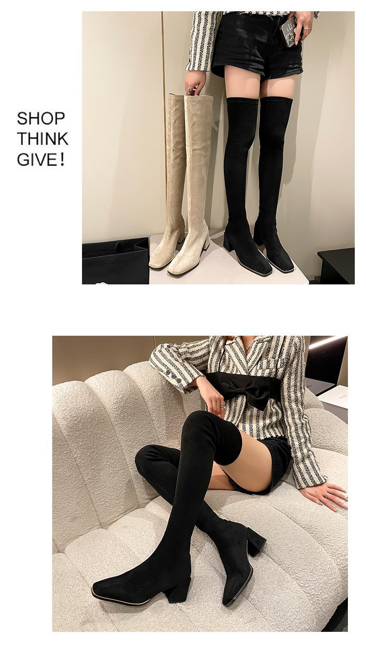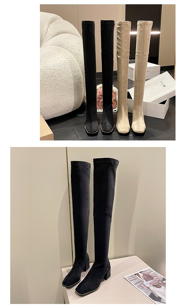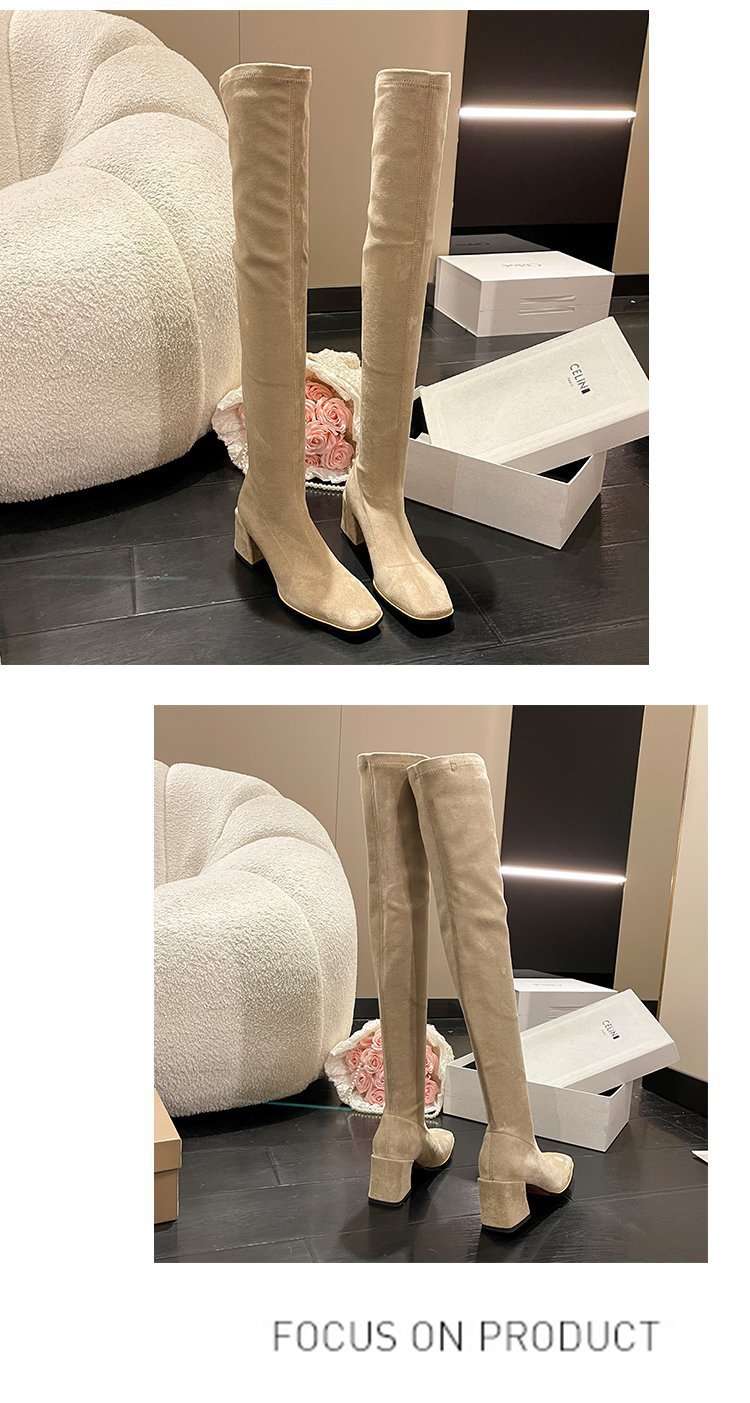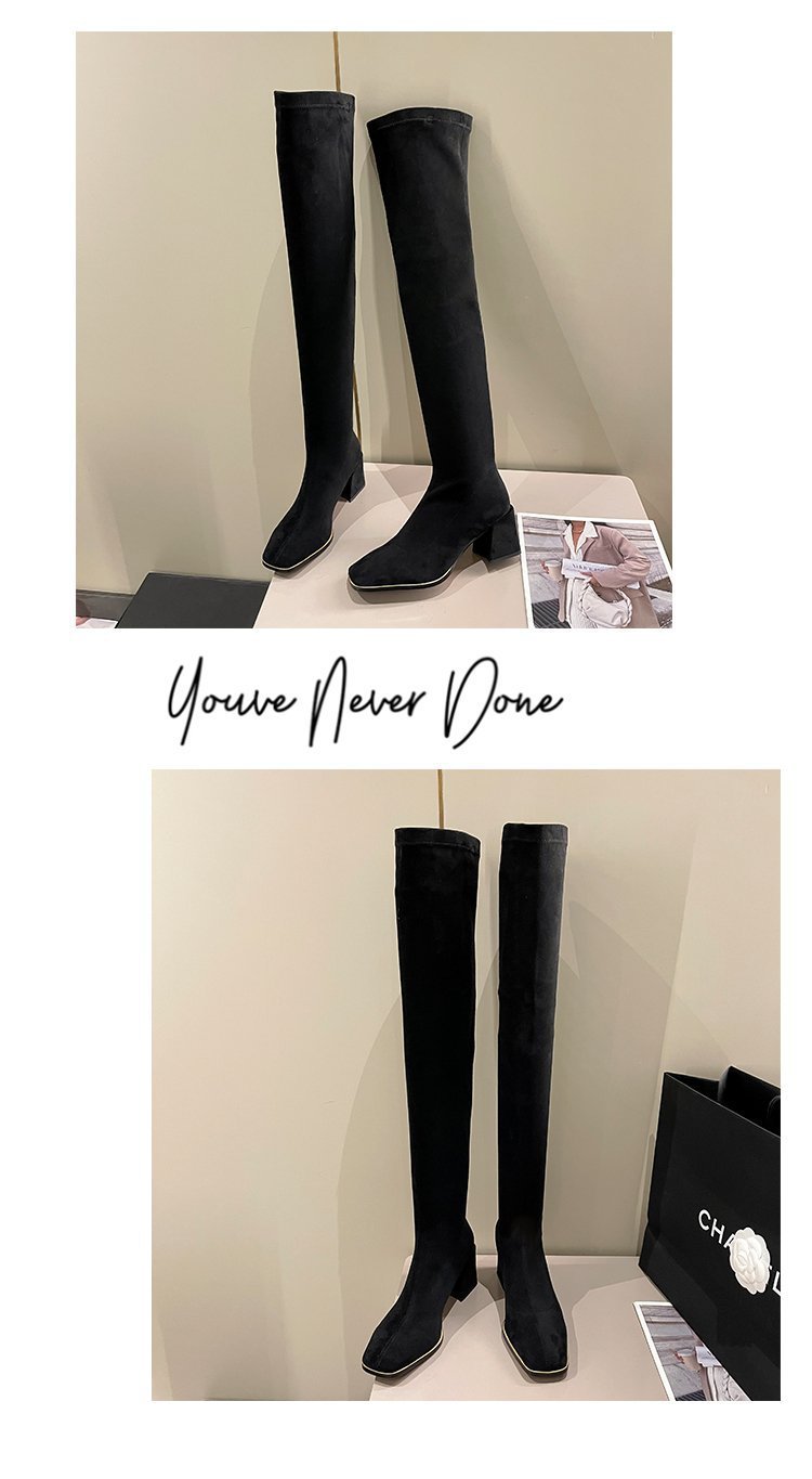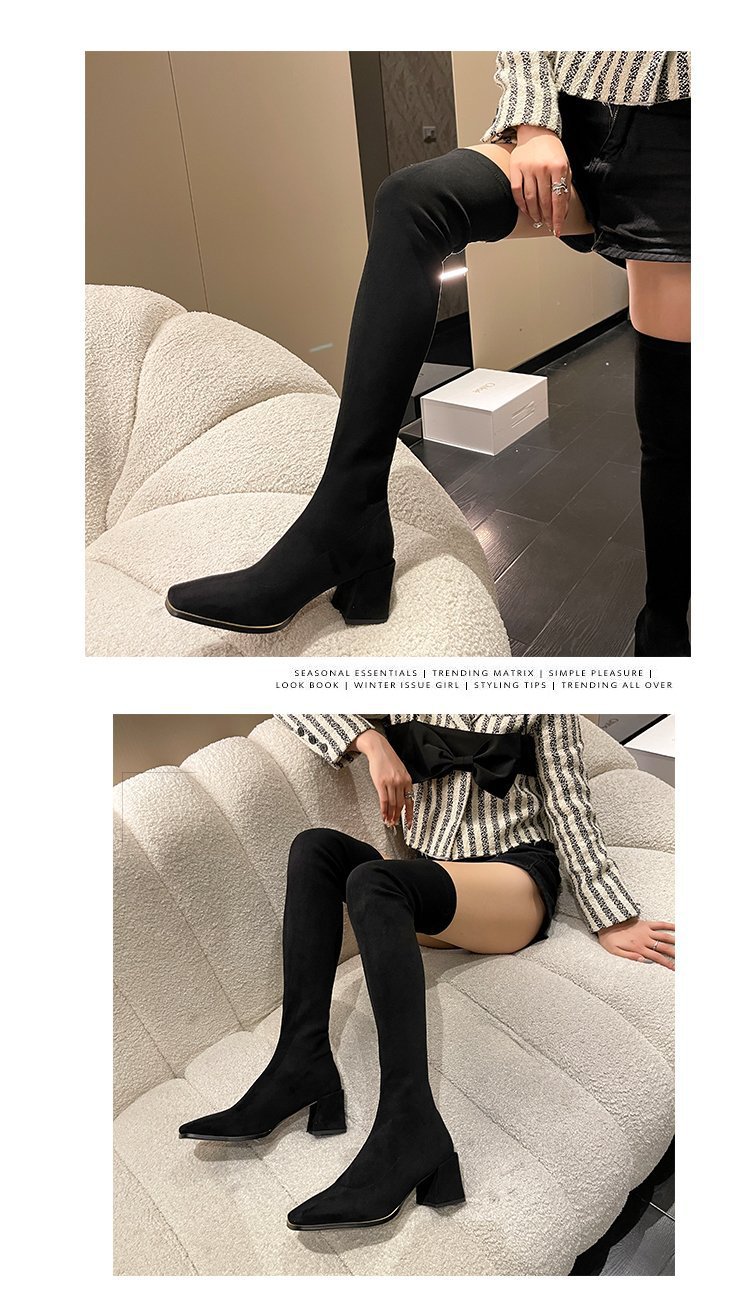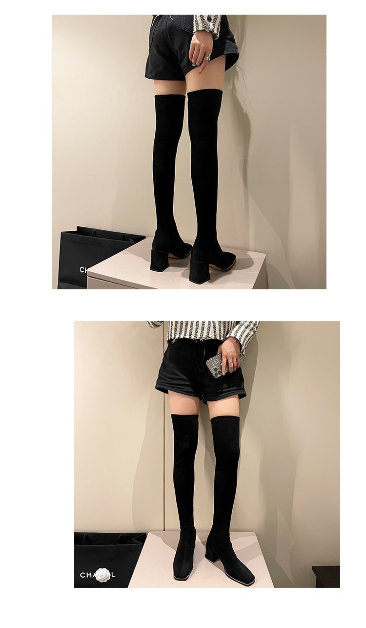 Сапоги выше колена Женские осенне-зимние сапоги на массивном каблуке на высоком каблуке 2023 Новые однотонные замшевые сапоги с квадратным носком