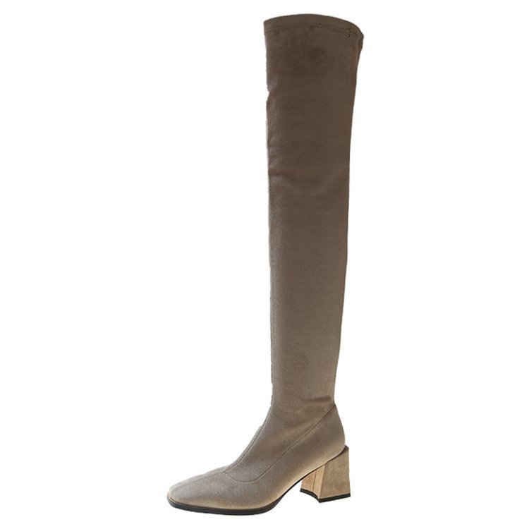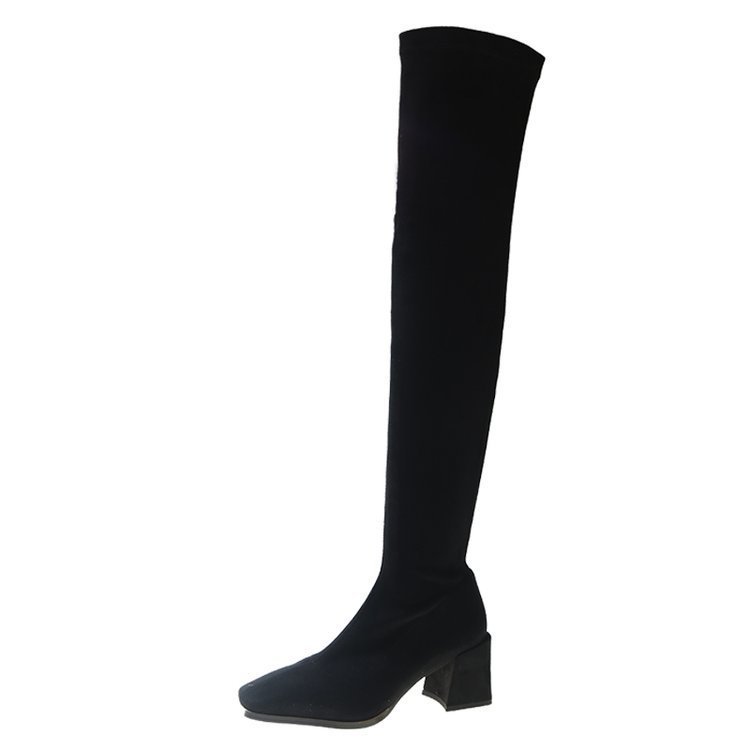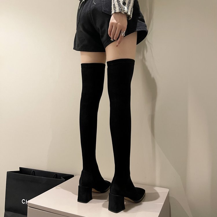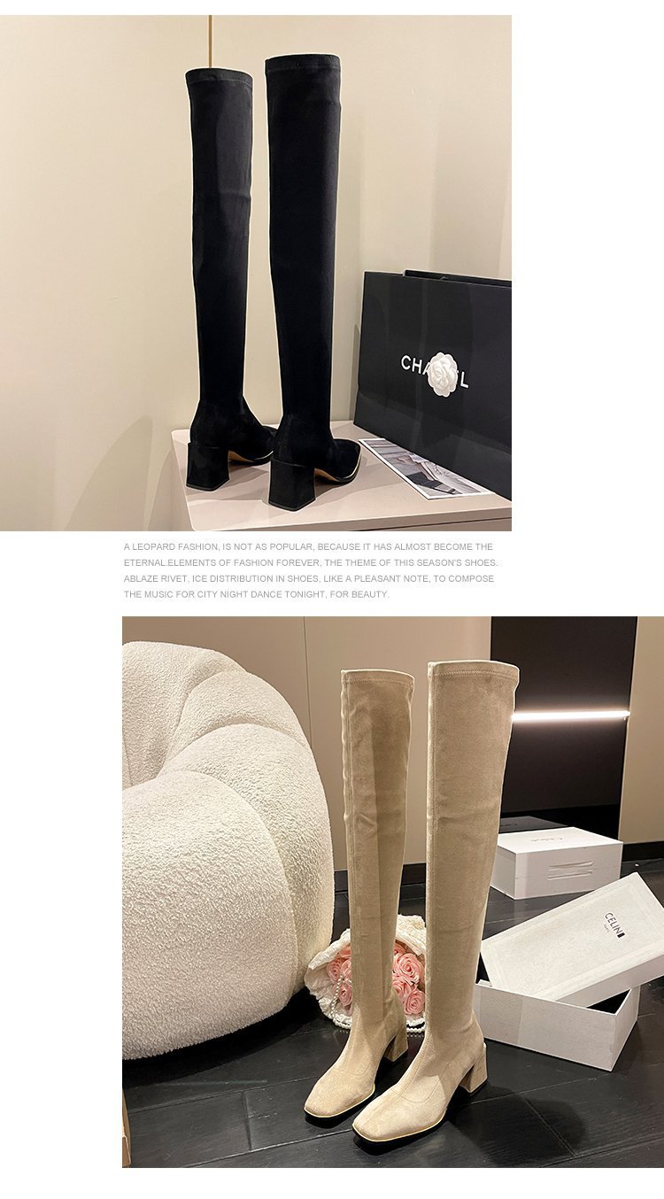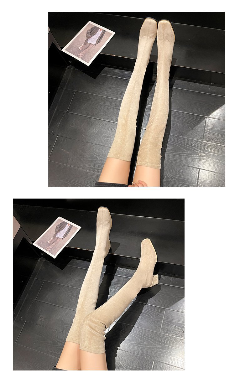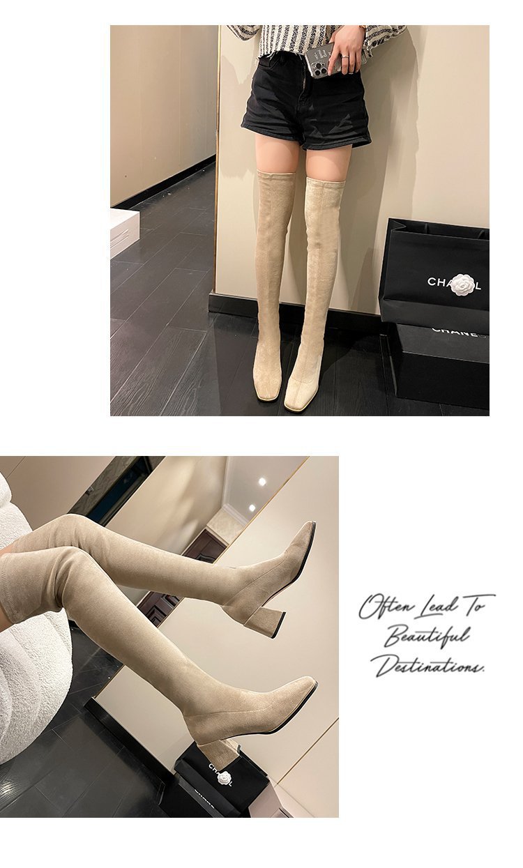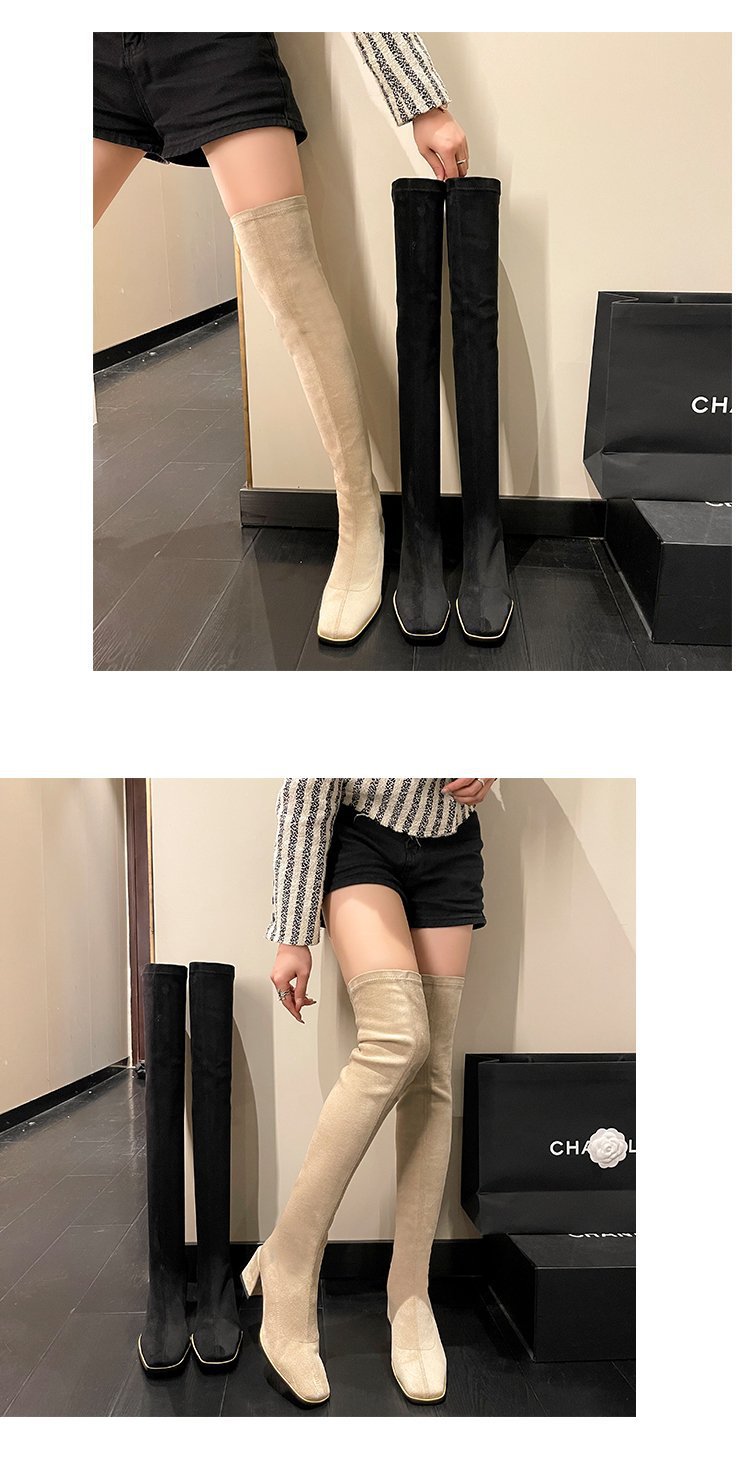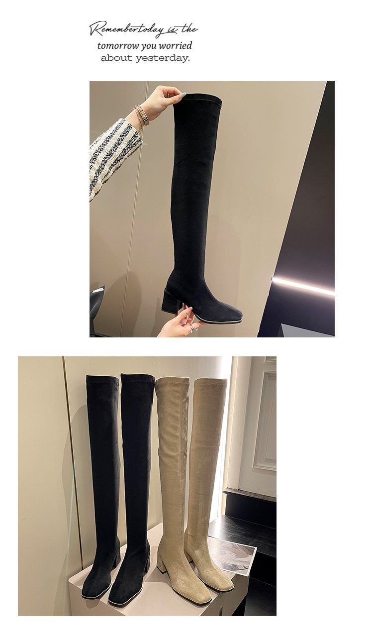 Сапоги выше колена Женские осенне-зимние сапоги на массивном каблуке на высоком каблуке 2023 Новые однотонные замшевые сапоги с квадратным носком