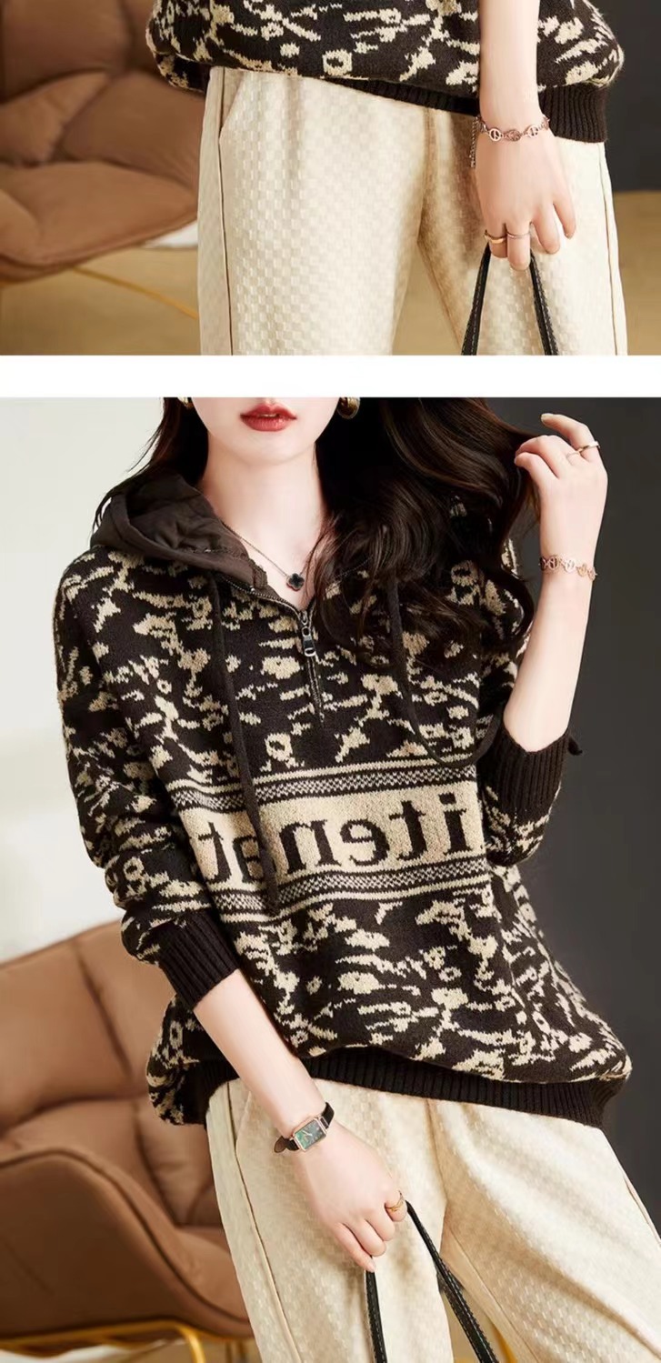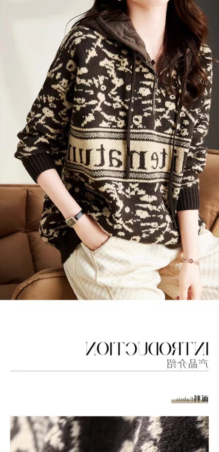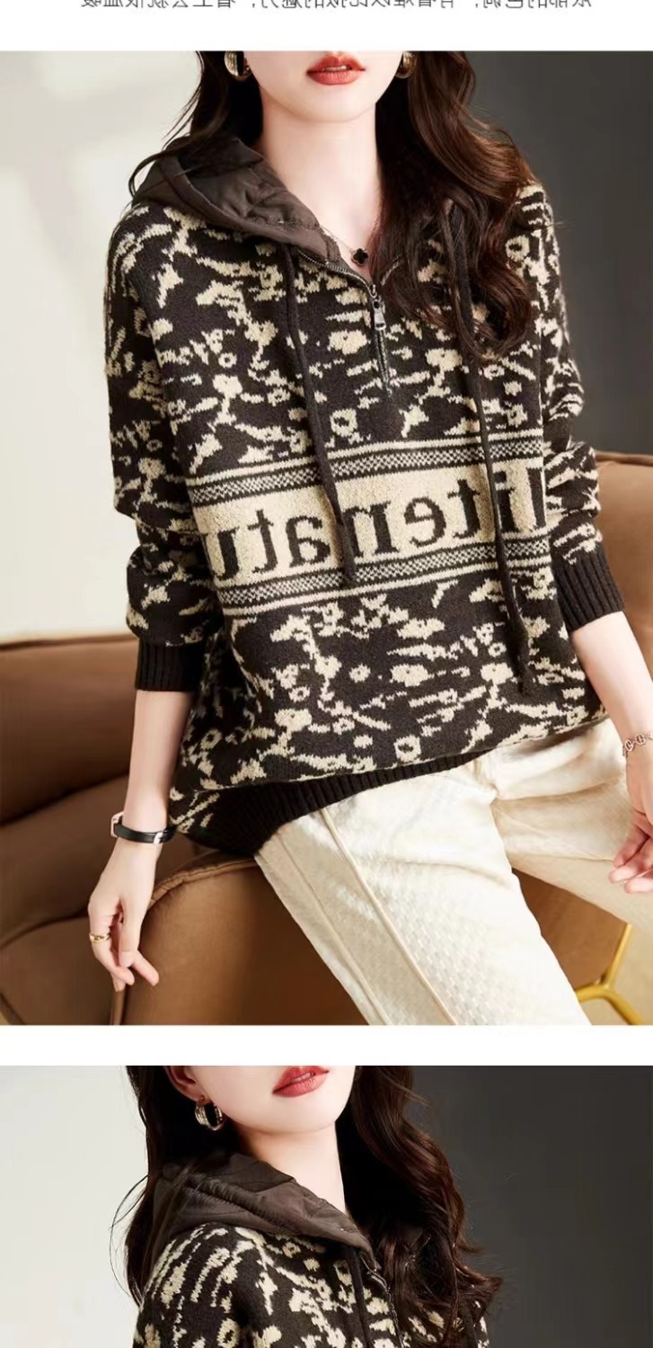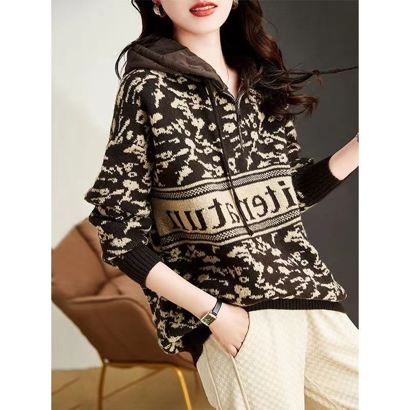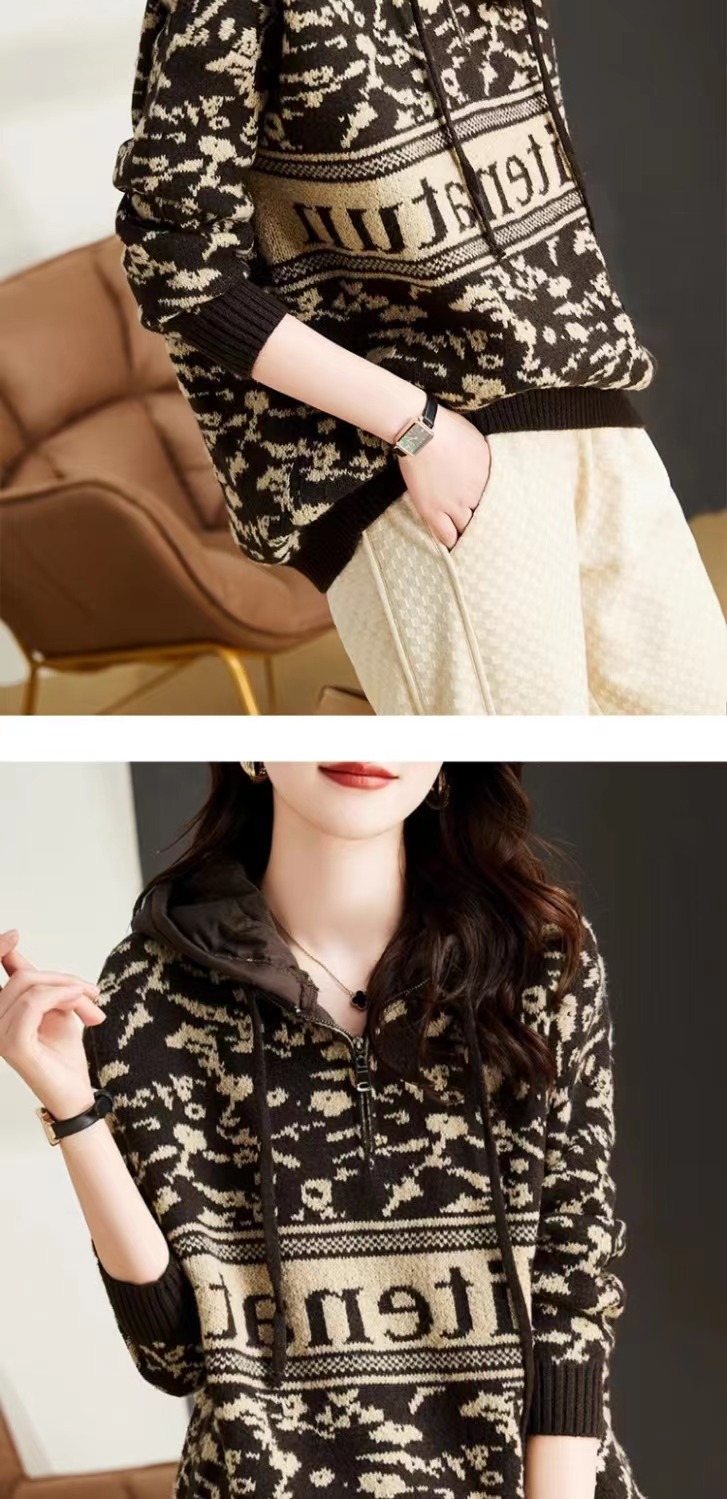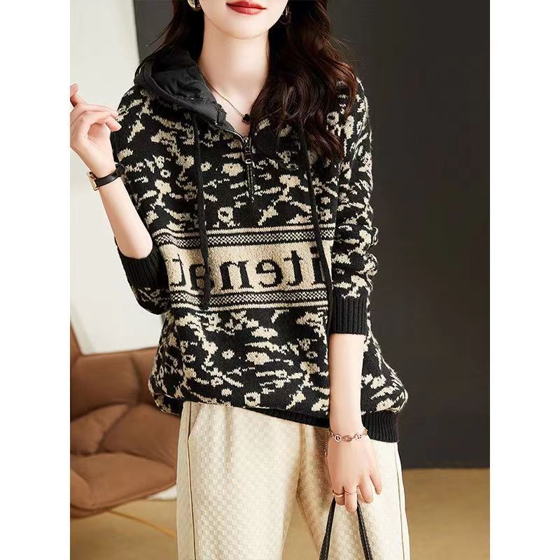 Женский свитер, Базовая рубашка, пуловер с капюшоном, топ с пухленькой девушкой, свободный Леопардовый принт, модная верхняя одежда для похудения, вязание