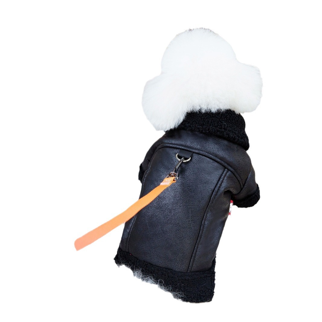 2023 осенне-зимнее Новое кожаное пальто для собак и кошек осенне-зимнее утолщенное флисовое пальто из овечьей шерсти для маленьких собак
