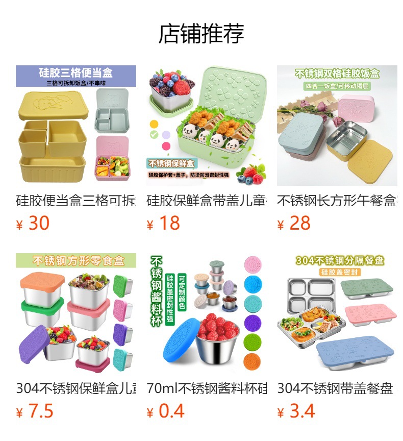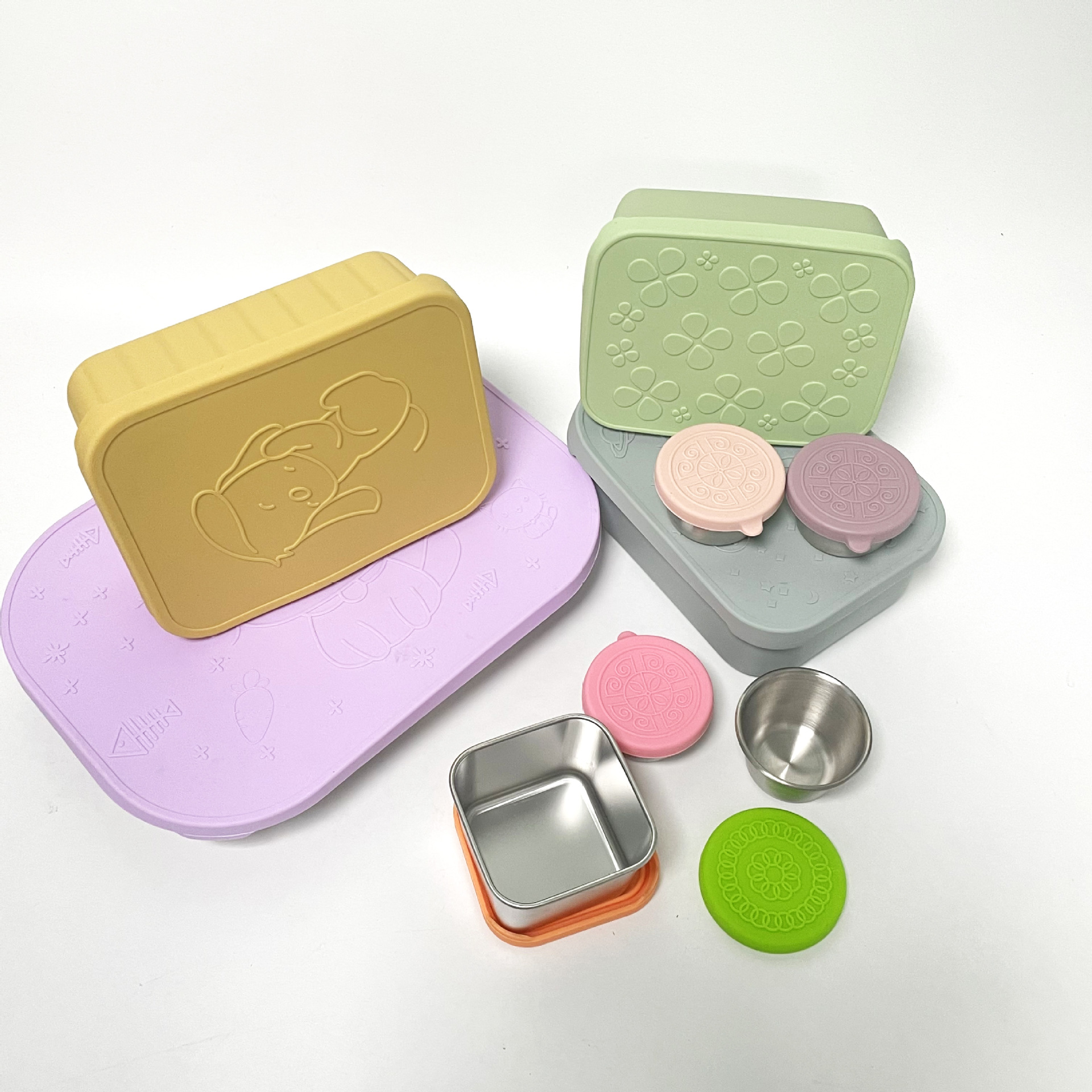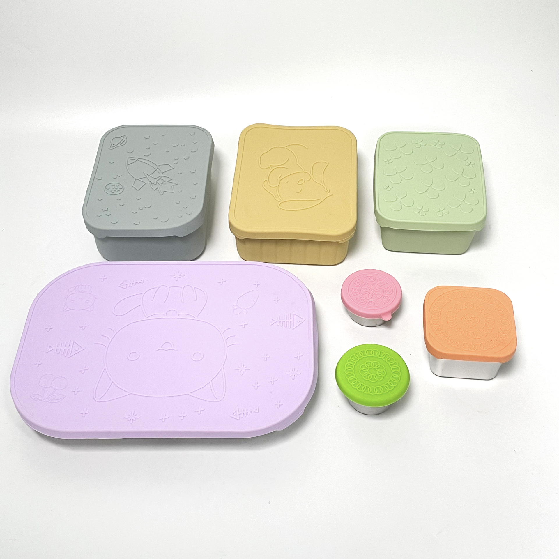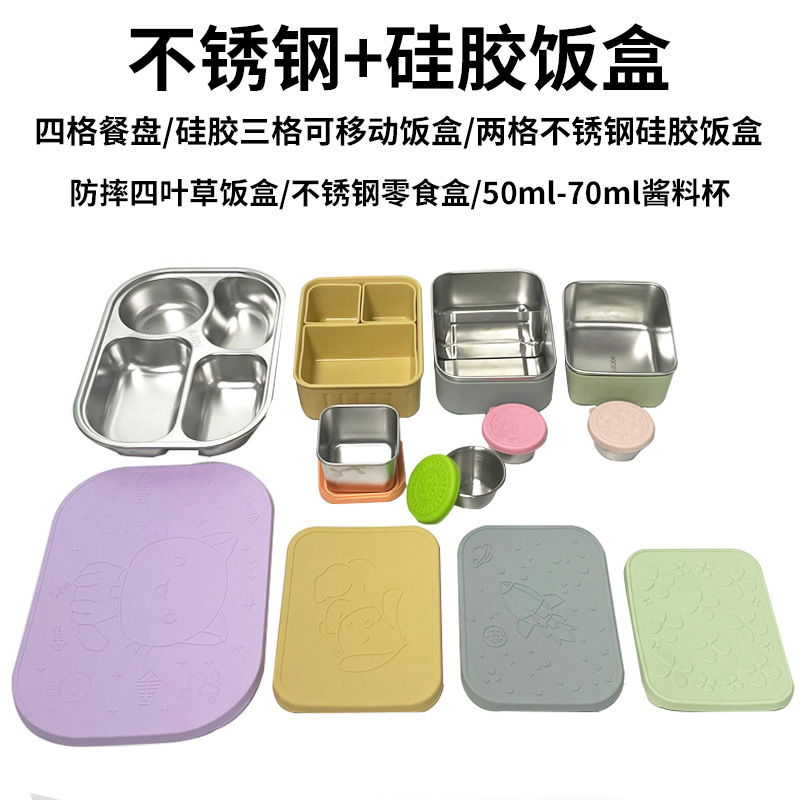 Чашка погружения 50 мл; Чашка погружения 70 мл; Квадратная Коробка Снэк; Клевер ланч бокс; Самолет Ланч-бокс с двумя отделениями; Силиконовый Ланч-бокс с тремя отделениями Puppy; Плита с четырьмя отсеками