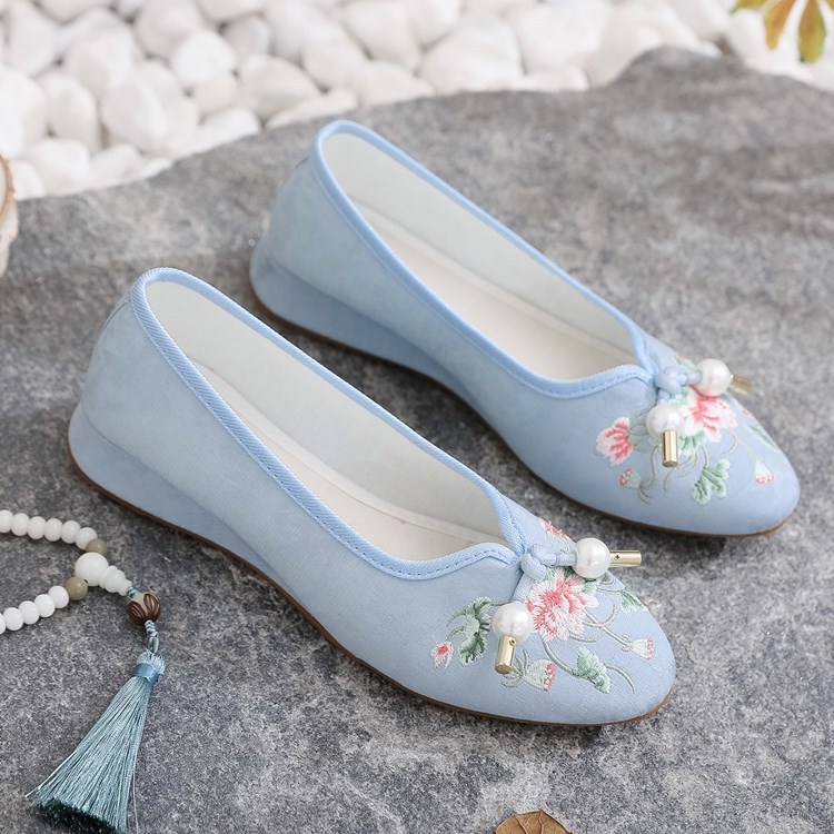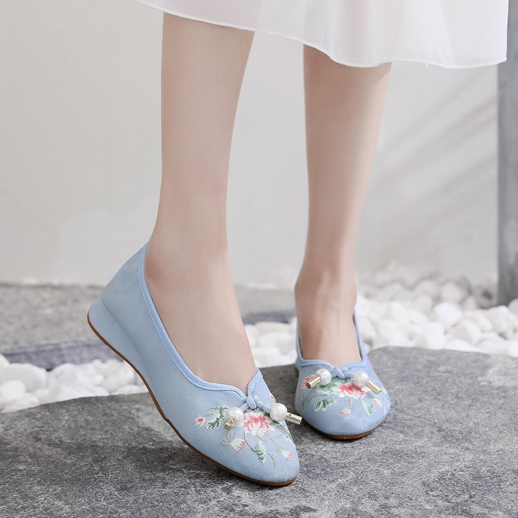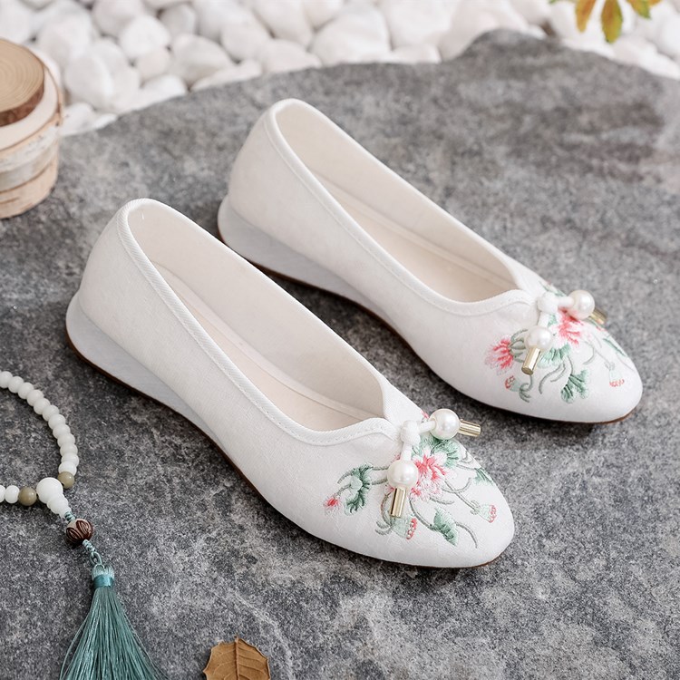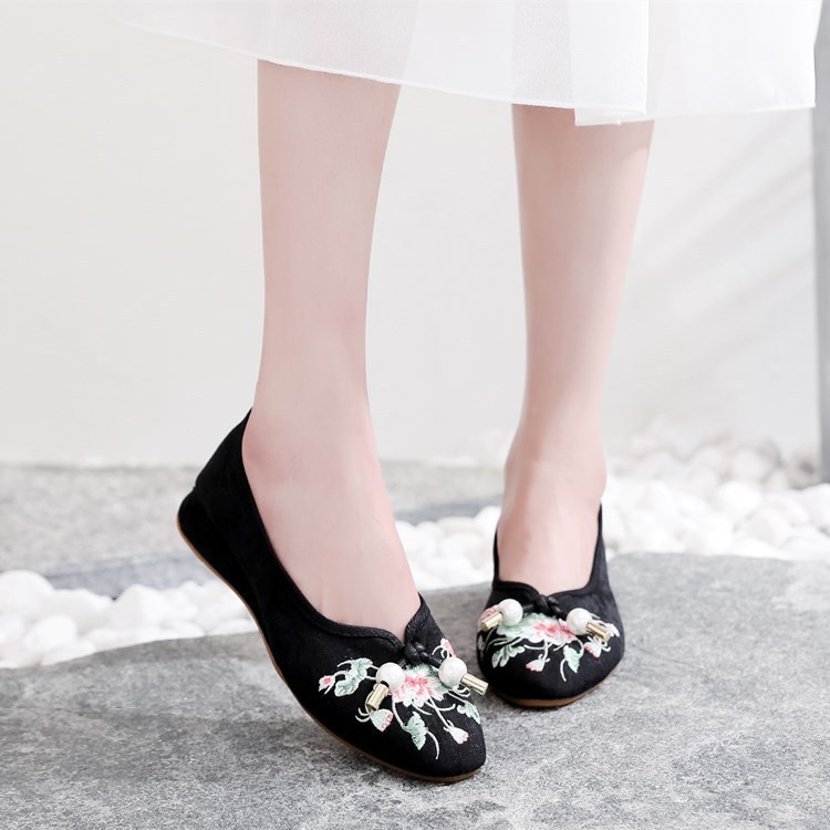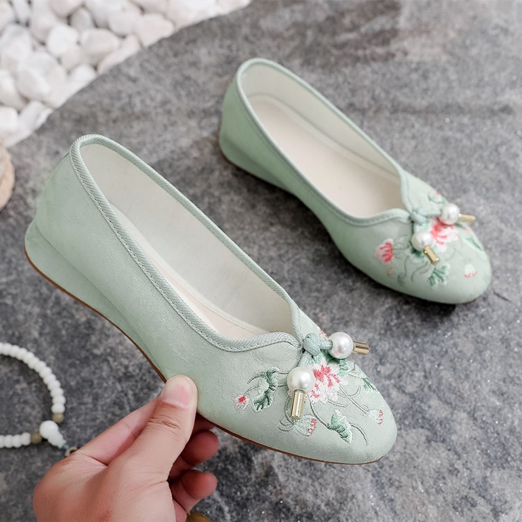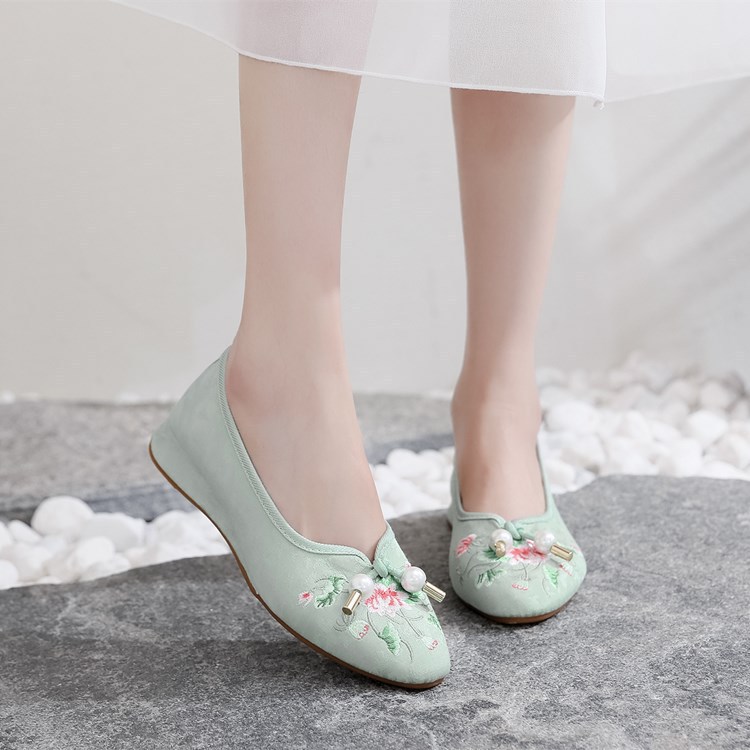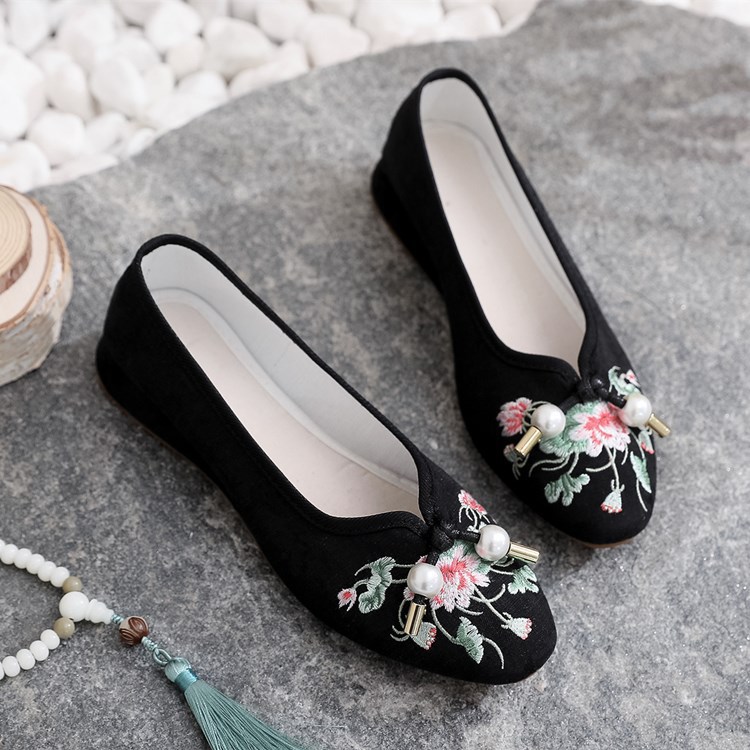 Huailian 2022 Новая Этническая обувь с вышивкой, женские одиночные туфли-Ципао в китайском стиле, винтажные Квадратные танцевальные туфли с острым носком на плоской подошве