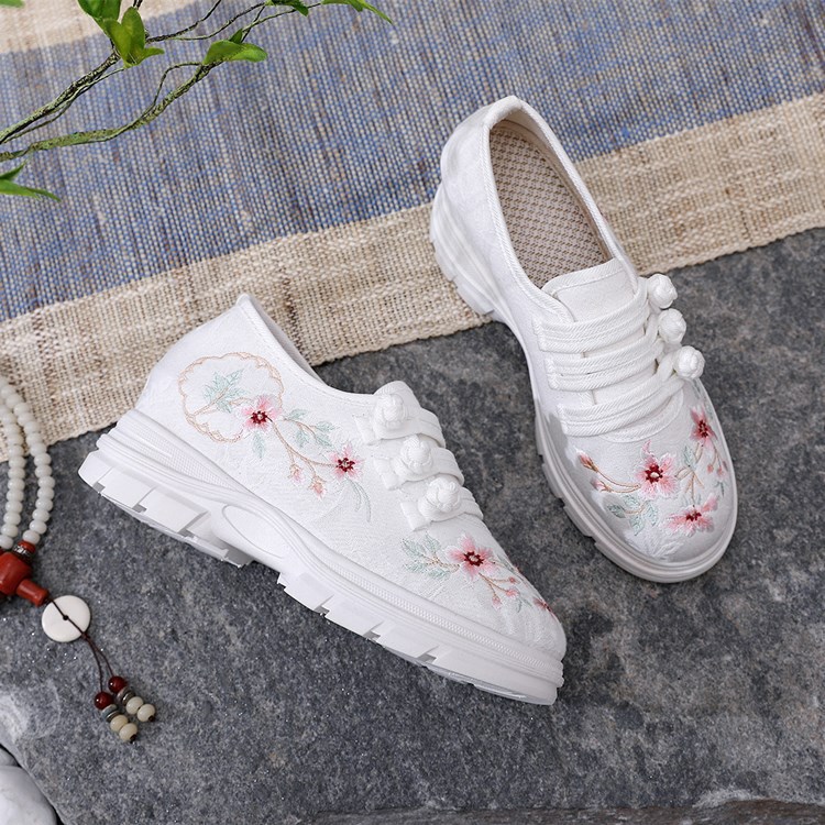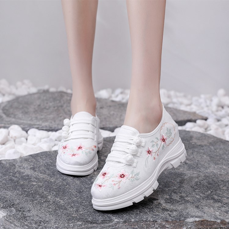 Jinrong 2022 Осенняя обувь с этнической вышивкой, увеличивающая рост Женская Однослойная обувь, легкая Повседневная художественная обувь Чонсам в стиле ретро
