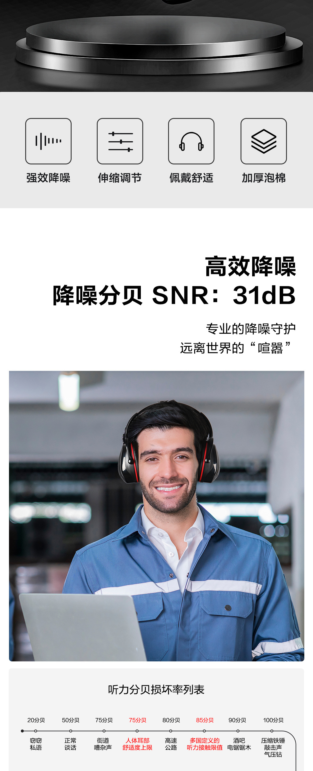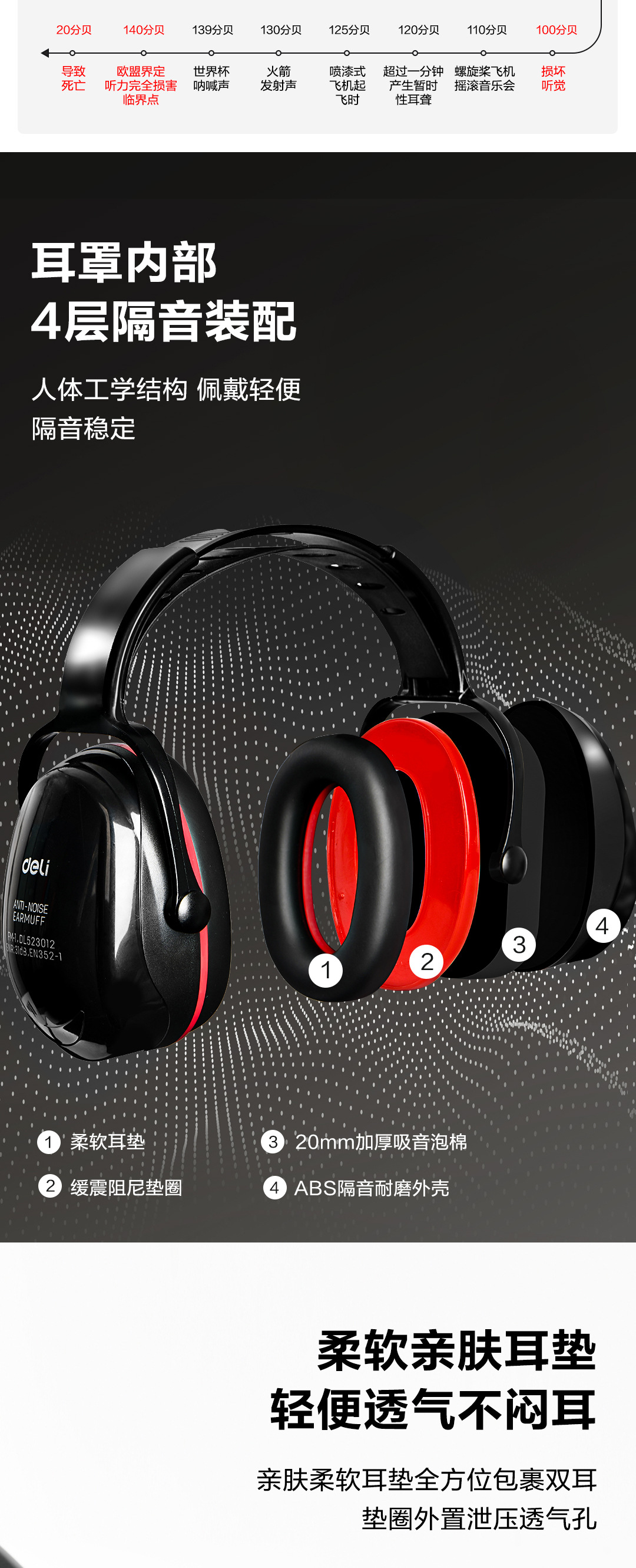 Deli Tool DL523011 противошумные наушники 31 дБ звукоизоляционные наушники профессиональные противошумные наушники для сна