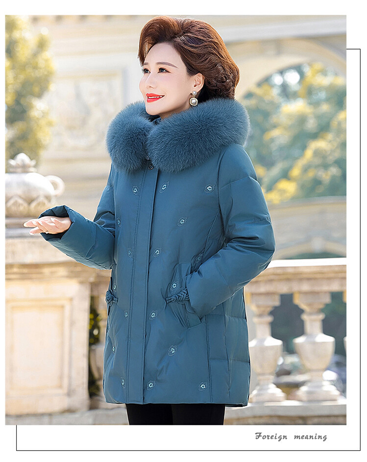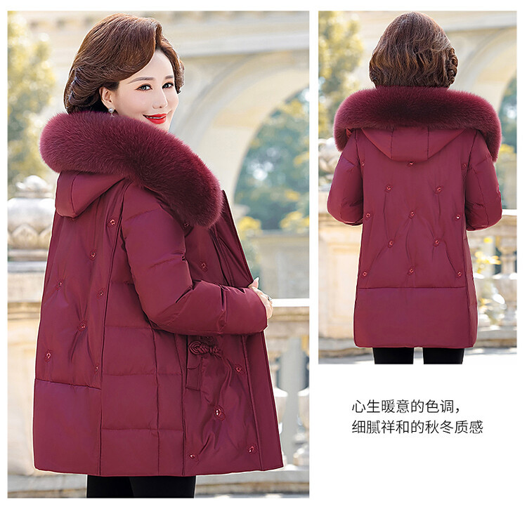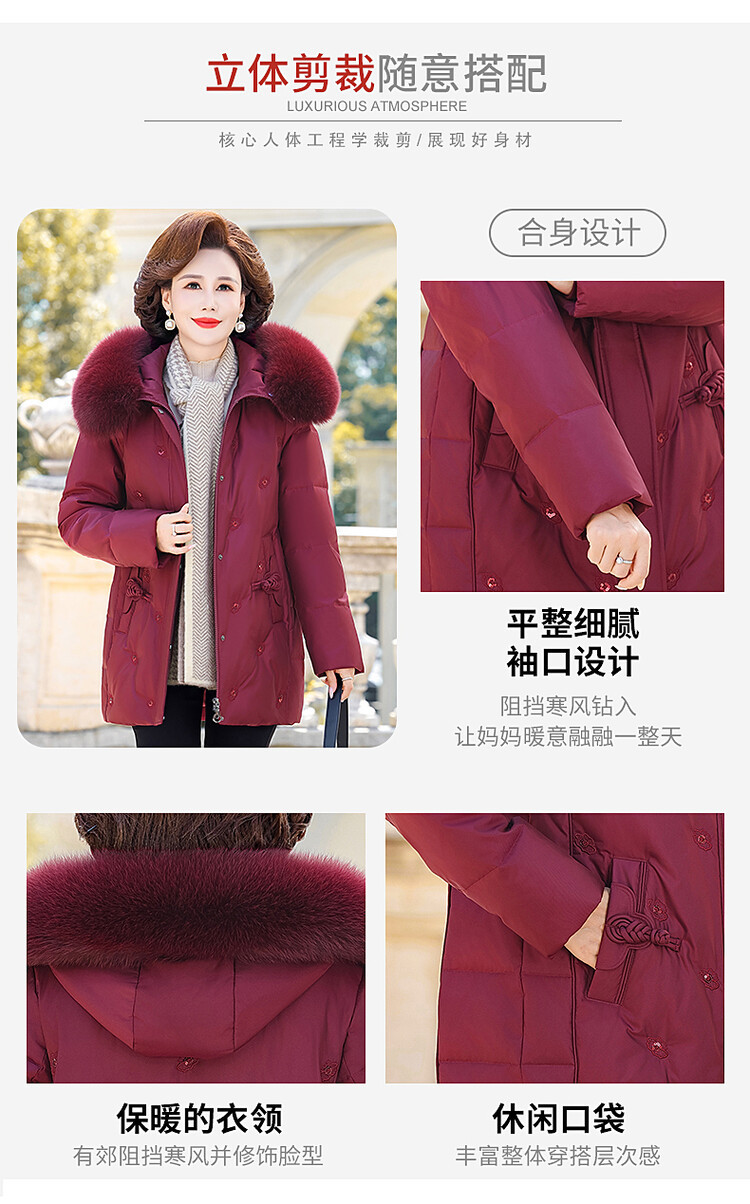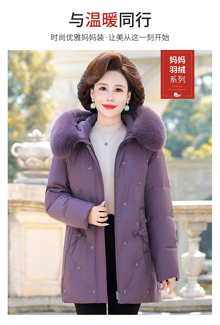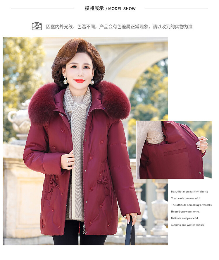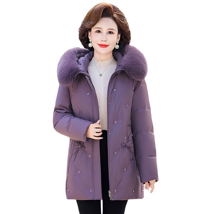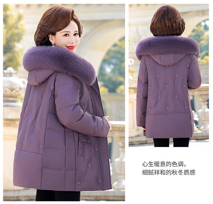 Новый пуховик для бабушки для пожилых женщин, зимнее пальто средней и длинной длины, белый пуховик на утином пуху с капюшоном и шерстяным воротником для матери