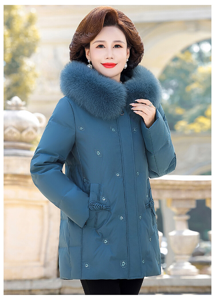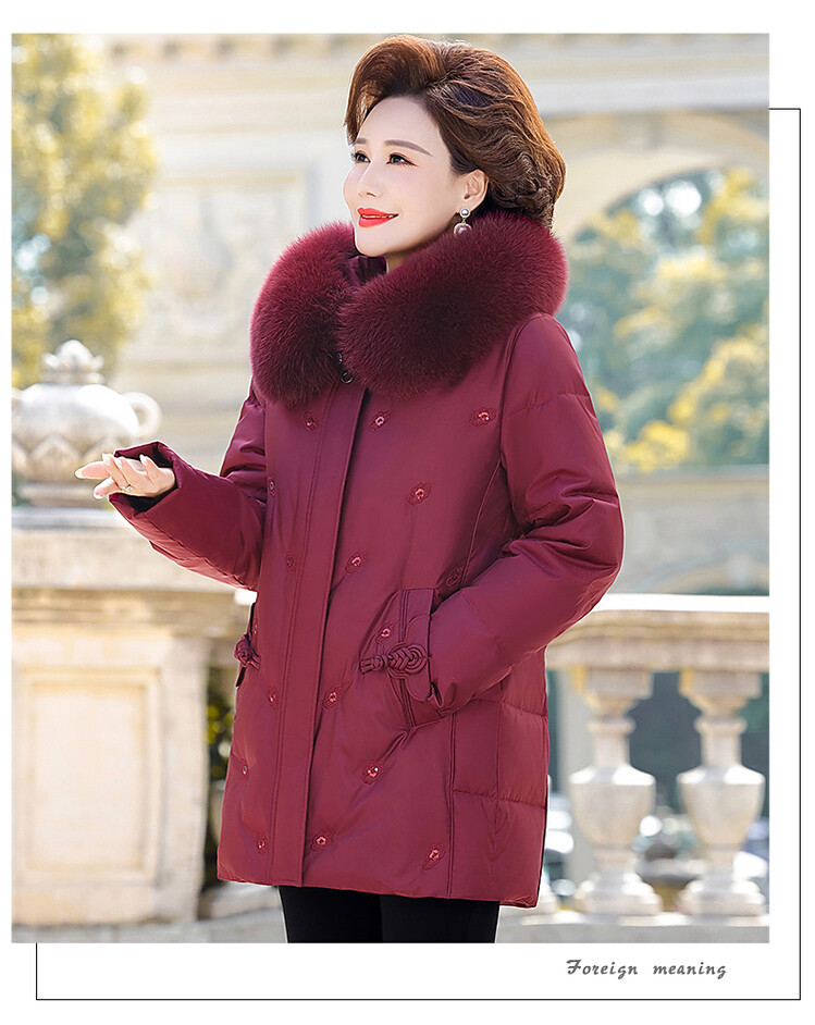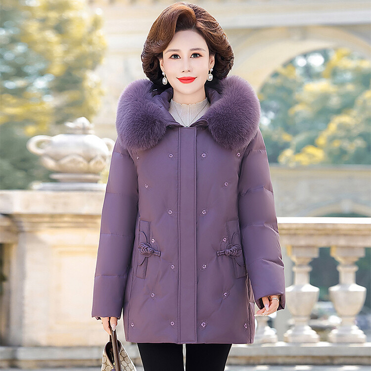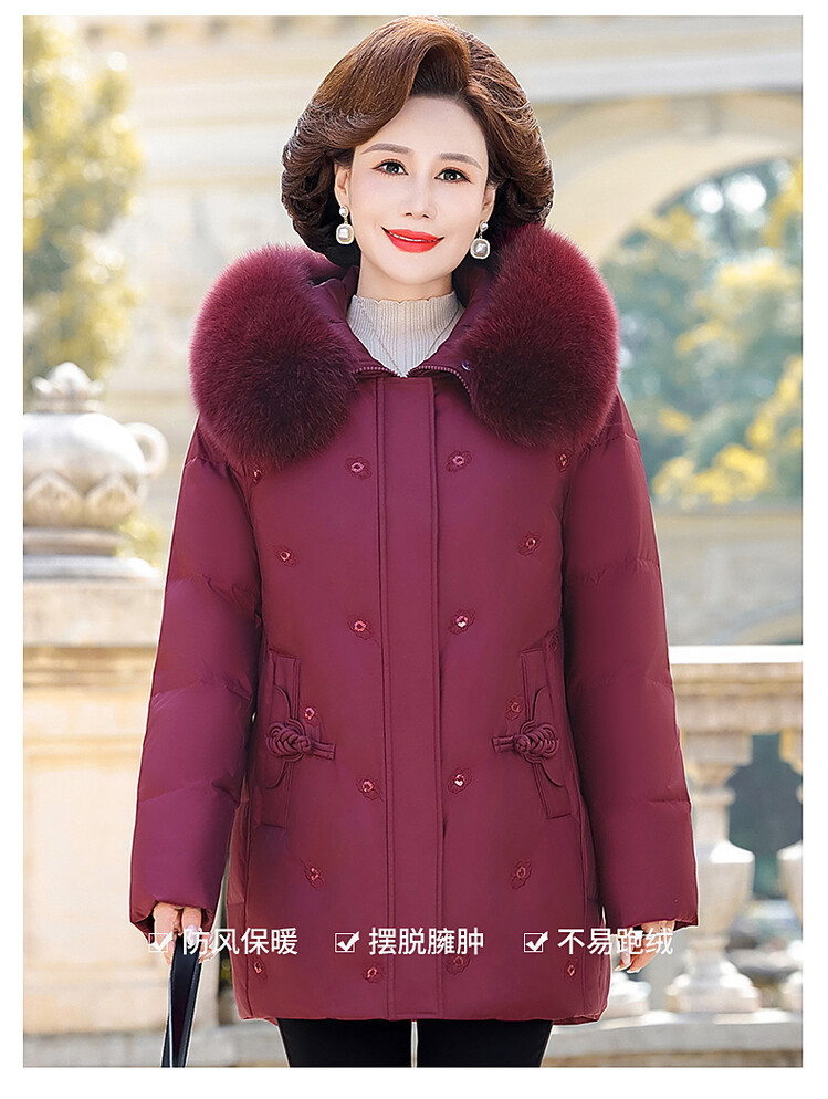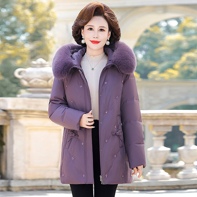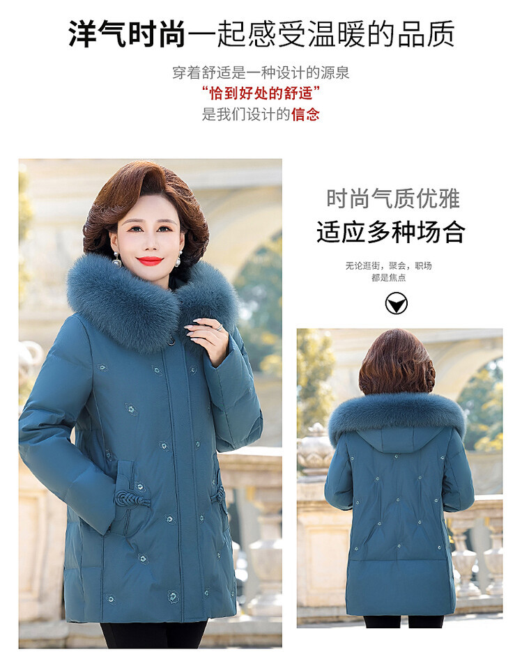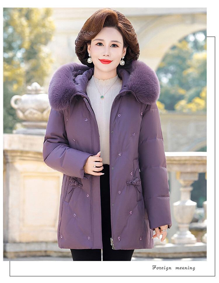 Новый пуховик для бабушки для пожилых женщин, зимнее пальто средней и длинной длины, белый пуховик на утином пуху с капюшоном и шерстяным воротником для матери