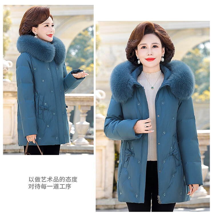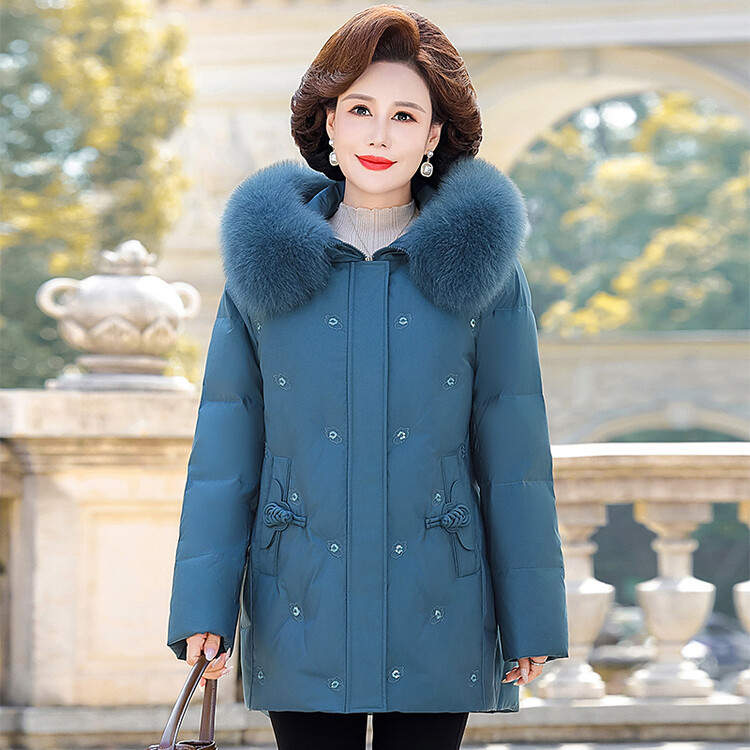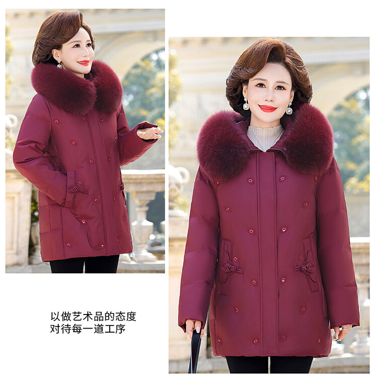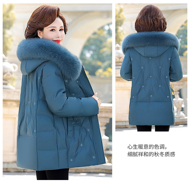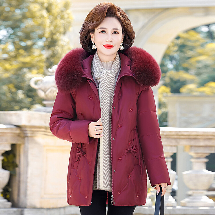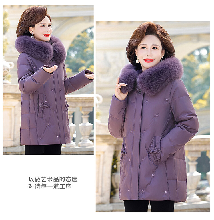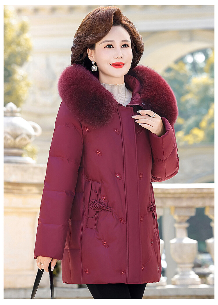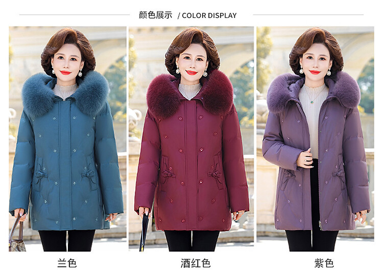 Новый пуховик для бабушки для пожилых женщин, зимнее пальто средней и длинной длины, белый пуховик на утином пуху с капюшоном и шерстяным воротником для матери