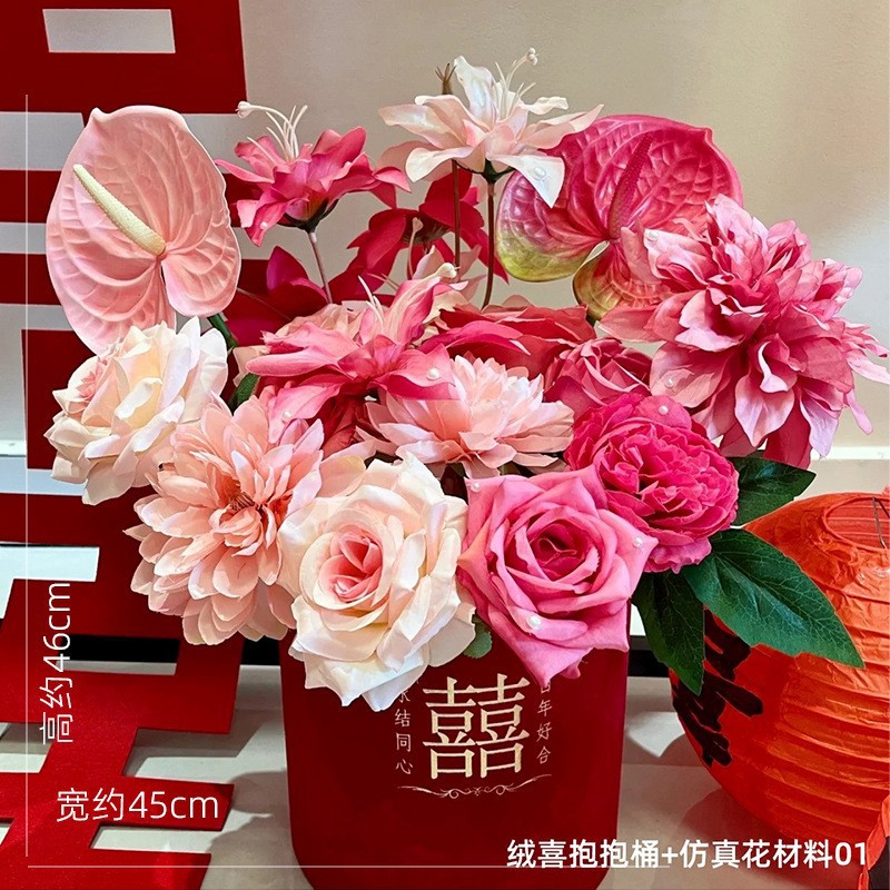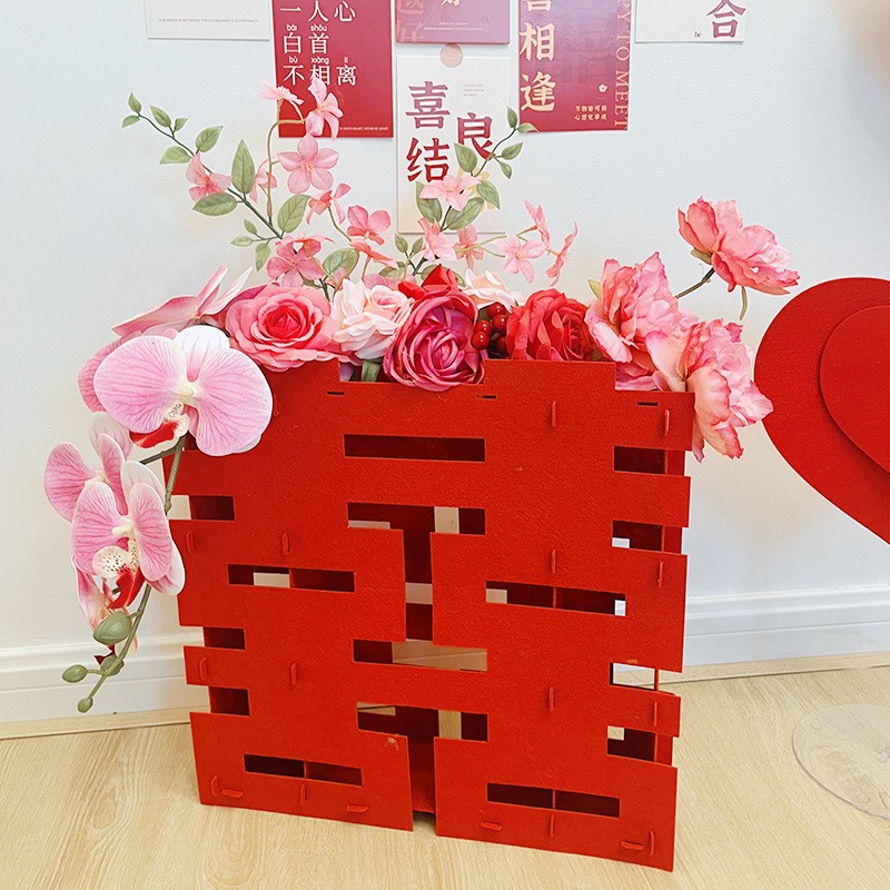 Свадебные украшения из искусственных цветов Свадебные трехмерные Xi символы спальня гостиная украшения свадебной комнаты свадебные принадлежности