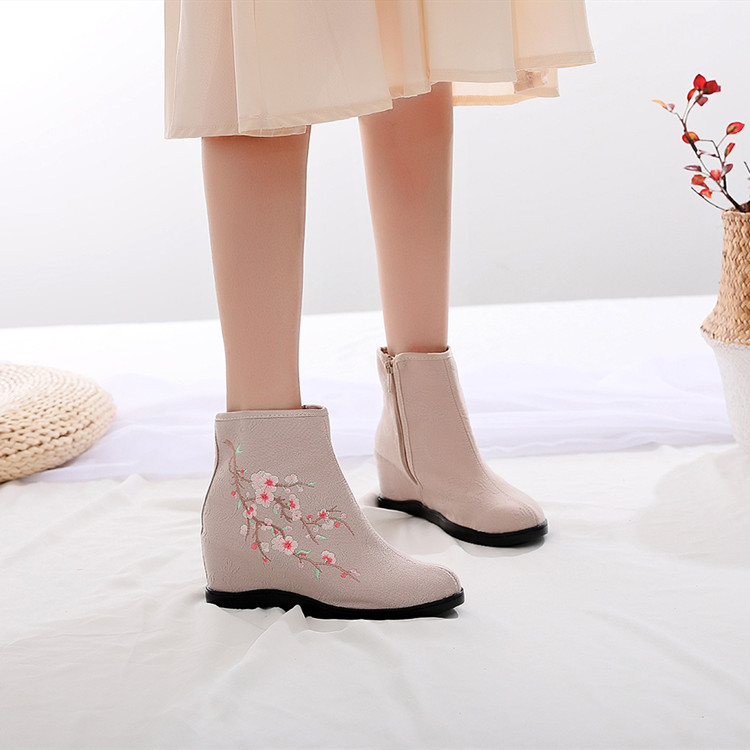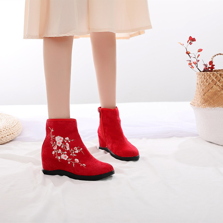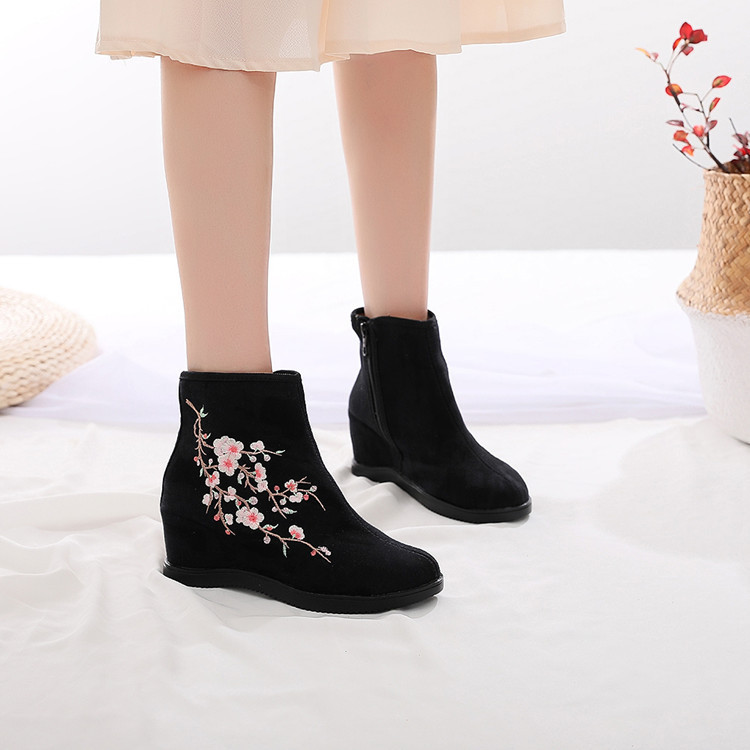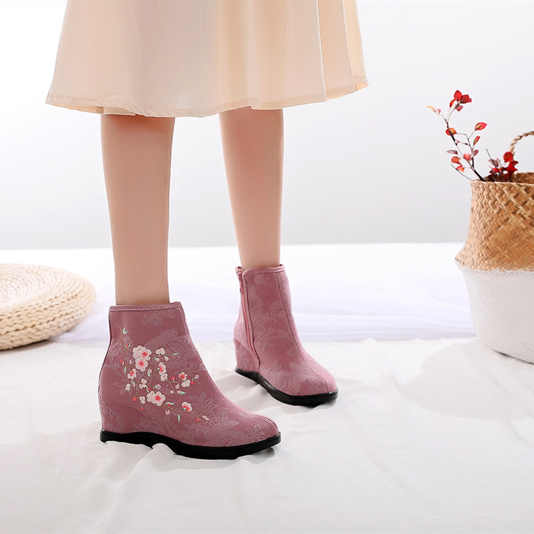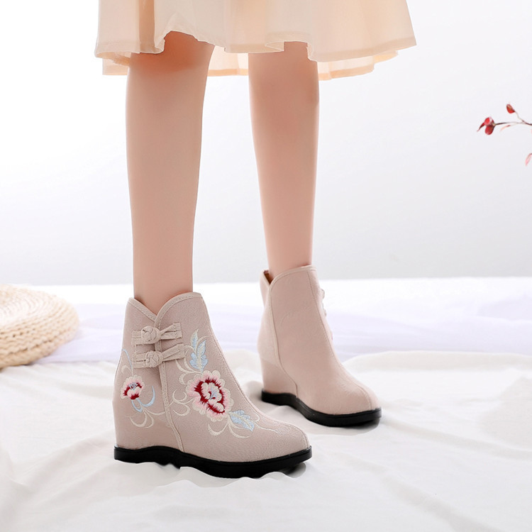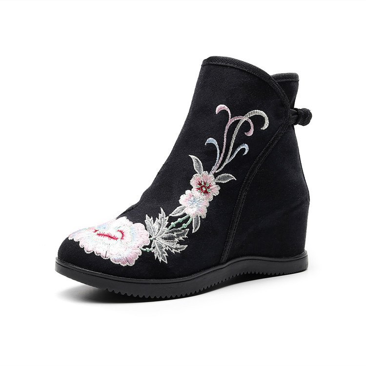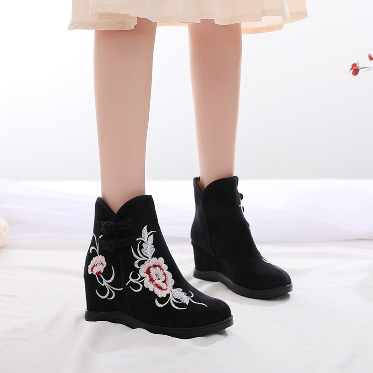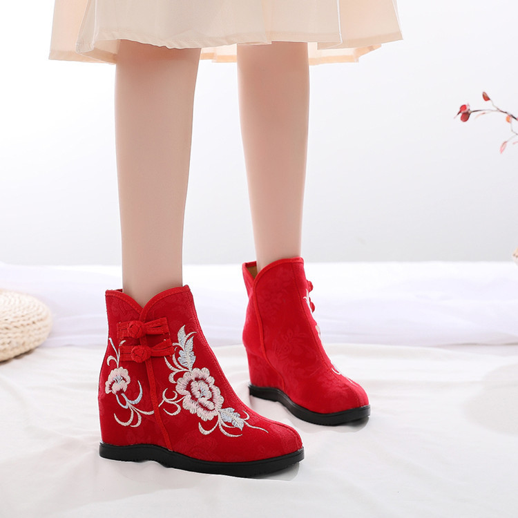 Осенне-зимняя новая обувь с этнической вышивкой, женские сапоги с увеличенной вышивкой, 6 см, старинная Китайская одежда, сапоги для квадратных танцев
