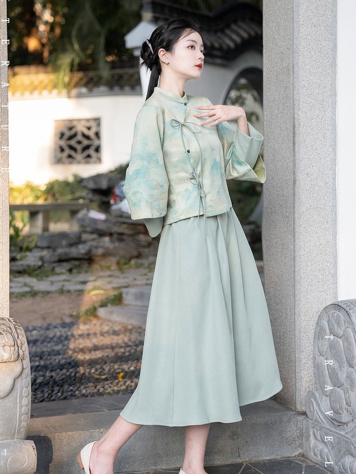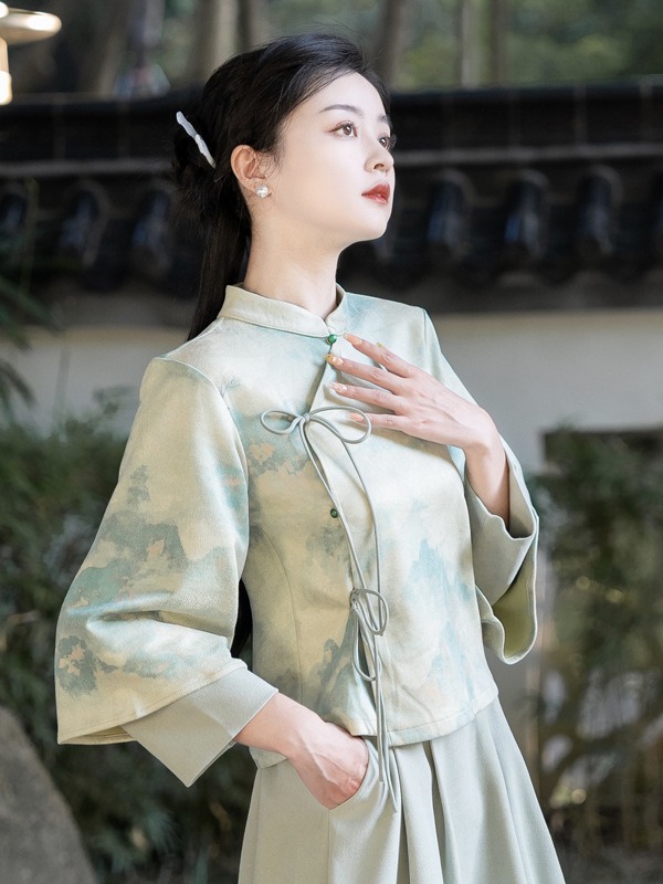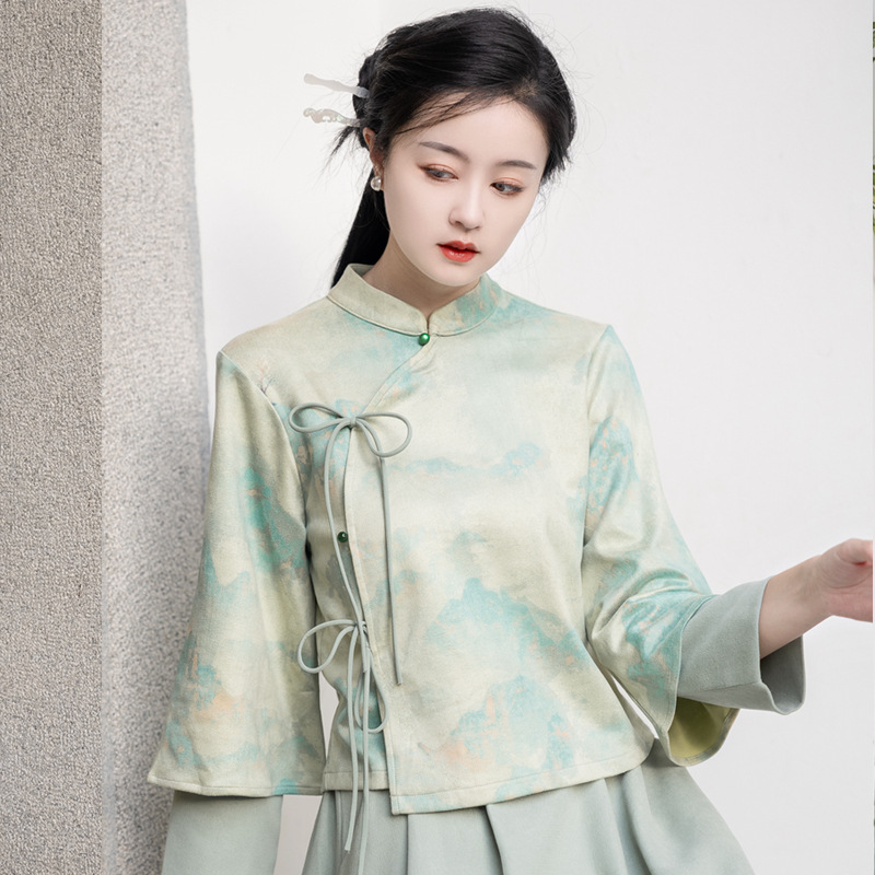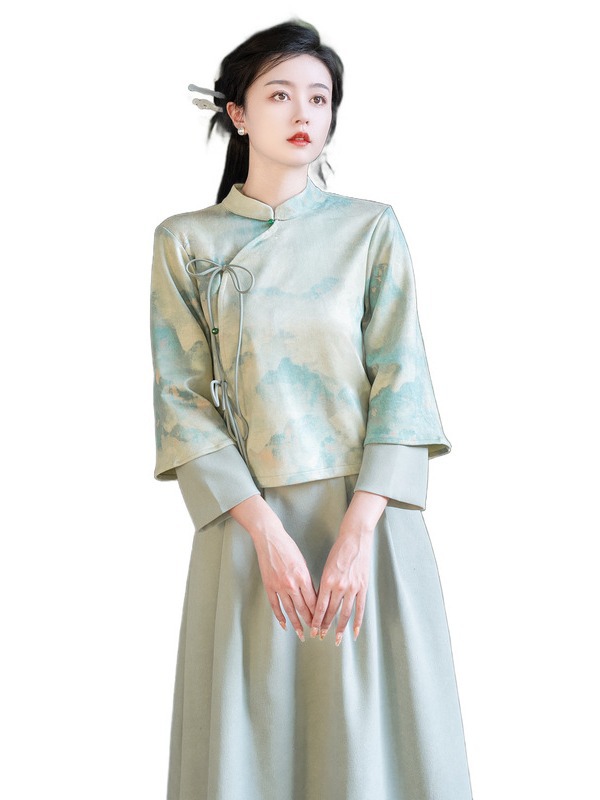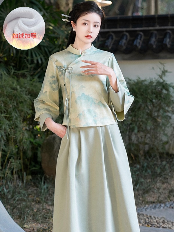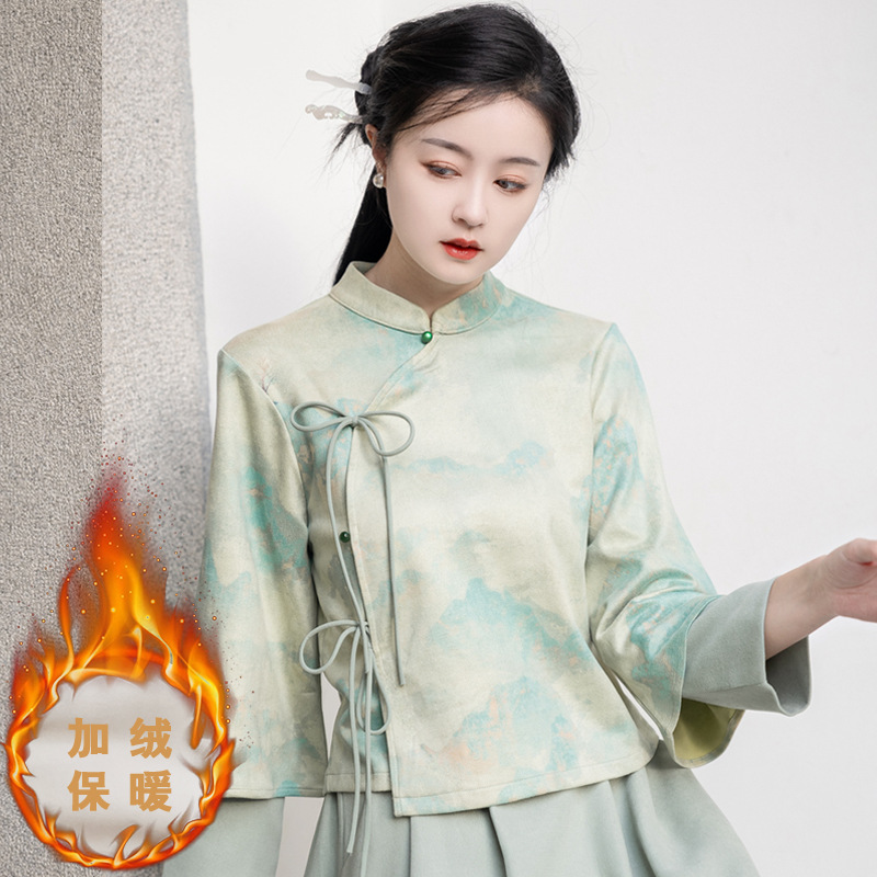 Новый осенне-зимний комплект в китайском ретро-стиле: утолщенный и утепленный костюм в стиле тан с улучшенным дизайном, для чайной церемонии (женский)