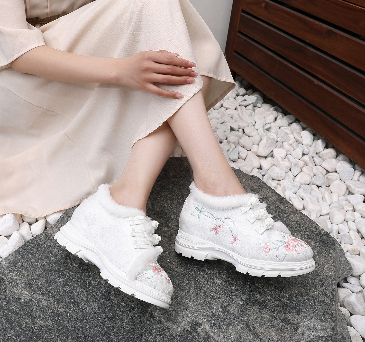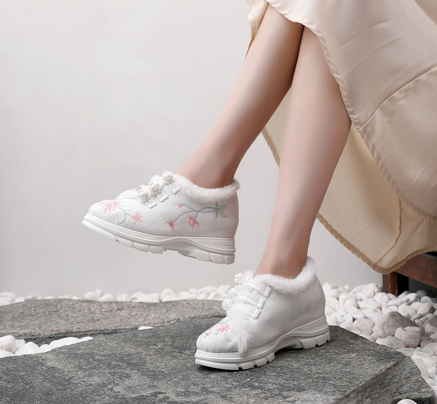 (Prosperity) 2023 Новая обувь с этнической вышивкой, антикварная Ханьская одежда, женская обувь, внутренняя высота, танцевальная обувь, женская хлопковая обувь