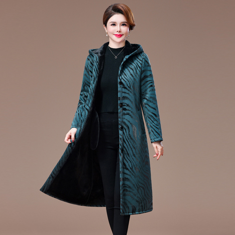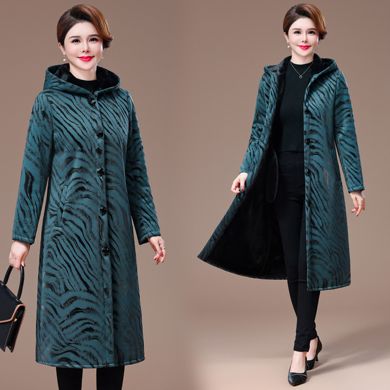 2023 Зимнее пальто с капюшоном, новая модная одежда на флисовой подкладке, осенняя Женская длинная хлопковая одежда среднего и пожилого возраста на флисовой подкладке
