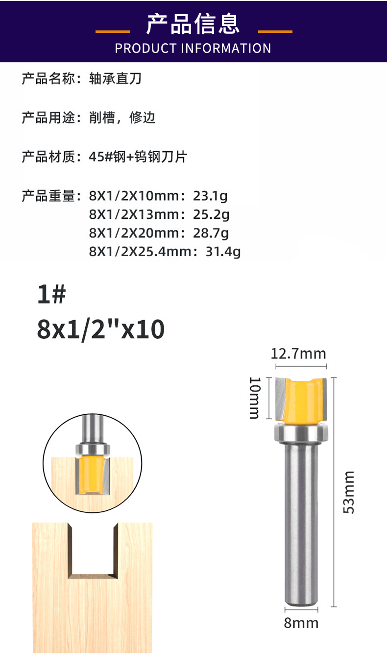 Подшипник прямой нож 8 ручки диаметром 12,7 мм с подшипником ножи для краевого ремонта двойной край прямой нож столярная фреза