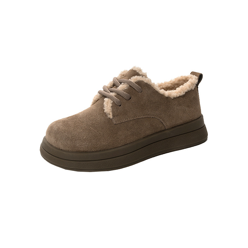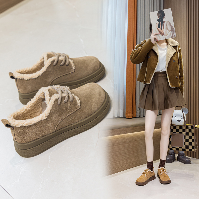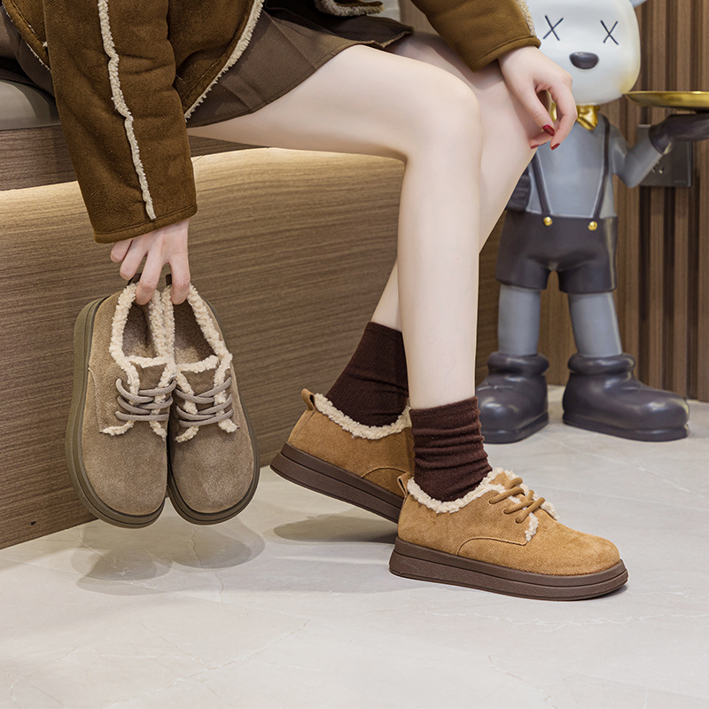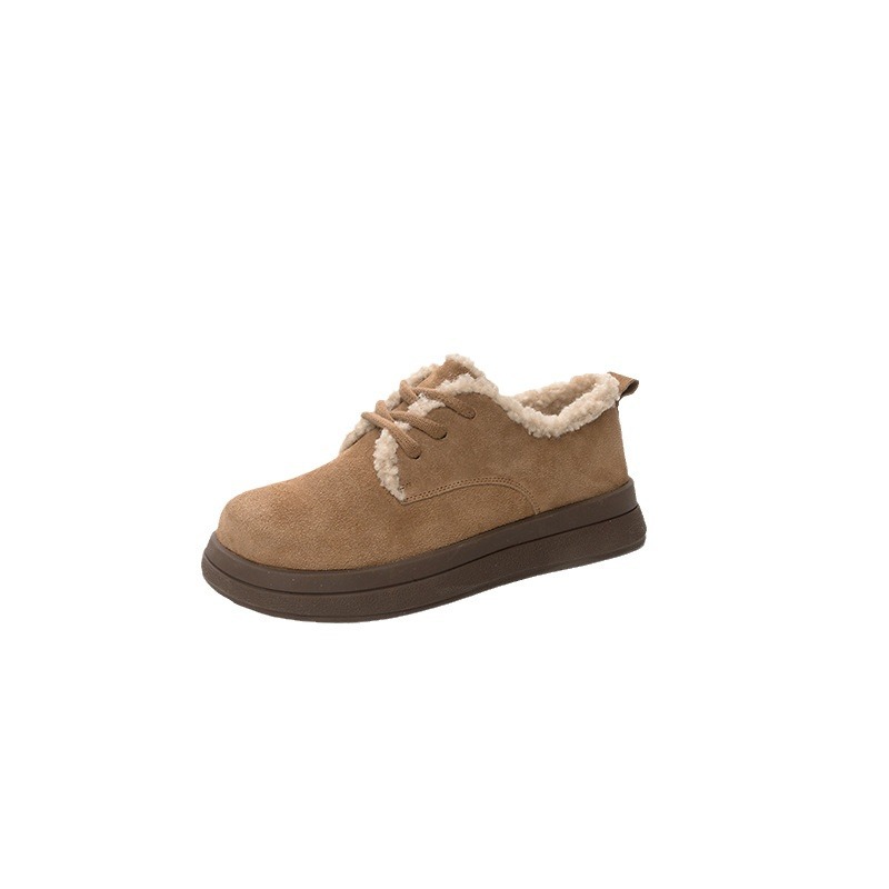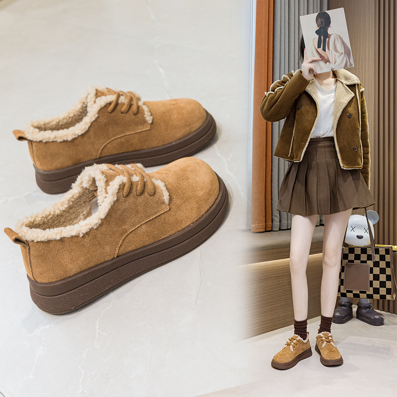 Женские лоферы из матовой кожи, новинка зимы 2023 года, на флисовой подкладке, утолщенные, в стиле Birkenstock, повседневные, универсальные, теплые хлопковые туфли.