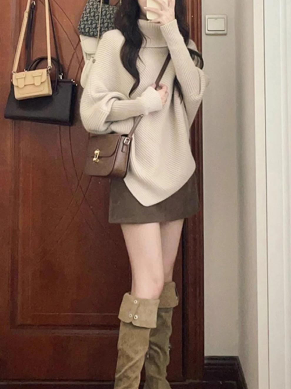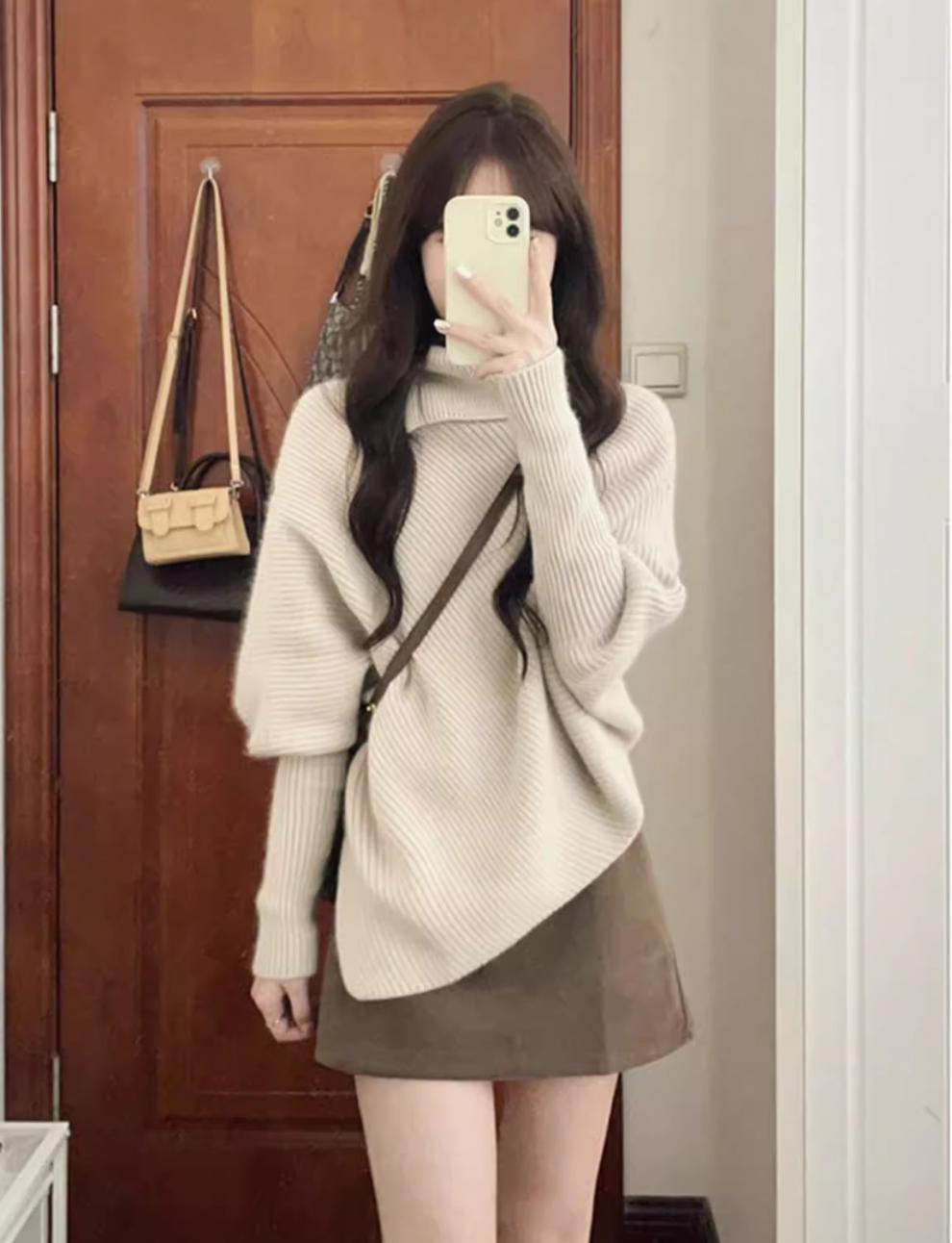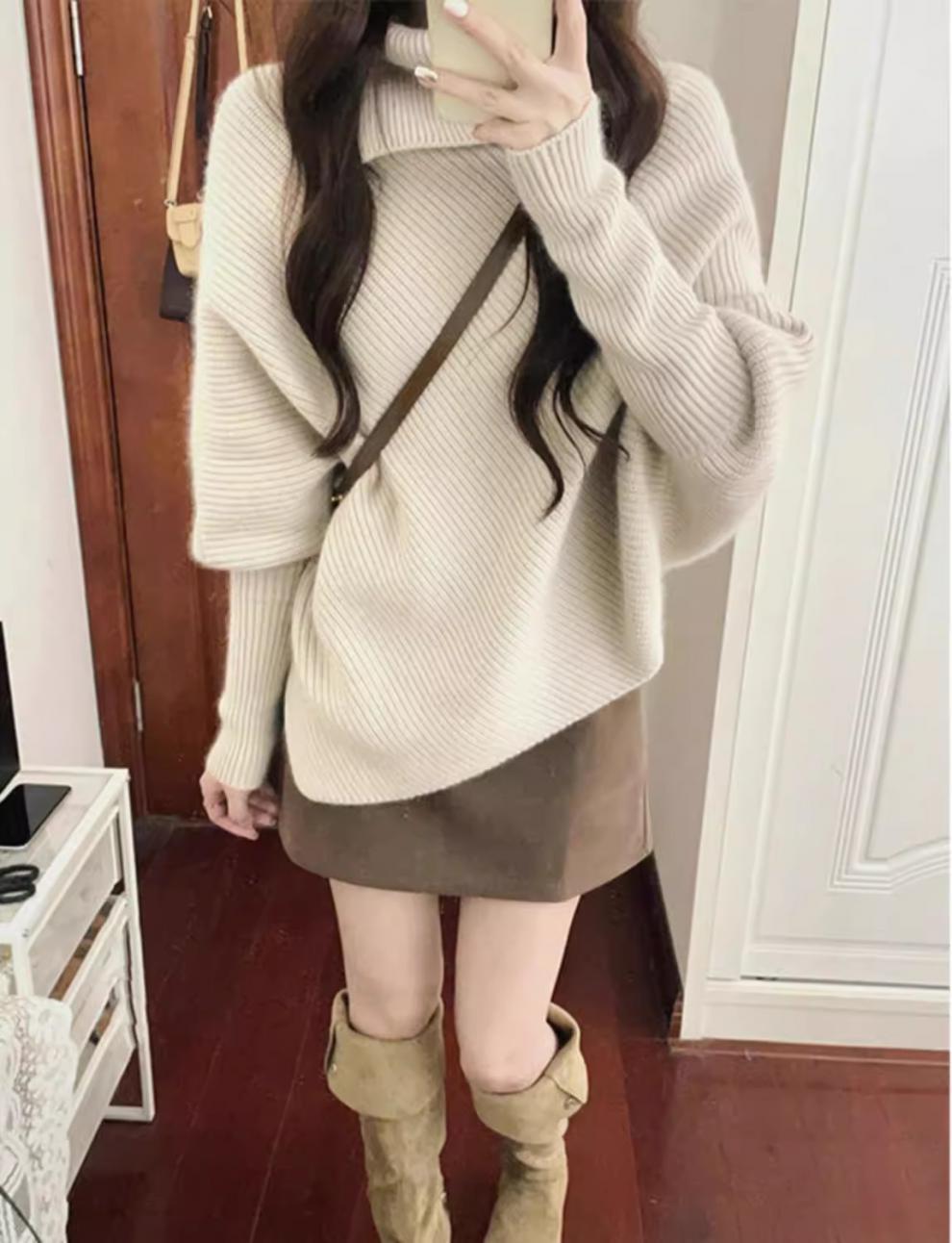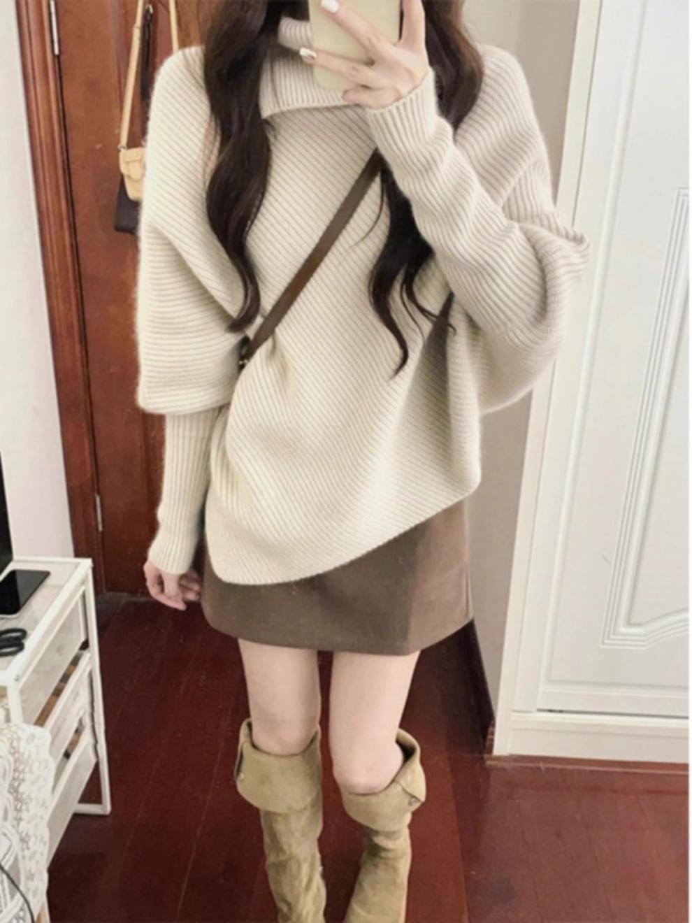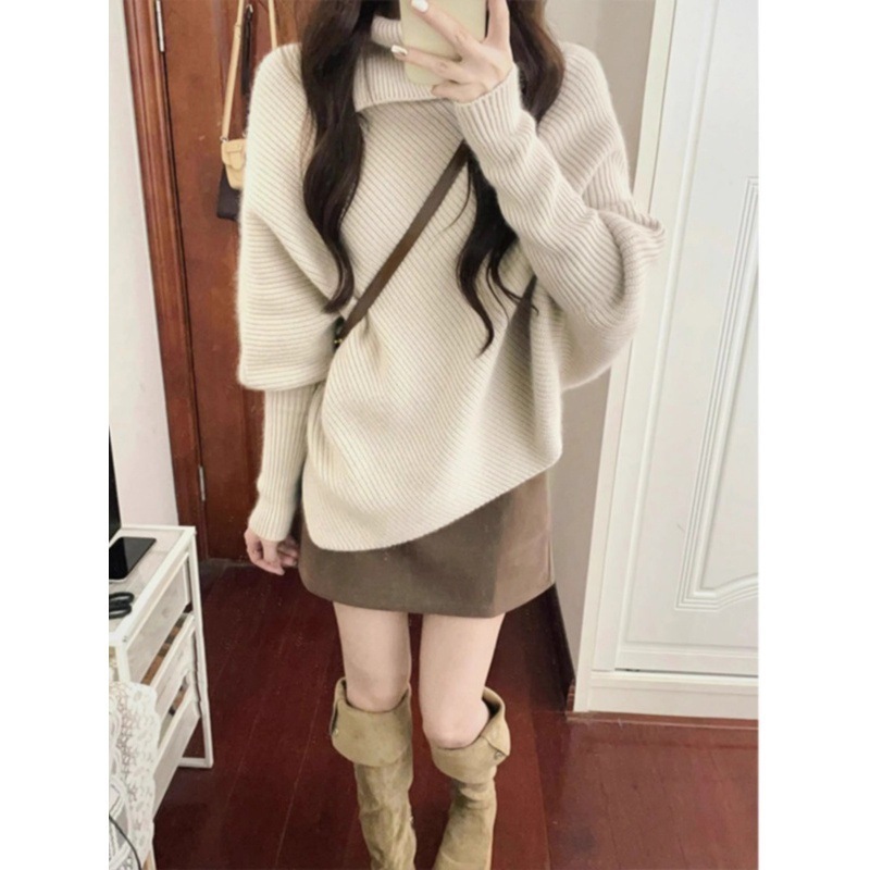 Kanning Lazy Style Нерегулярный водолазка-водолазка Женская осенне-зимняя одежда Свободная верхняя одежда Мягкий восковой свитер для женщин