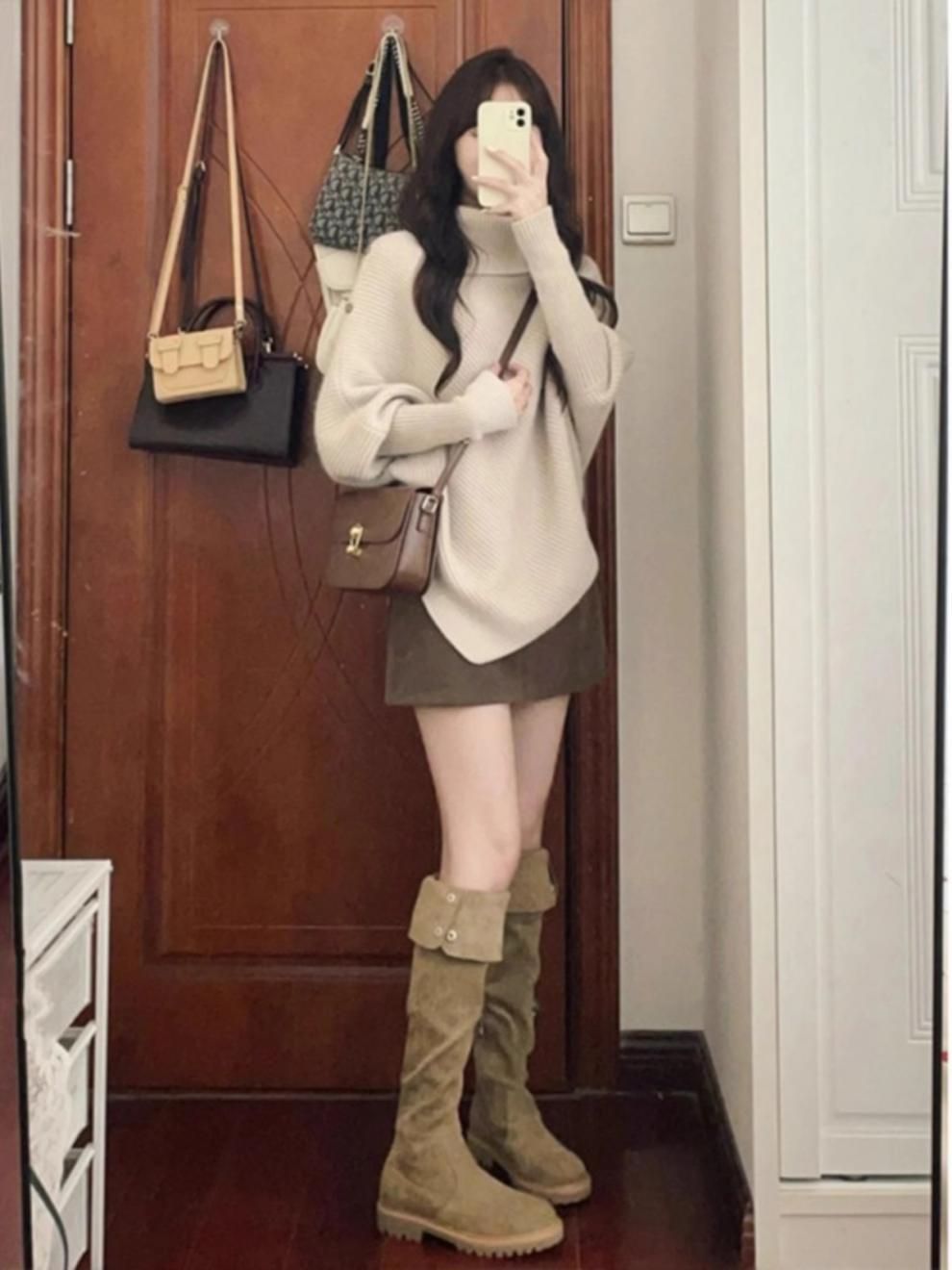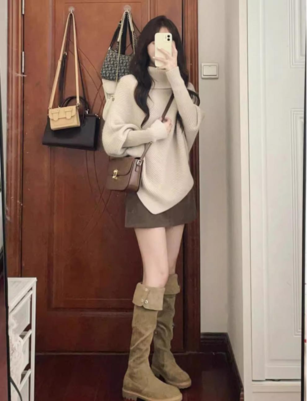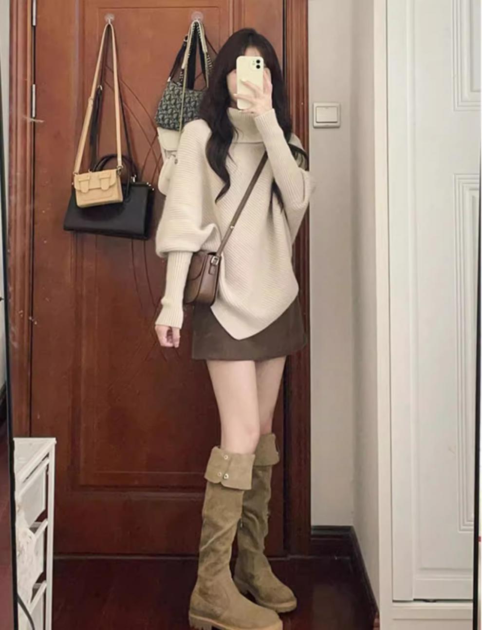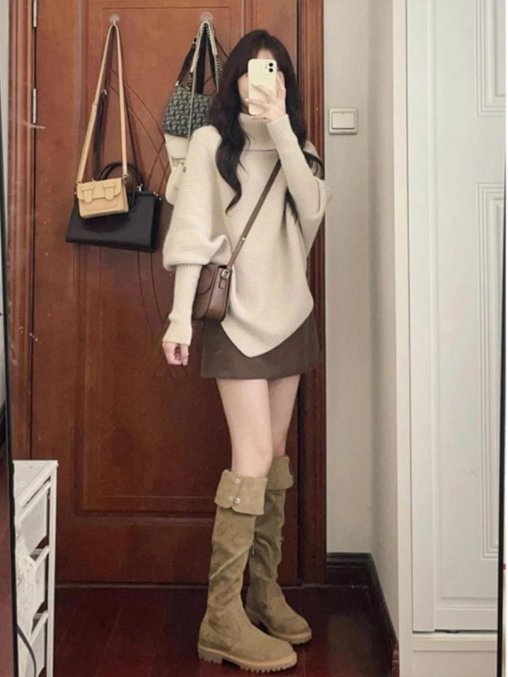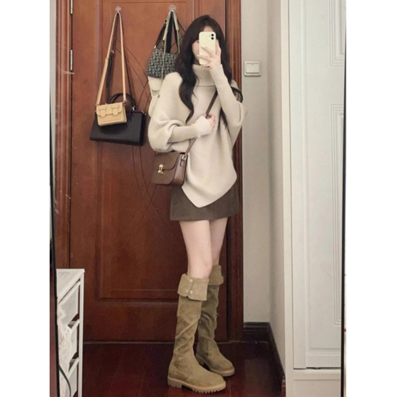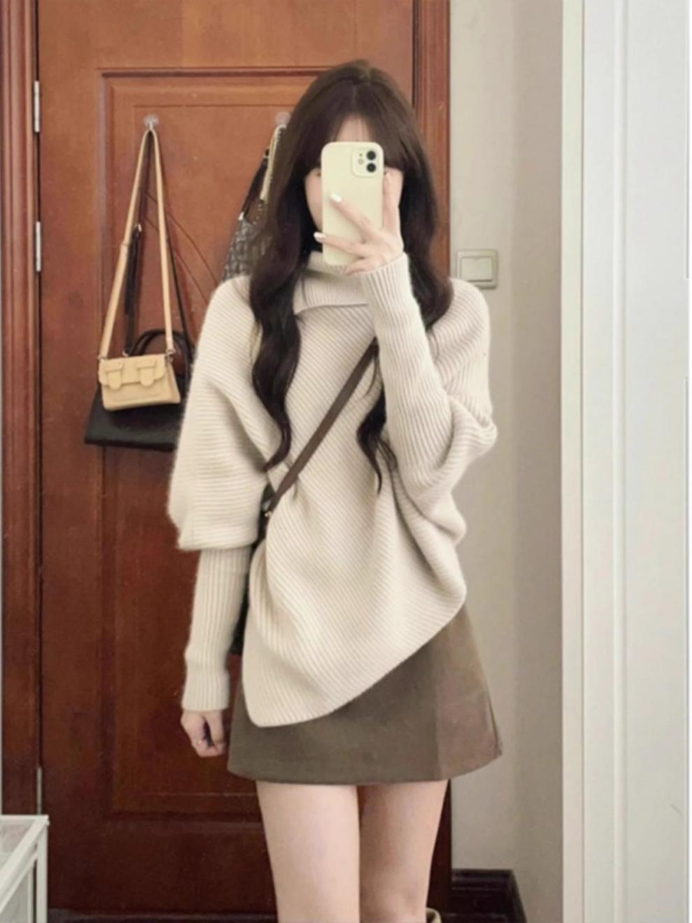 Kanning Lazy Style Нерегулярный водолазка-водолазка Женская осенне-зимняя одежда Свободная верхняя одежда Мягкий восковой свитер для женщин