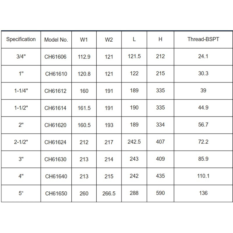 3/4 дюйма (CH61606); 1 дюйм (CH61610); 1-1/4» (КХ61612); 1-1/2» (КХ61614); 2 дюйма (CH61620); 2-1/2» (КХ61624); 3 дюйма (CH61630)