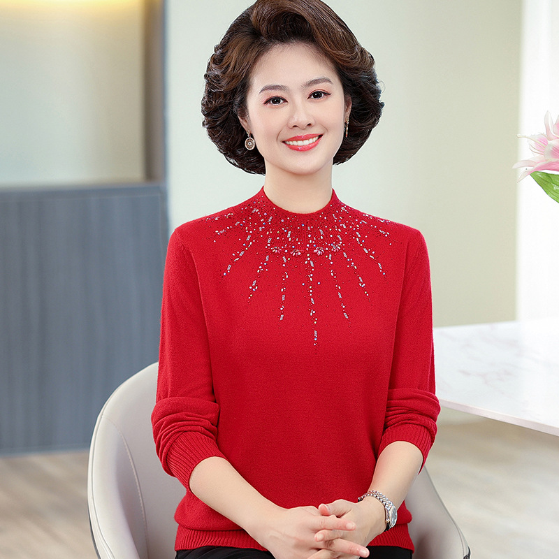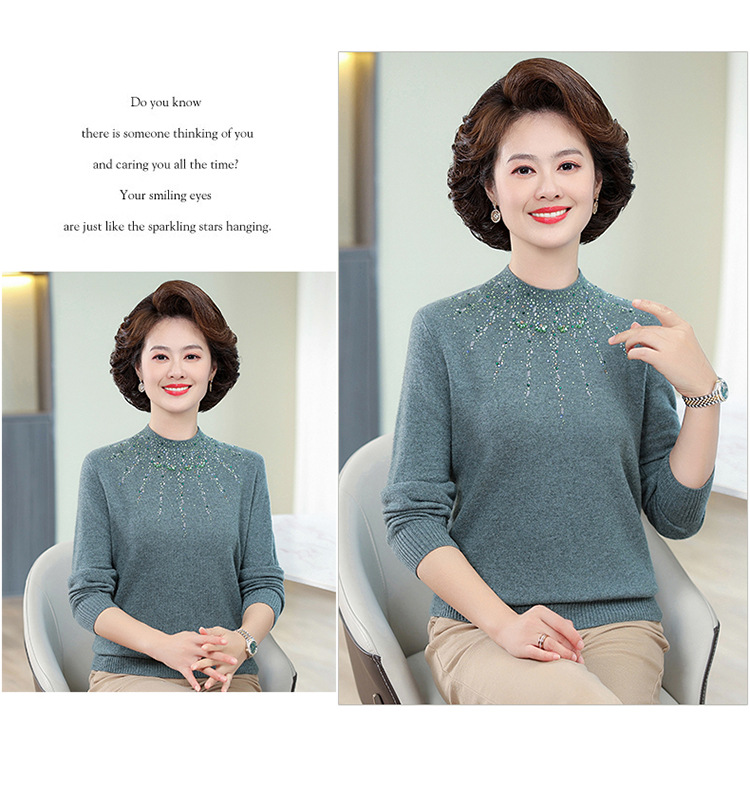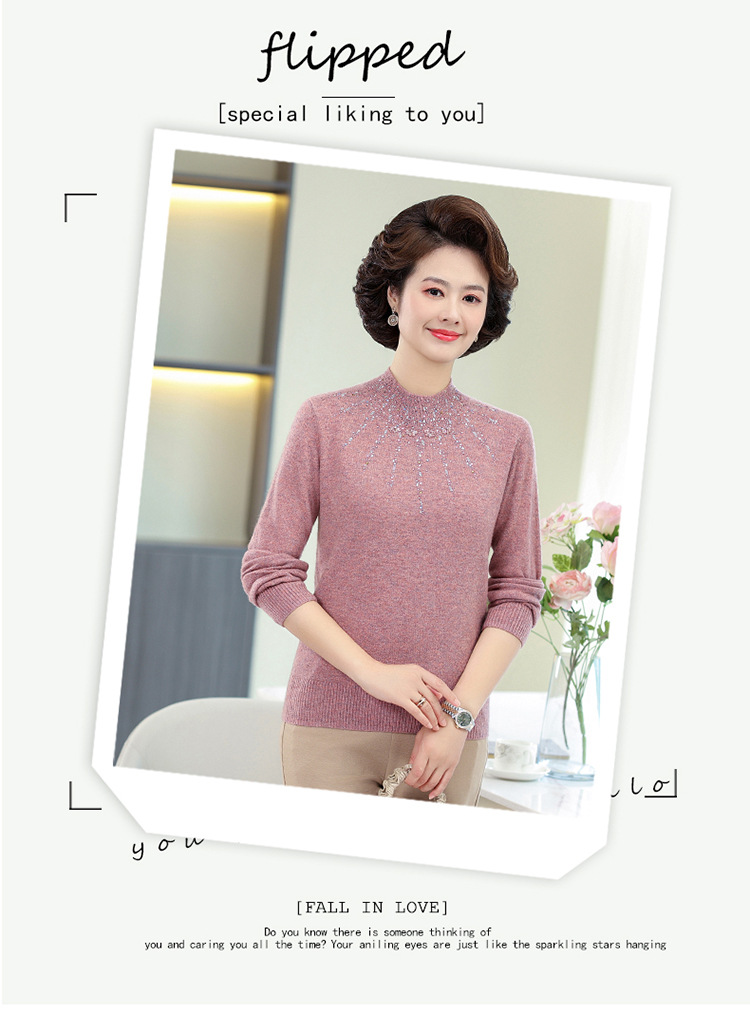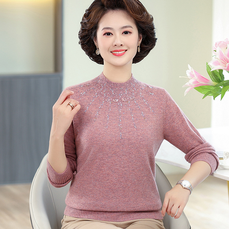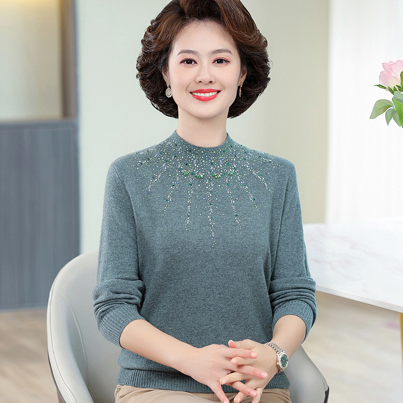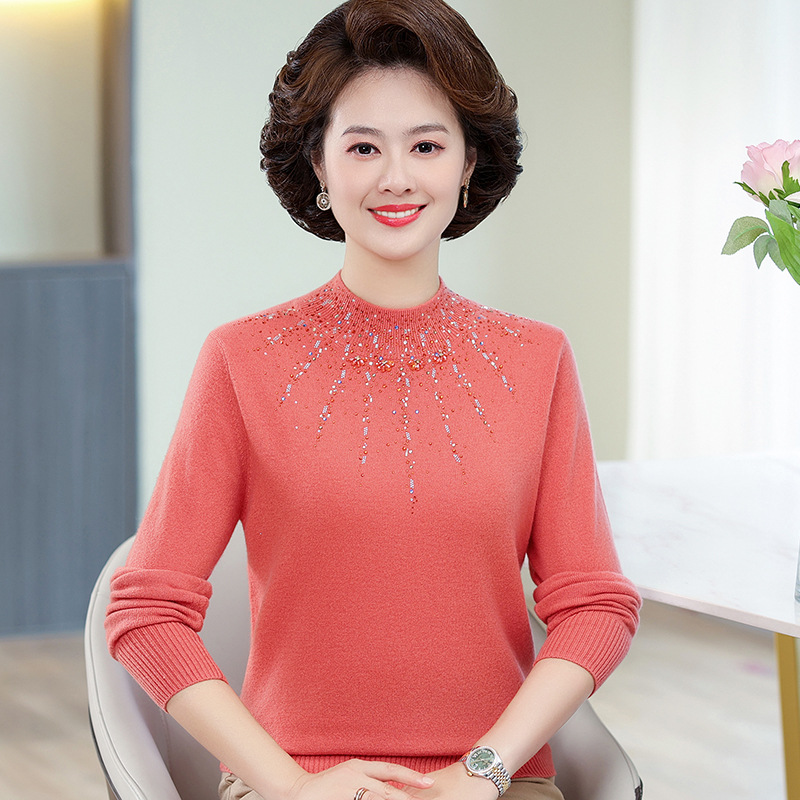 Свитер Mother 100 из чистой шерсти, женский свободный свитер в западном стиле для среднего и пожилого возраста, осенне-зимний свитер с высоким воротом, кашемировый свитер для бабушки