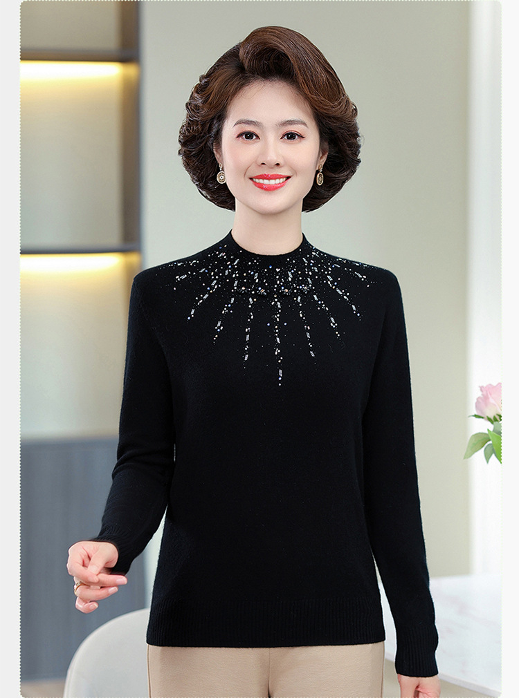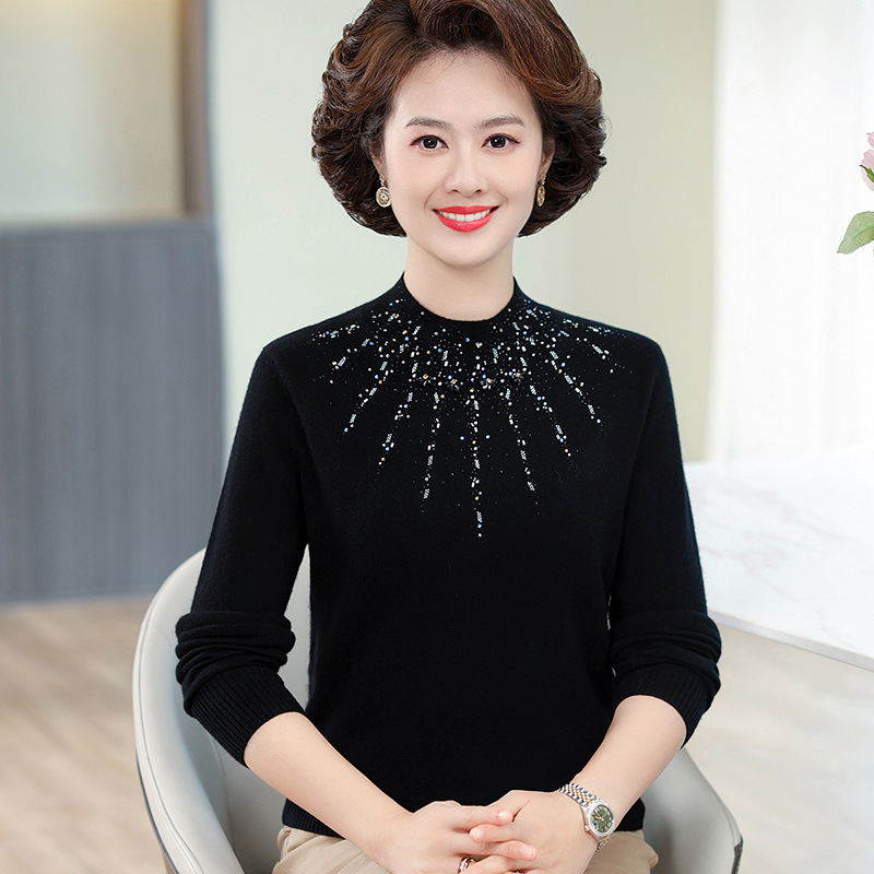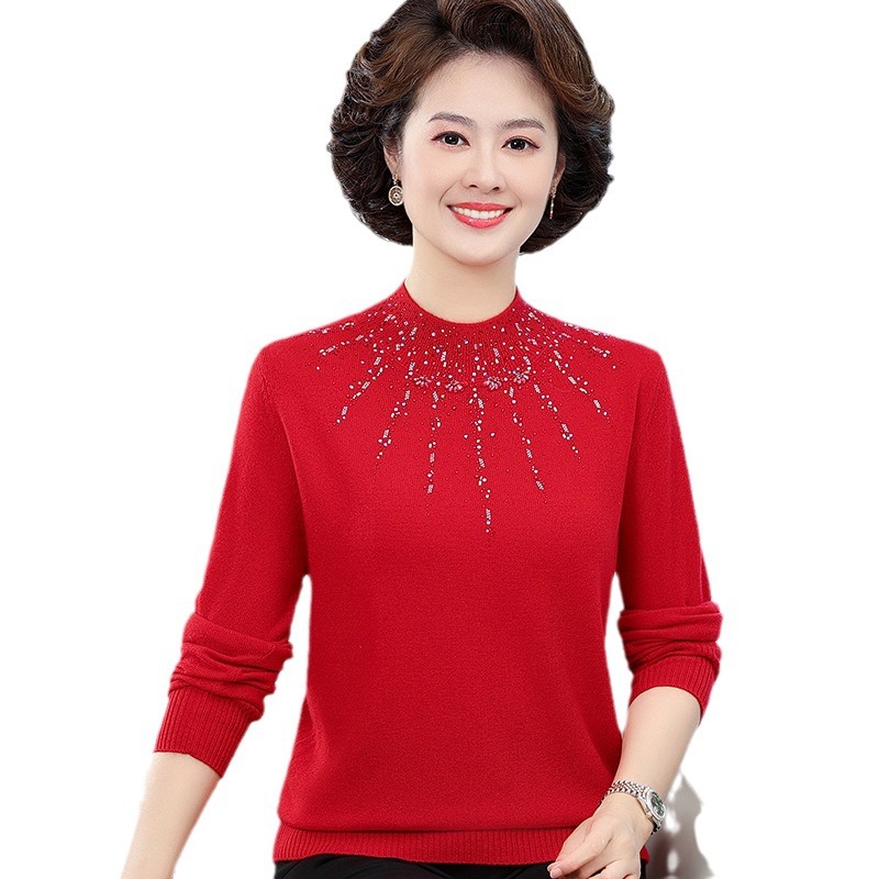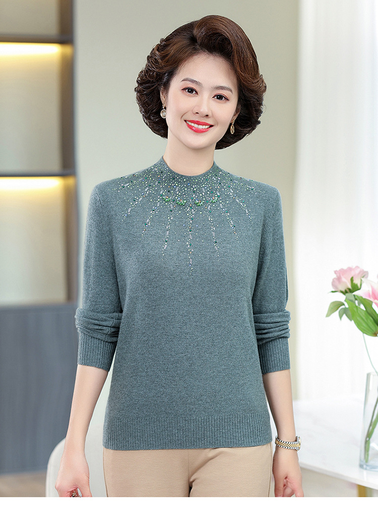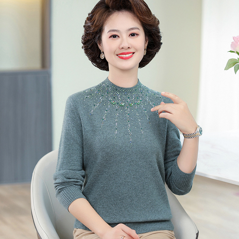 Свитер Mother 100 из чистой шерсти, женский свободный свитер в западном стиле для среднего и пожилого возраста, осенне-зимний свитер с высоким воротом, кашемировый свитер для бабушки