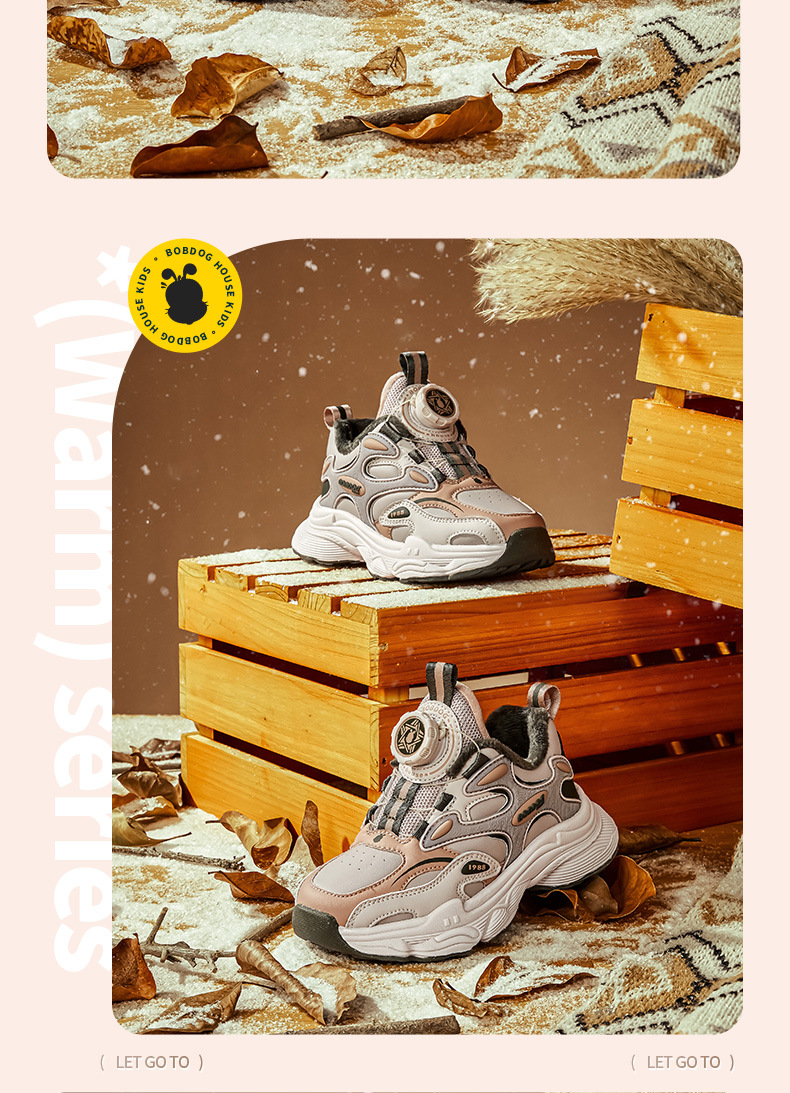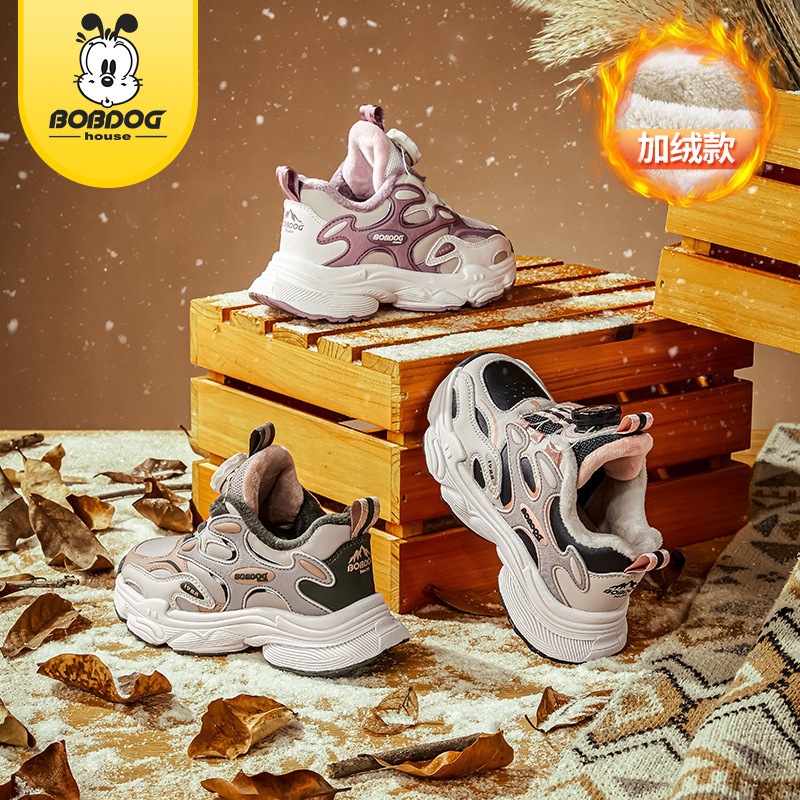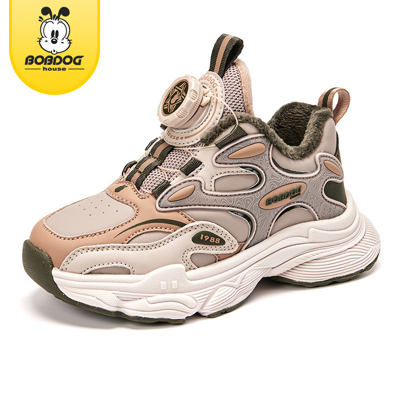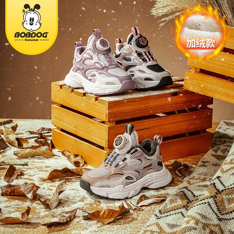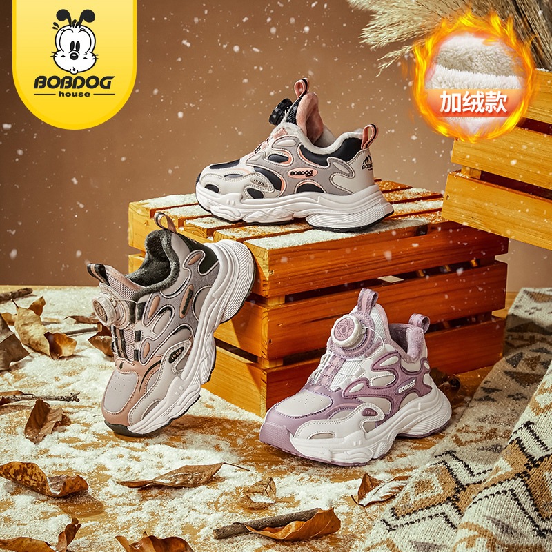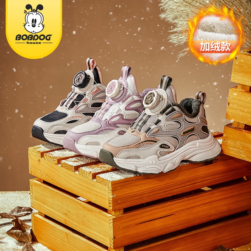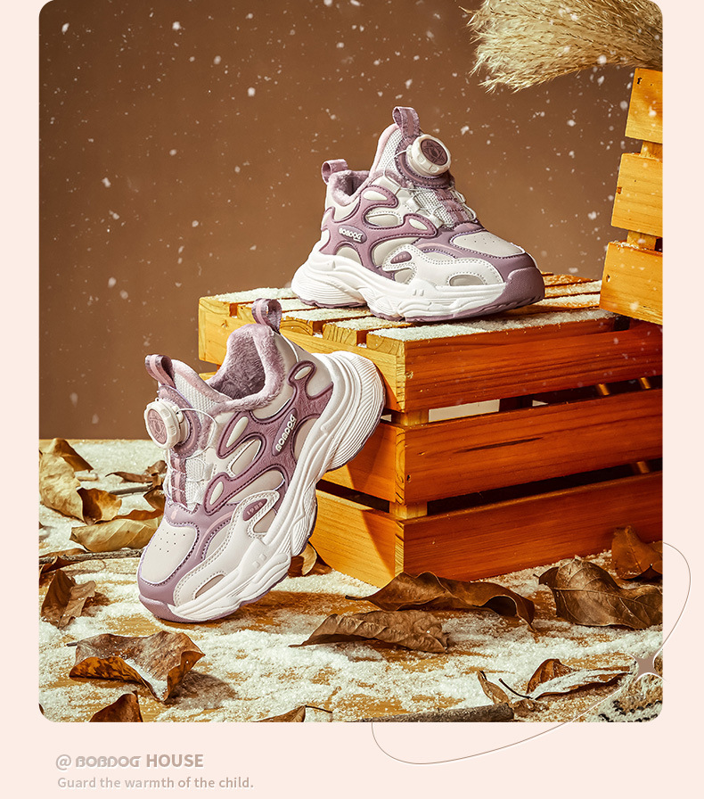 Babus 2023 зимние дети плюс бархат, две хлопчатобумажные туфли, вращающиеся пуговицы, теплые нескользящие и износостойкие повседневные кроссовки