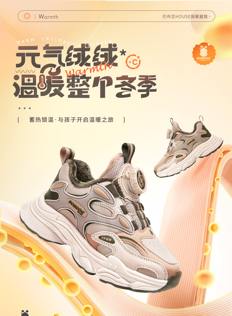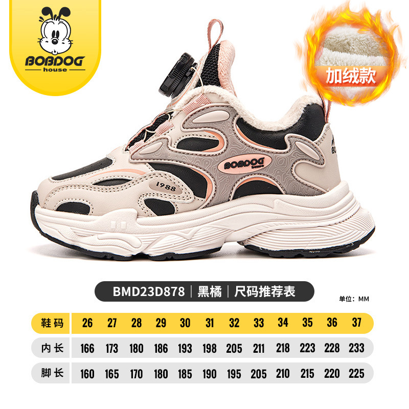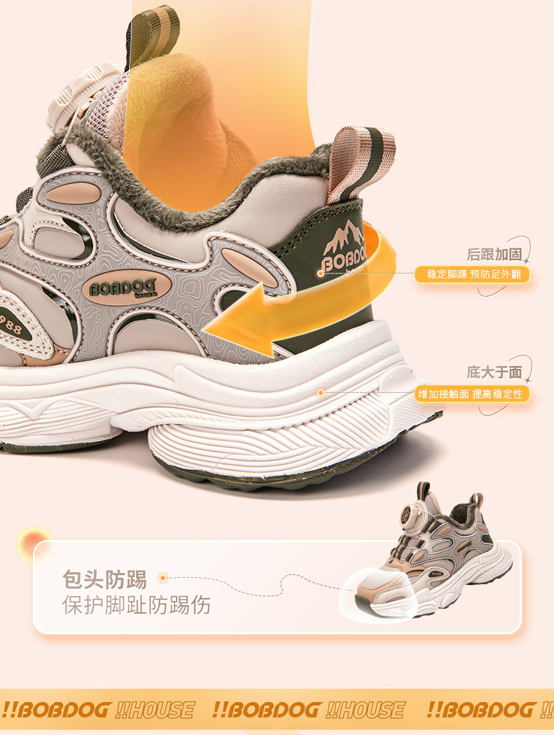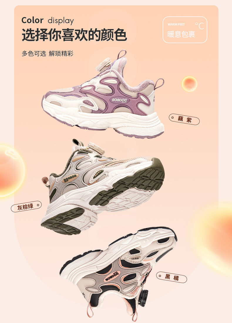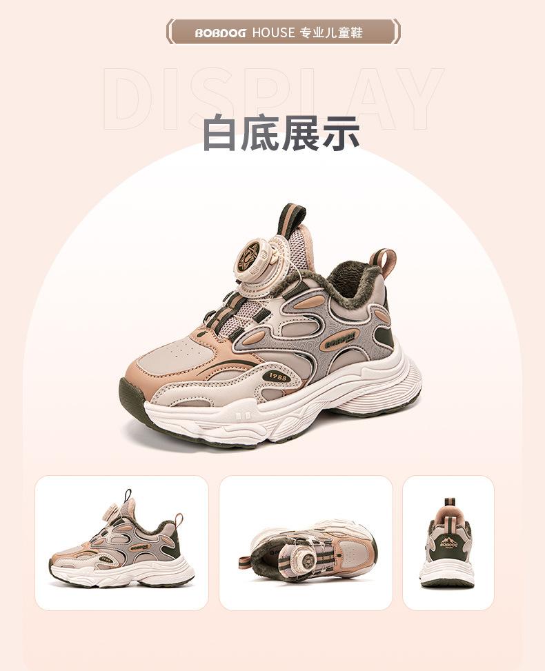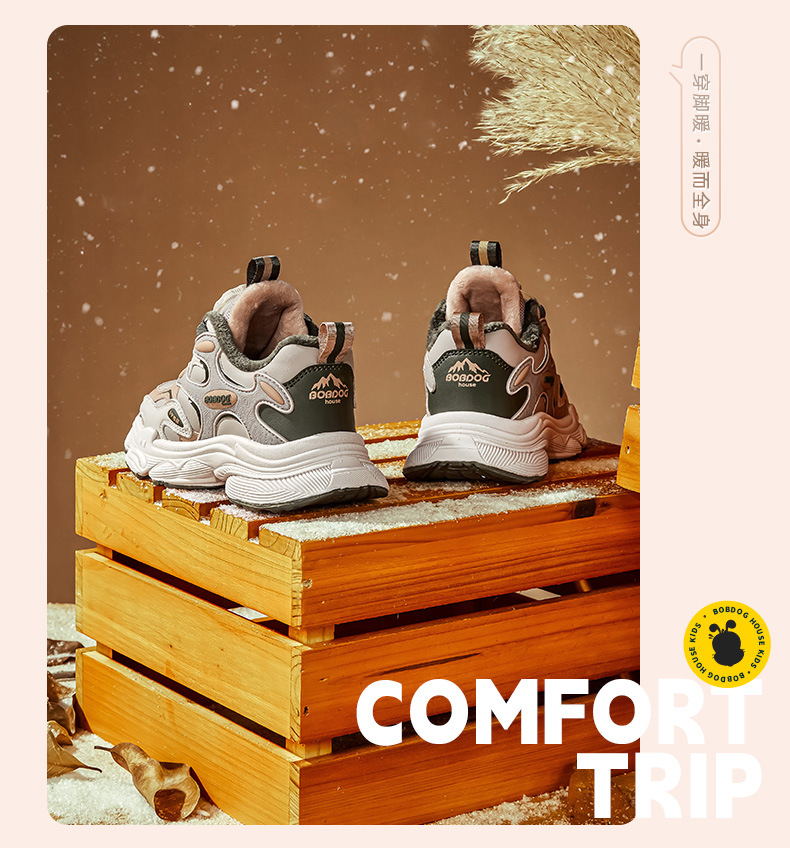 Babus 2023 зимние дети плюс бархат, две хлопчатобумажные туфли, вращающиеся пуговицы, теплые нескользящие и износостойкие повседневные кроссовки
