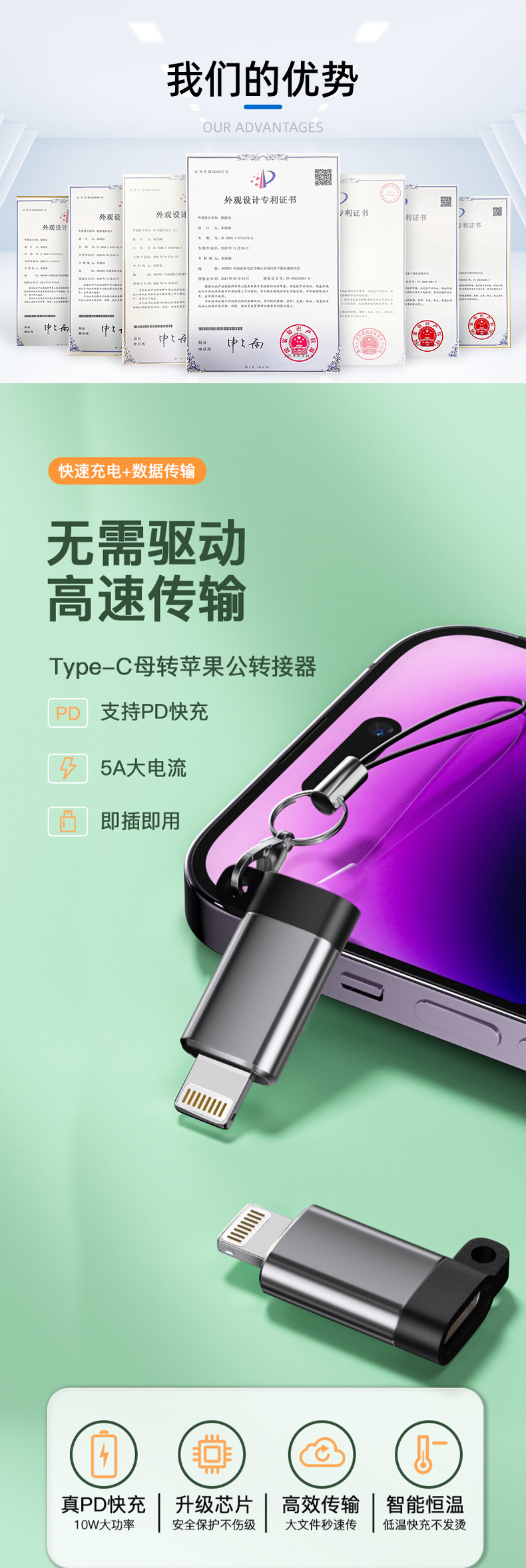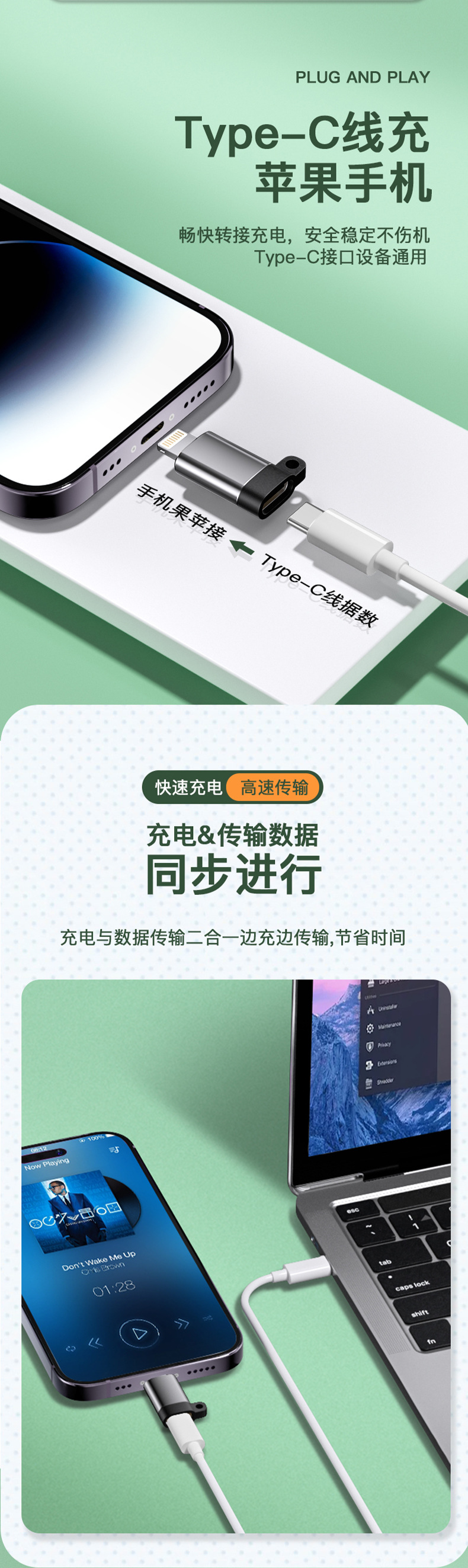 Применимо для Huawei Apple Phone зарядный адаптер для передачи зарядки USB преобразователь typec к lightning