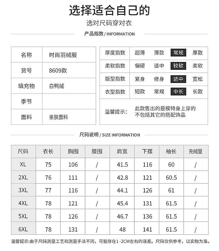 XL [Рекомендуемые 45,00-52,50 кг]; XXL [Рекомендация 52,50 кг-60,00 кг]; XXXL [Рекомендуемые 60,00-67,50 кг]; 4XL [Рекомендуемые 67,50-75,00 кг]; 5XL Рекомендуемый 75,00-80,00 кг]; 6XL [Рекомендуемые 80,00-87,50 кг]