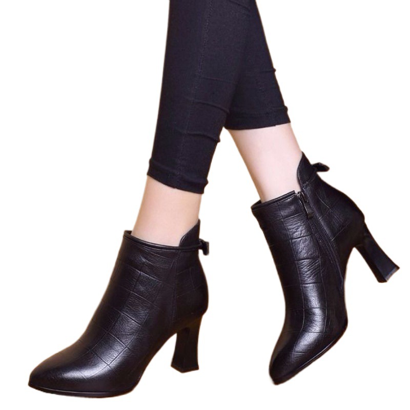 Женские сапоги на высоком каблуке 2023, осенне-зимние новые сапоги на толстом каблуке в британском стиле, женская обувь из мягкой кожи, Ботинки Martin на флисовой подкладке