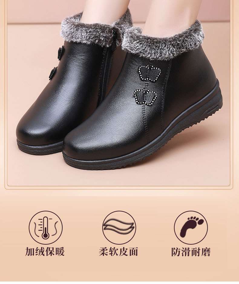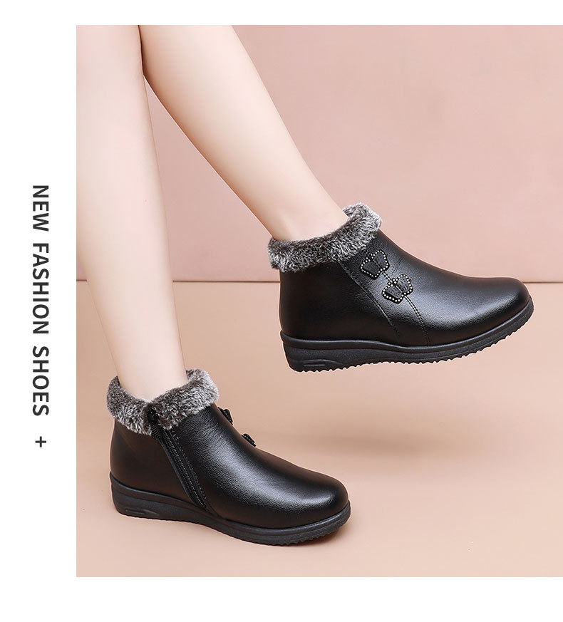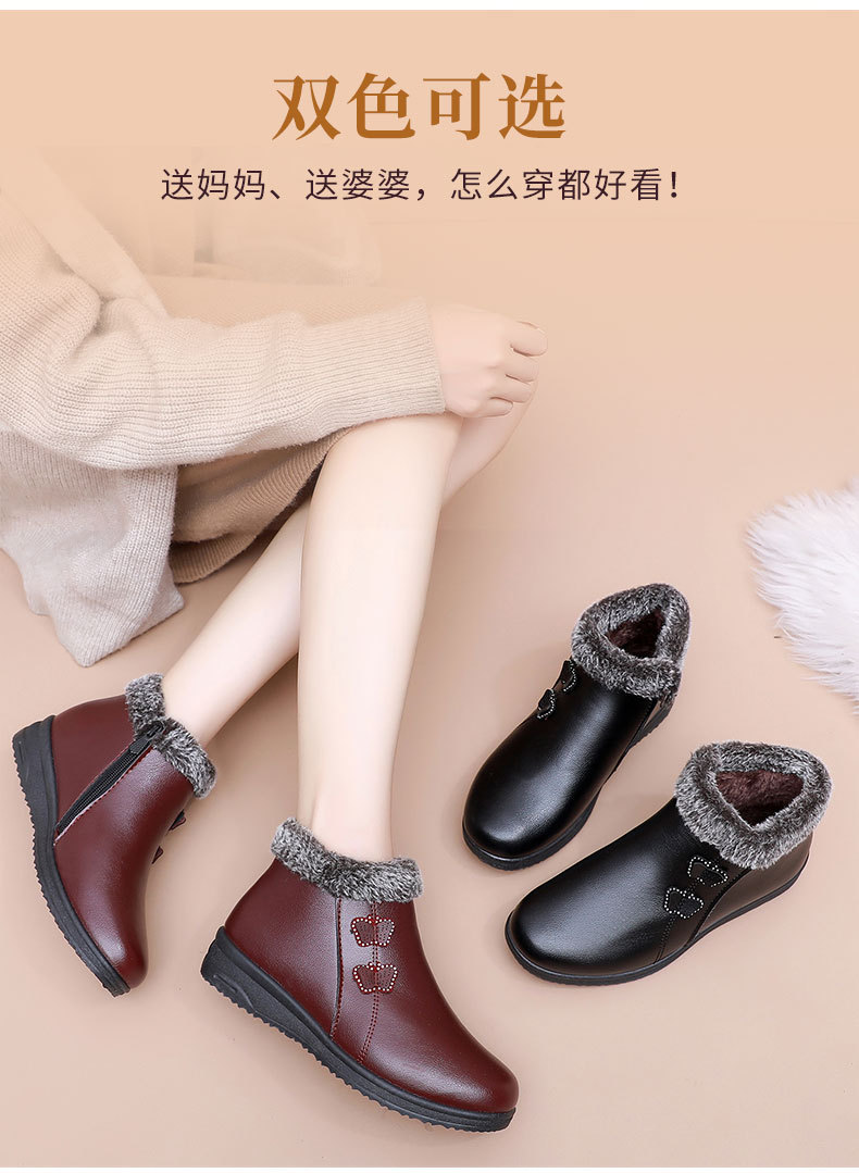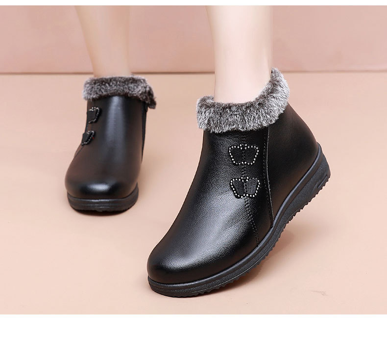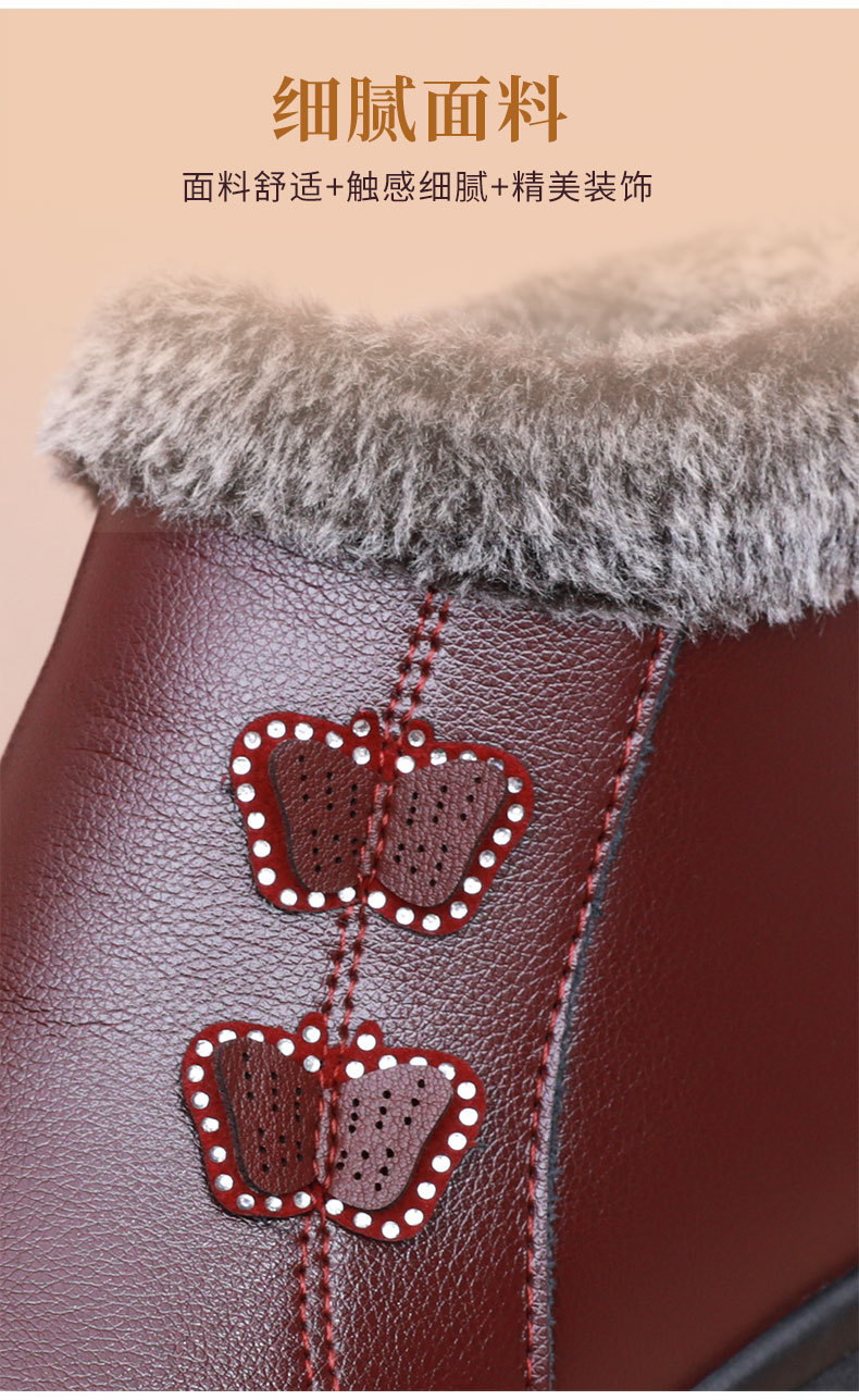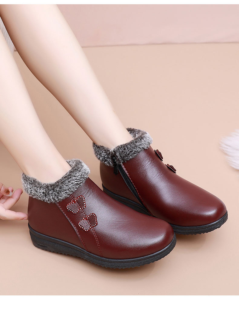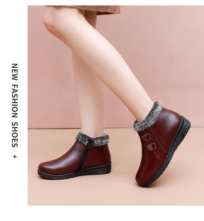 Хлопковая обувь для пожилых людей, теплая обувь на флисовой подкладке, для женщин среднего и пожилого возраста, короткие сапоги, непромокаемая Нескользящая зимняя обувь для мам на плоской подошве, кожаная обувь