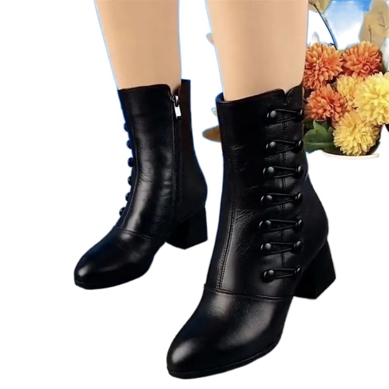 Тонкие сапоги новые короткие сапоги женские 2023 осенне-зимние одиночные хлопчатобумажные туфли на среднем каблуке на флисовой подкладке женские сапоги с мягким дном