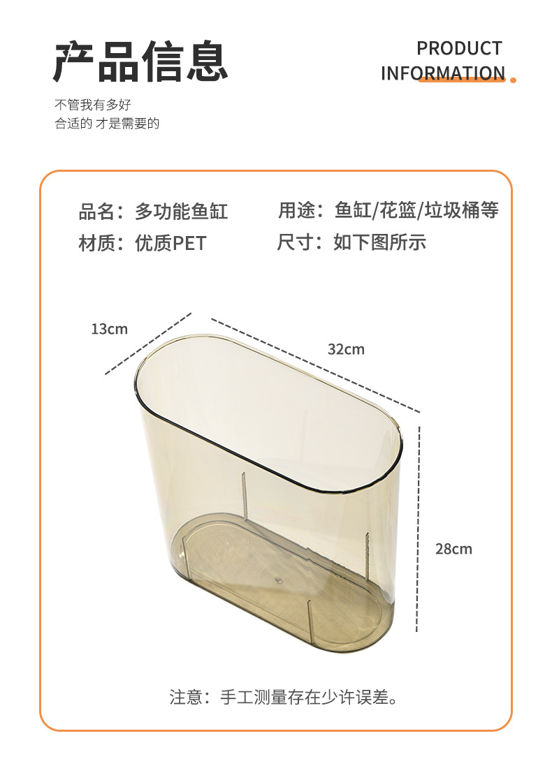 【产品尺寸】:9108鱼缸35.5*24*15 椭圆14*31.5*28.5 方形24.7*24.7*28.7 圆形21.5*18*27.2