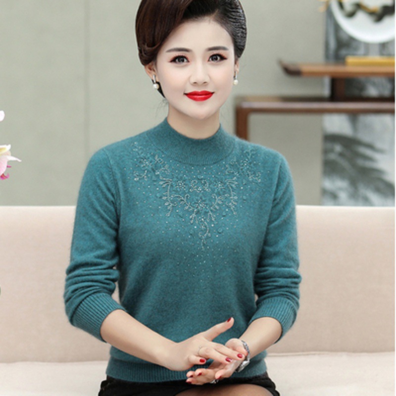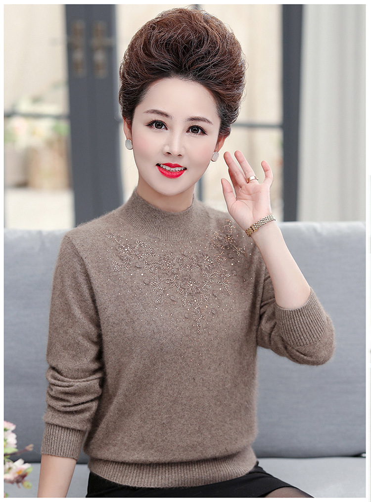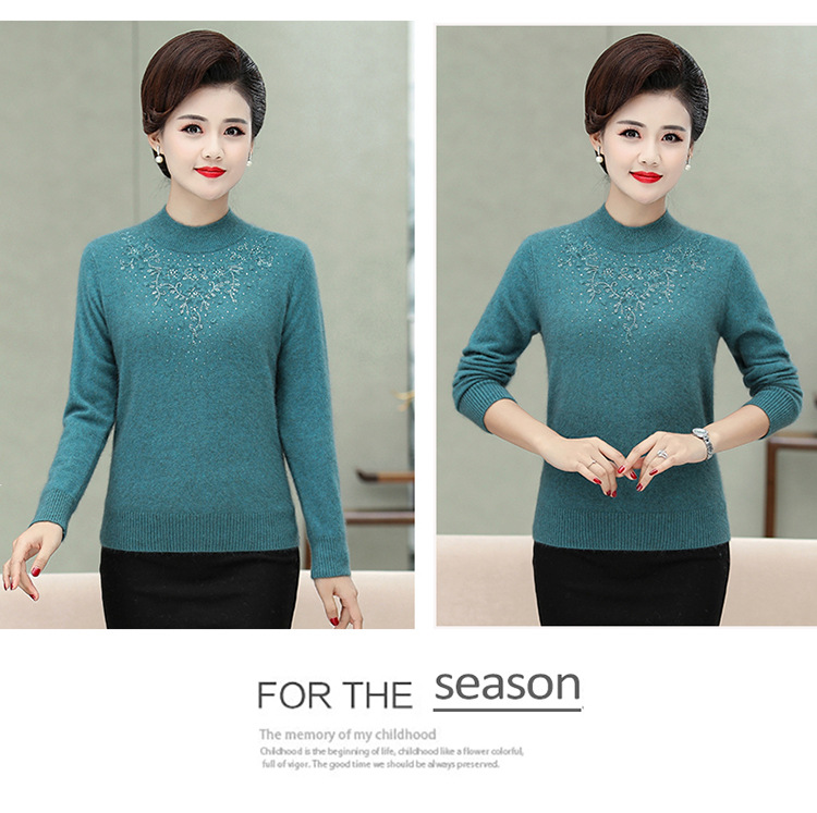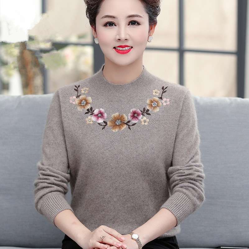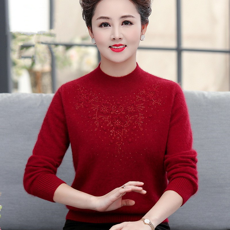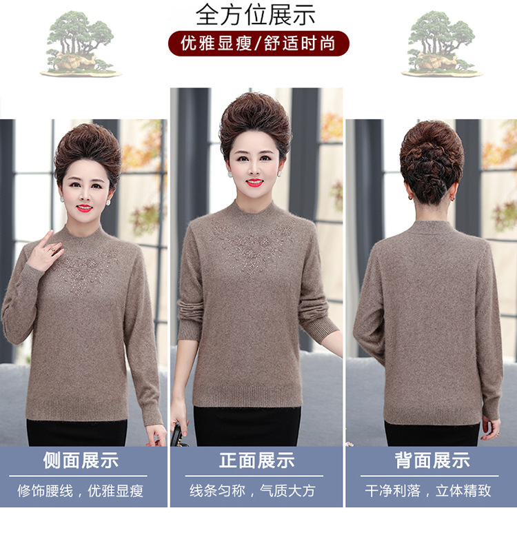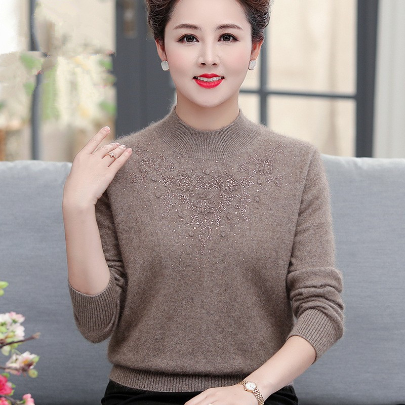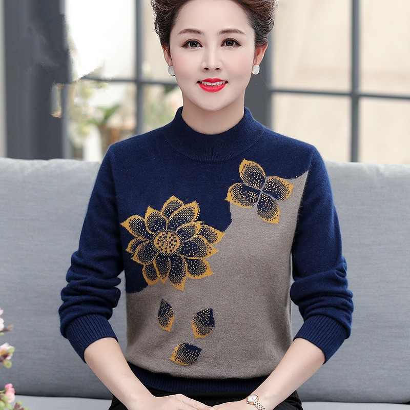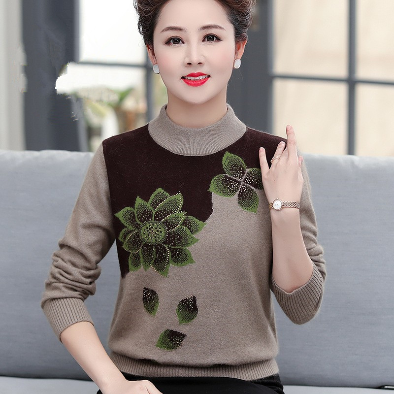 Новая стильная одежда для мам: базовая рубашка из чистой шерсти, свитер из шерсти больших размеров для женщин среднего и старшего возраста, утолщенная осенне-зимняя шерстяная одежда.