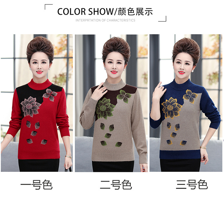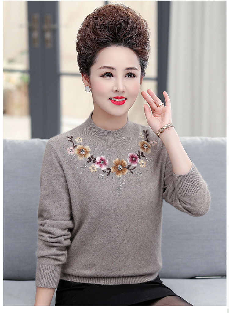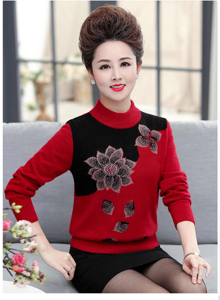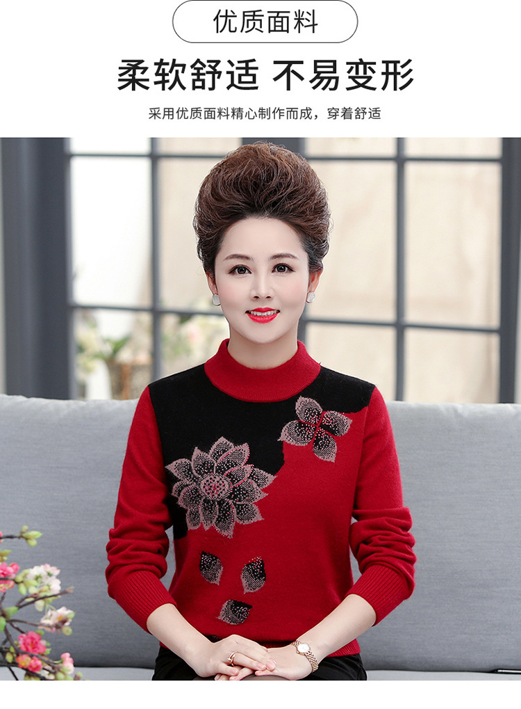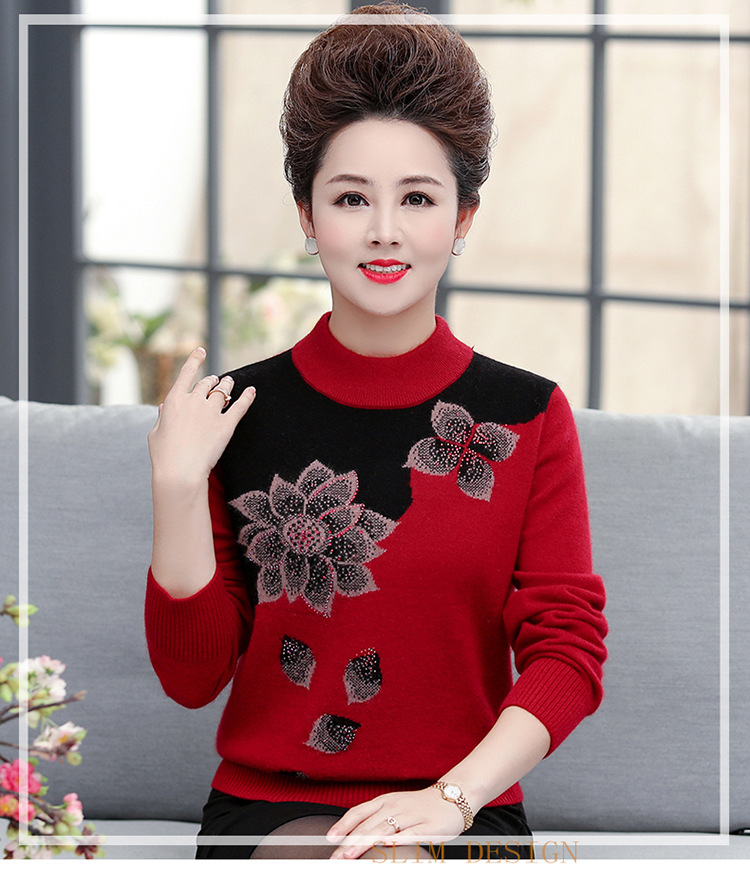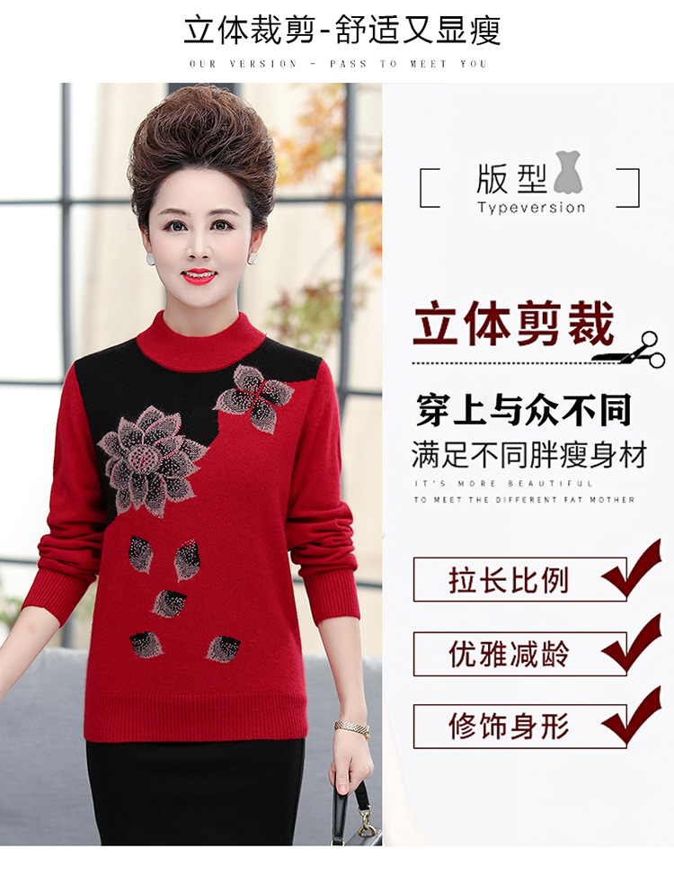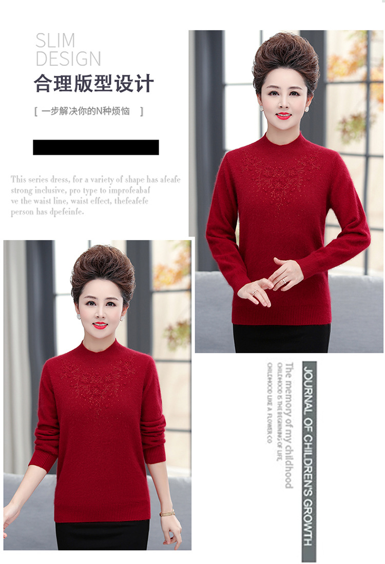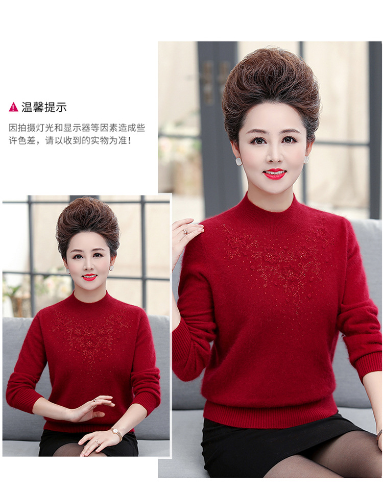 Новая стильная одежда для мам: базовая рубашка из чистой шерсти, свитер из шерсти больших размеров для женщин среднего и старшего возраста, утолщенная осенне-зимняя шерстяная одежда.