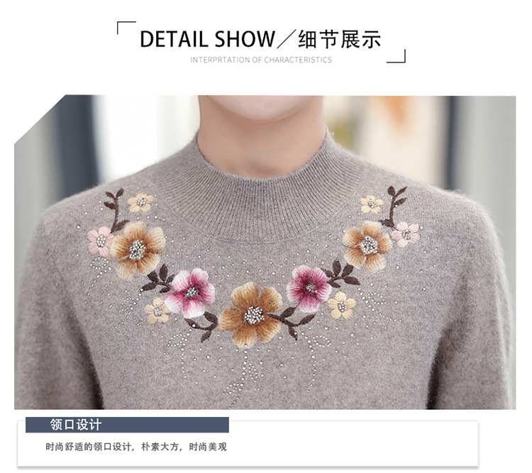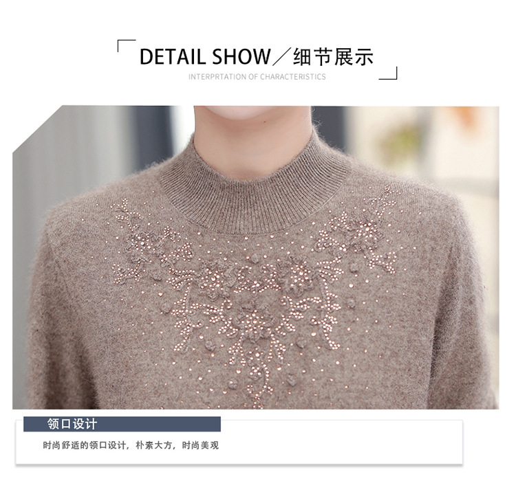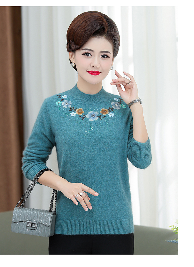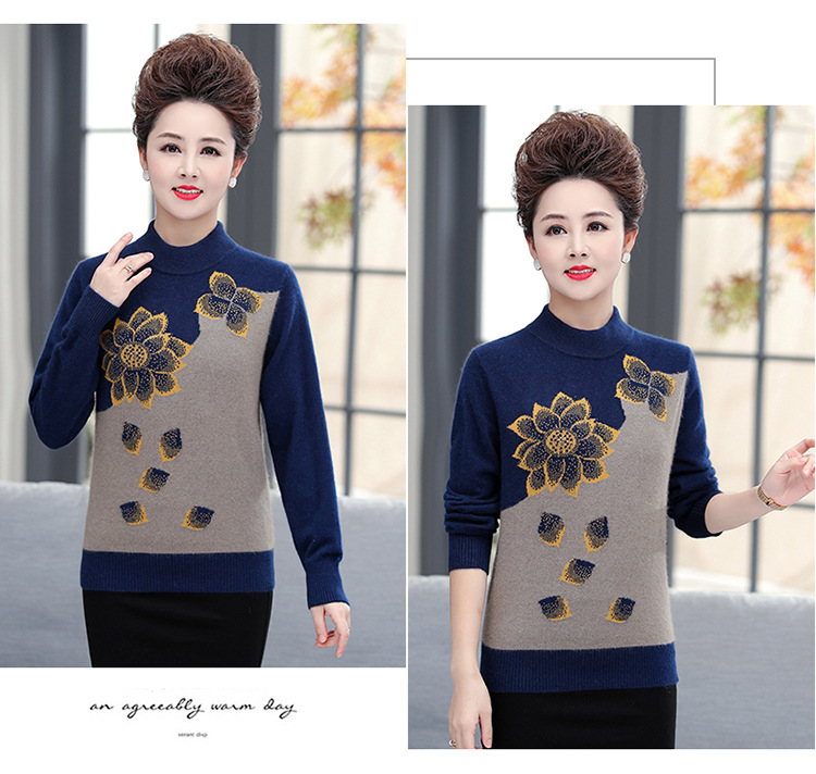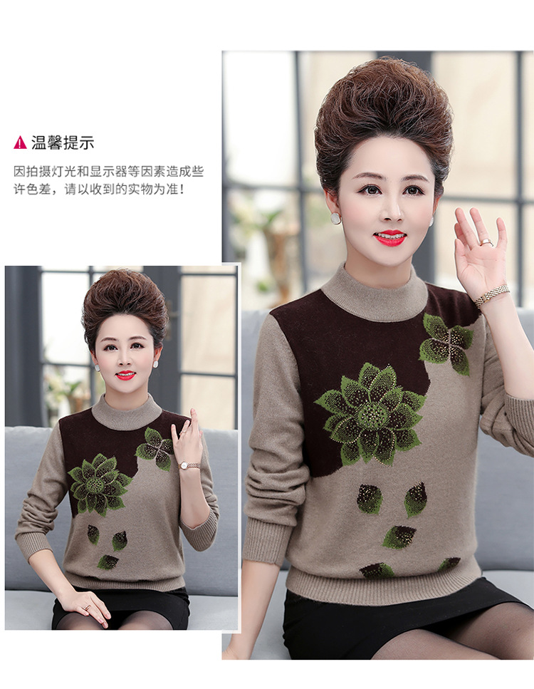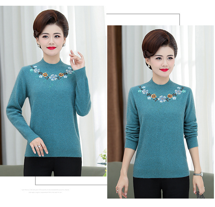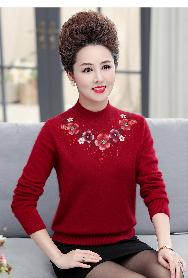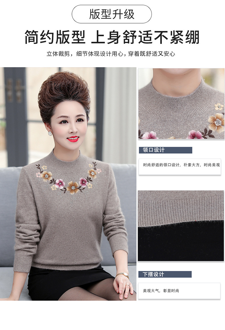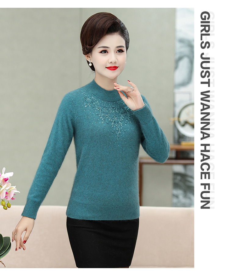 Новая стильная одежда для мам: базовая рубашка из чистой шерсти, свитер из шерсти больших размеров для женщин среднего и старшего возраста, утолщенная осенне-зимняя шерстяная одежда.