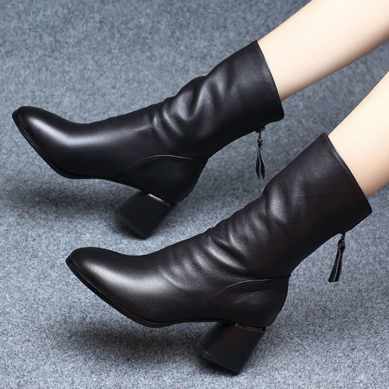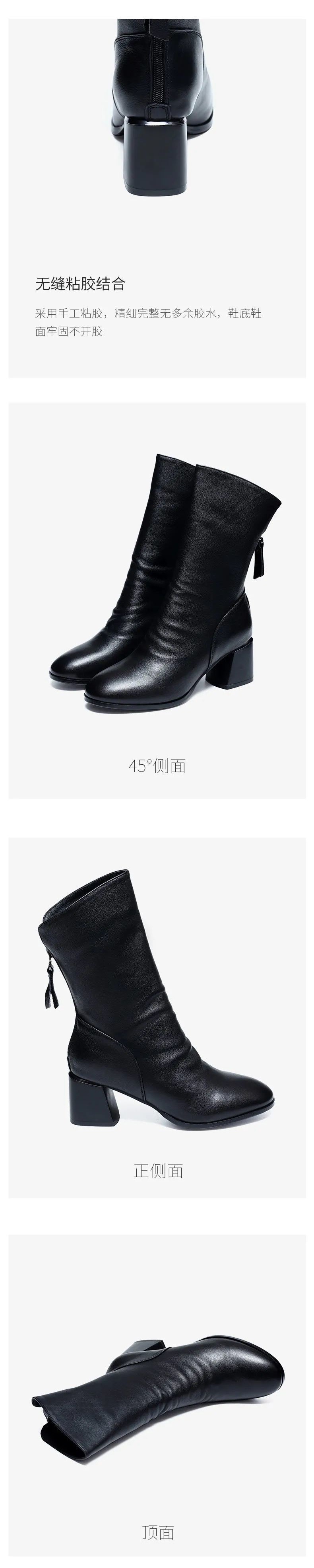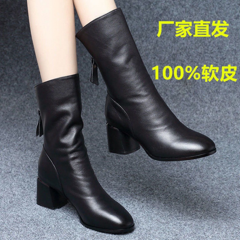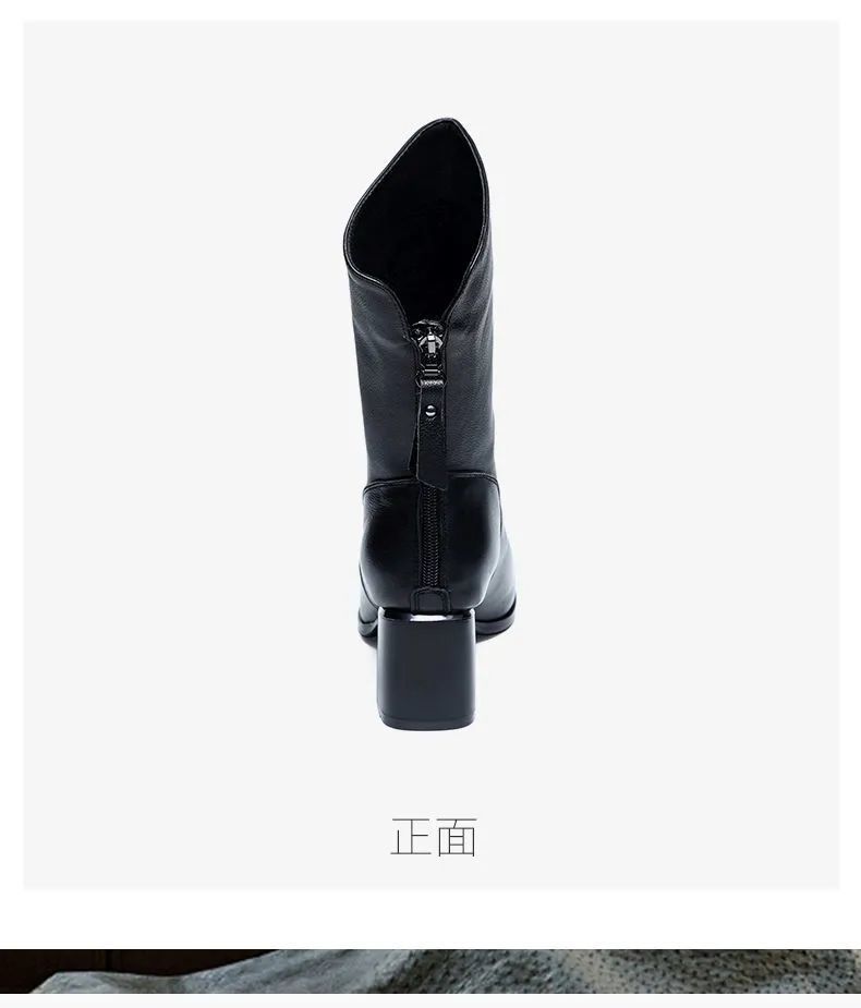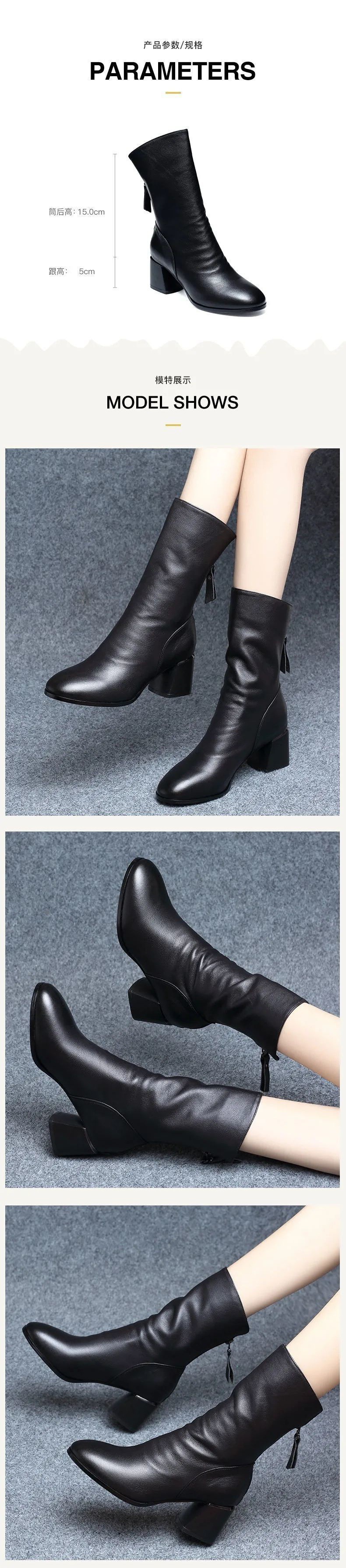 Осенне-зимние сапоги из натуральной мягкой кожи на среднем каблуке, женские ботинки Martin на толстом каблуке, универсальные кожаные сапоги на толстом каблуке с острым носком на среднем каблуке