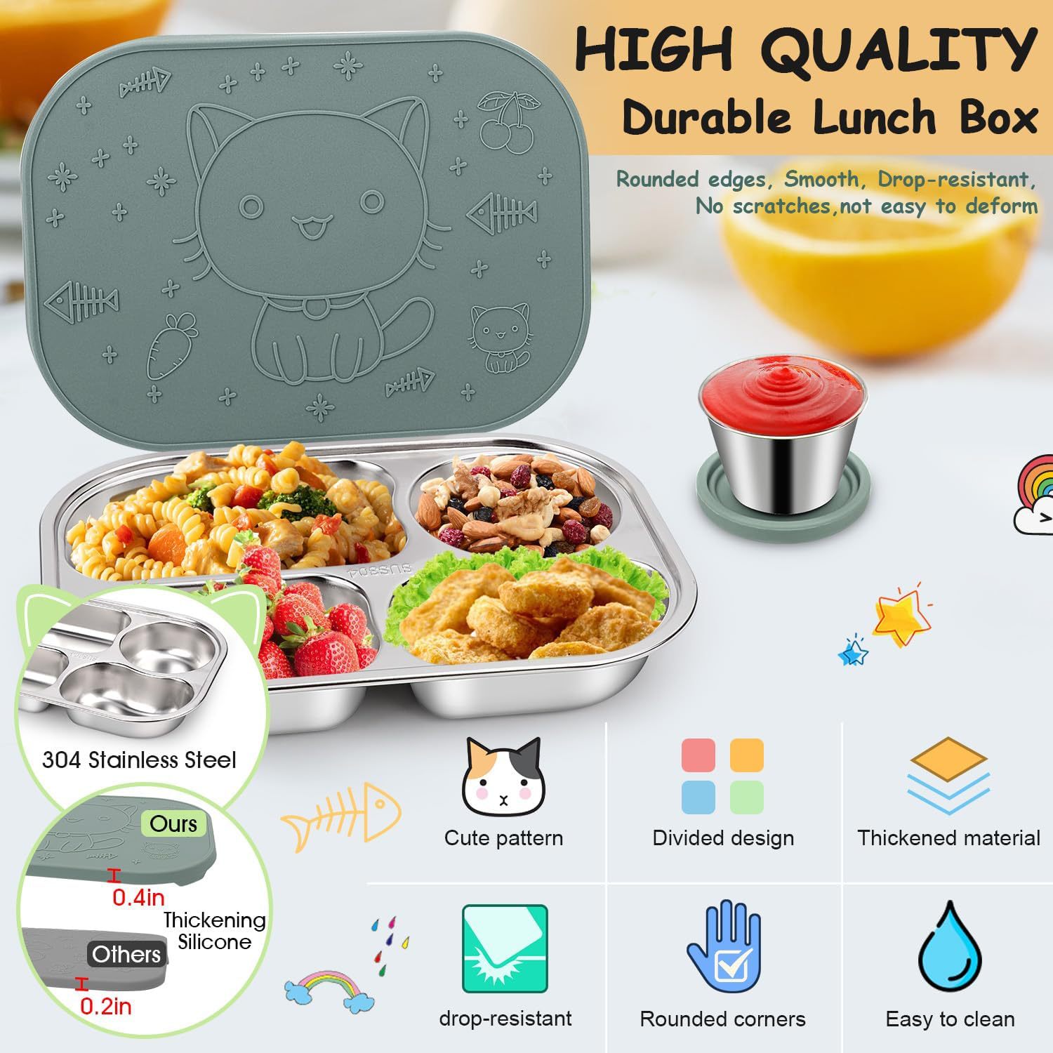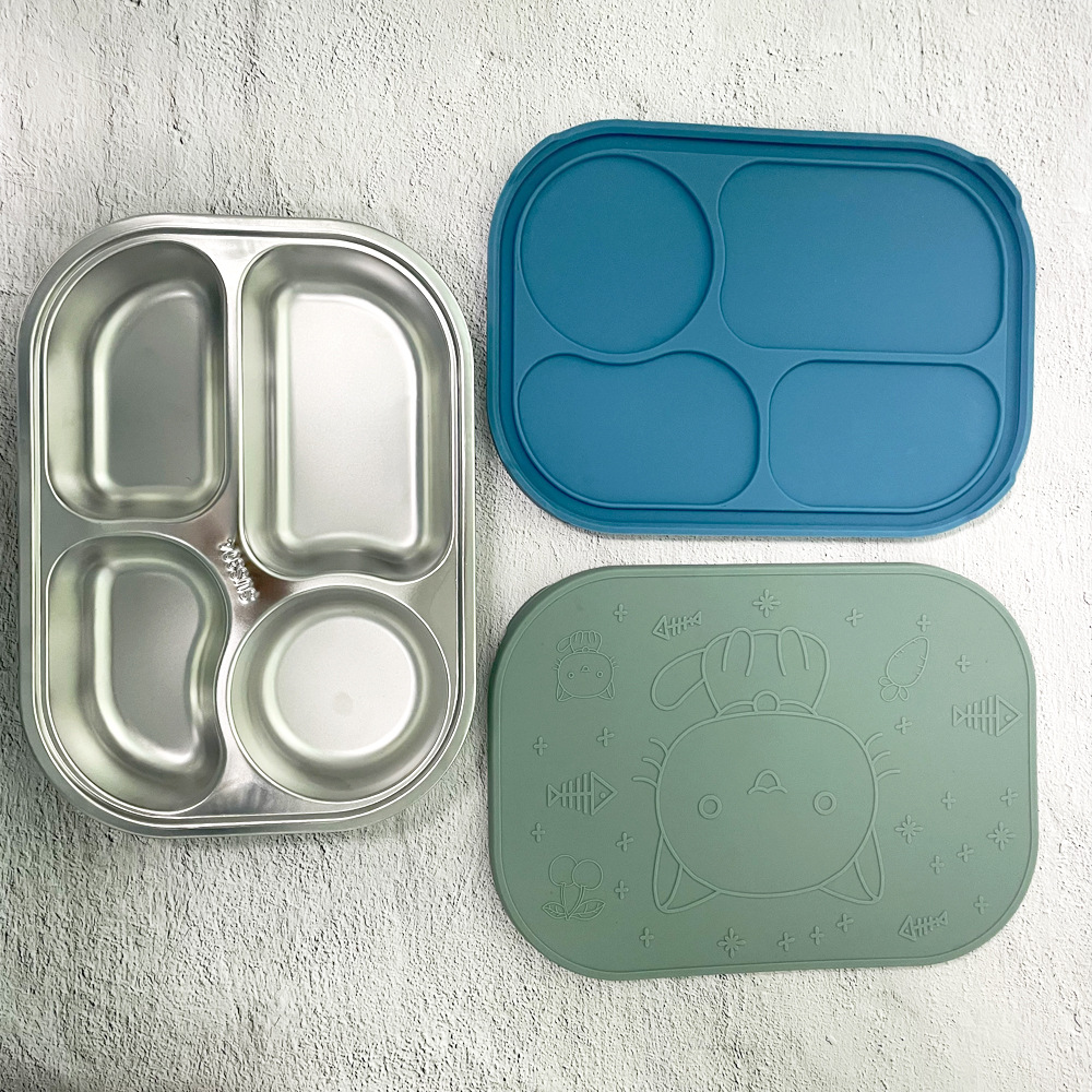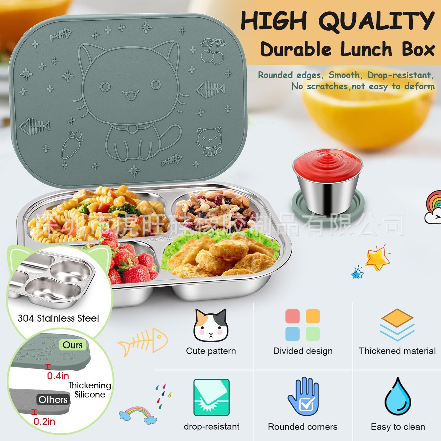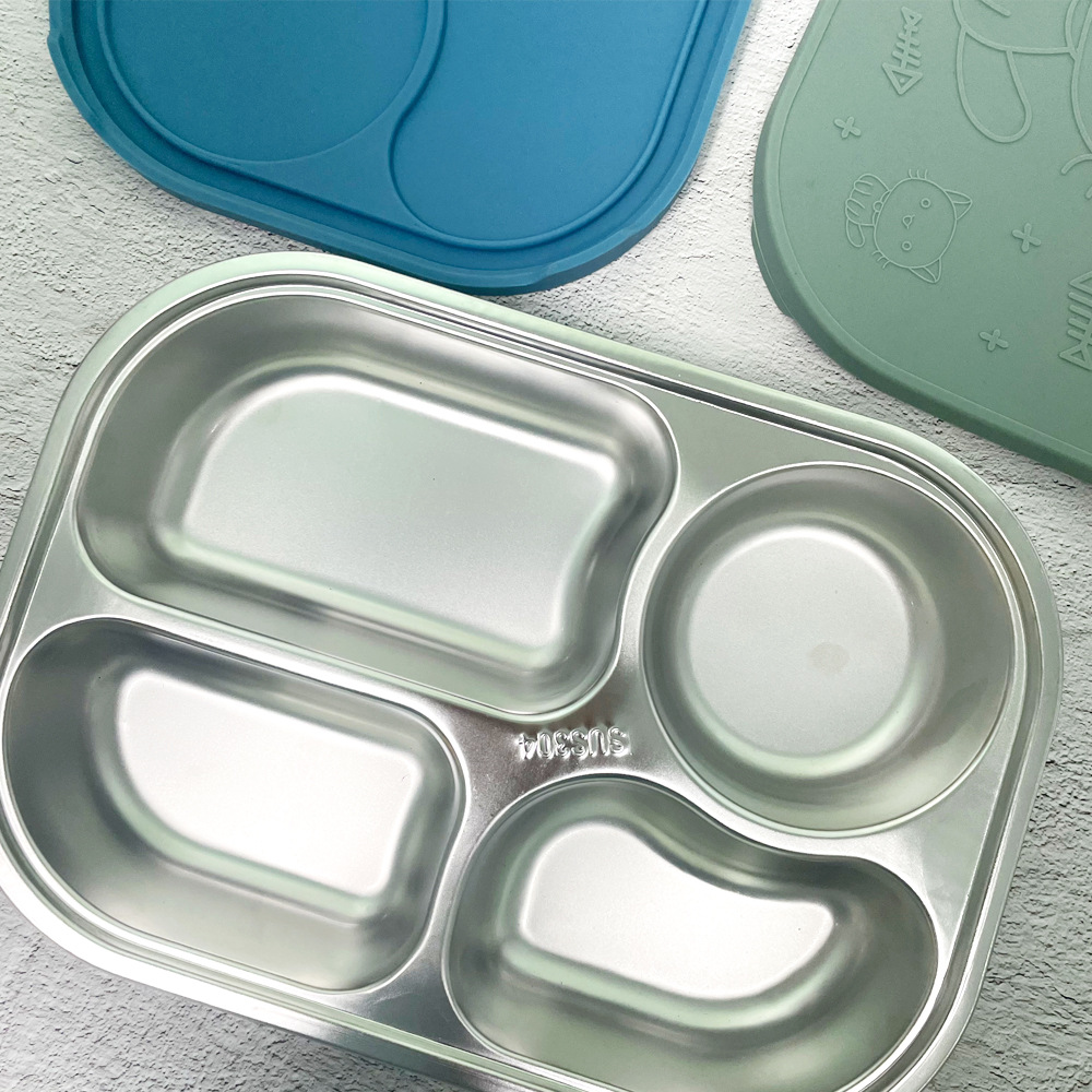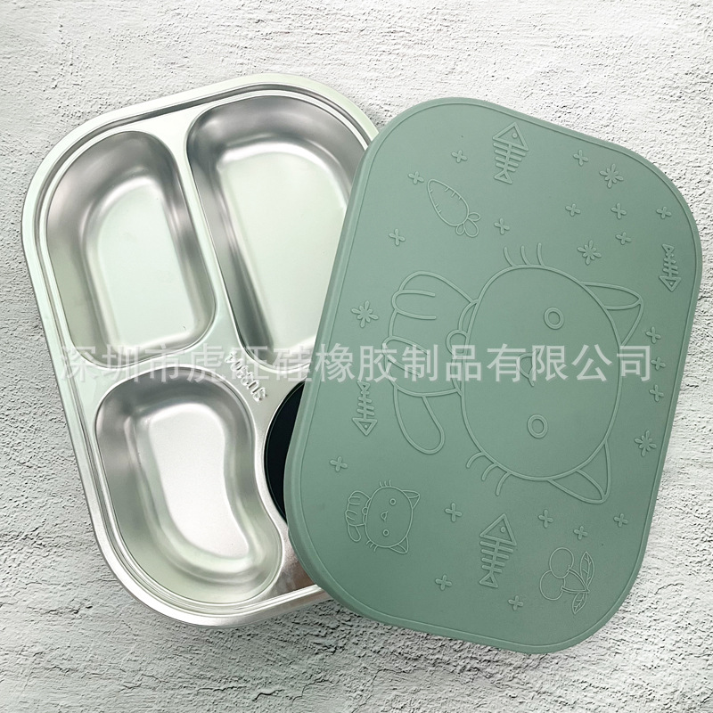 【产品名称】不锈钢分格餐盘带硅胶密封盖