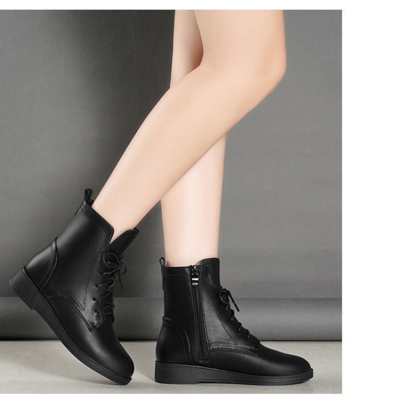 Качественные короткие сапоги, женские осенне-зимние ботинки Martins, женские сапоги на плоской подошве, Нескользящие женские одиночные сапоги на флисовой подкладке