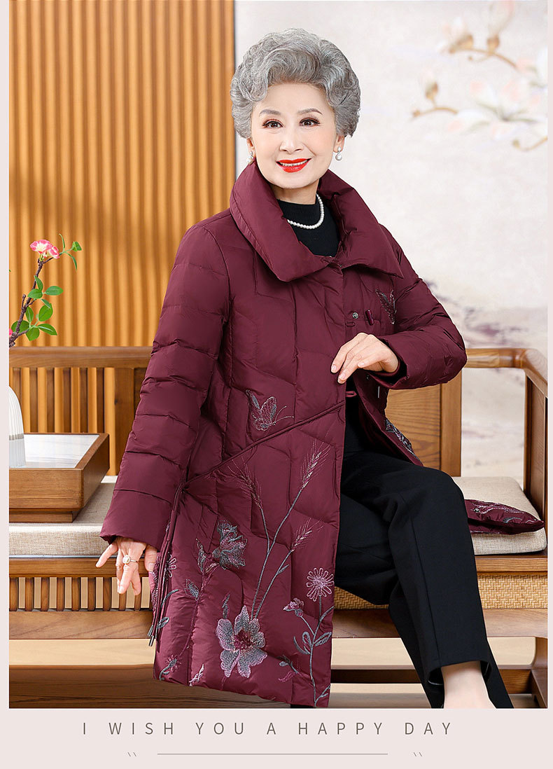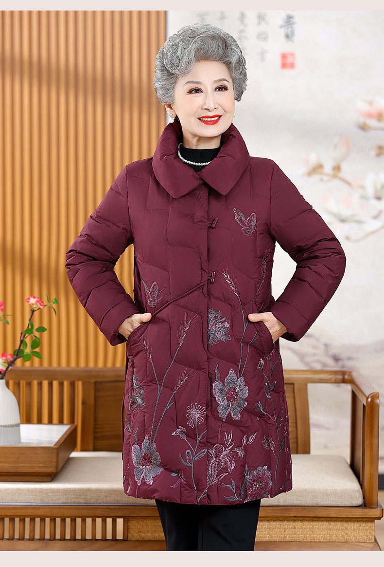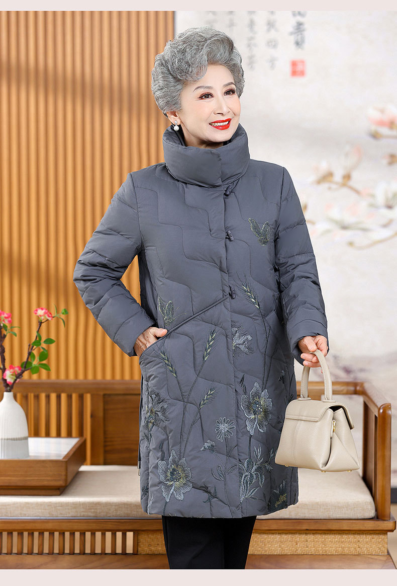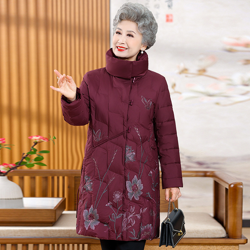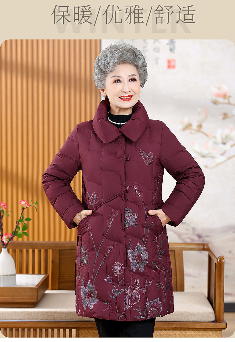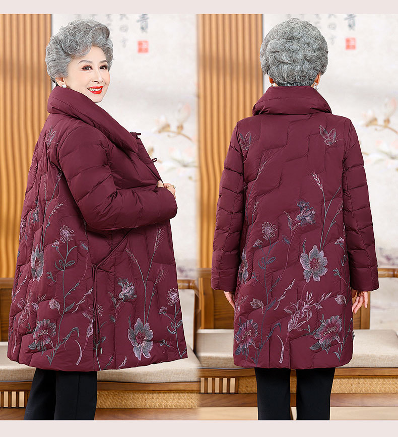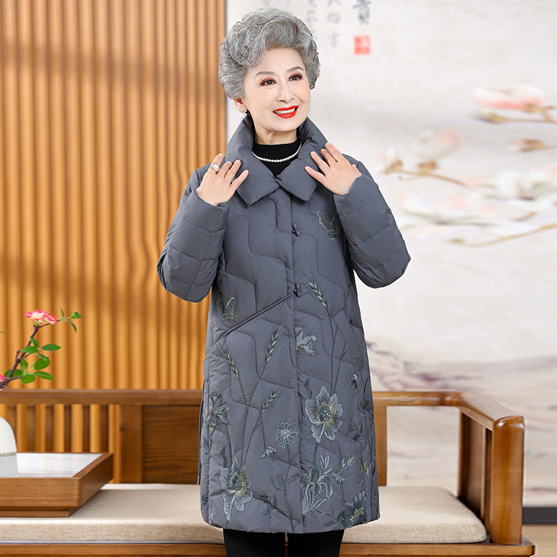 Средние и старые пуховики средней и длинной мамы пальто осень-зима топ вышивка большой размер пожилой матери толстый хлопковый костюм