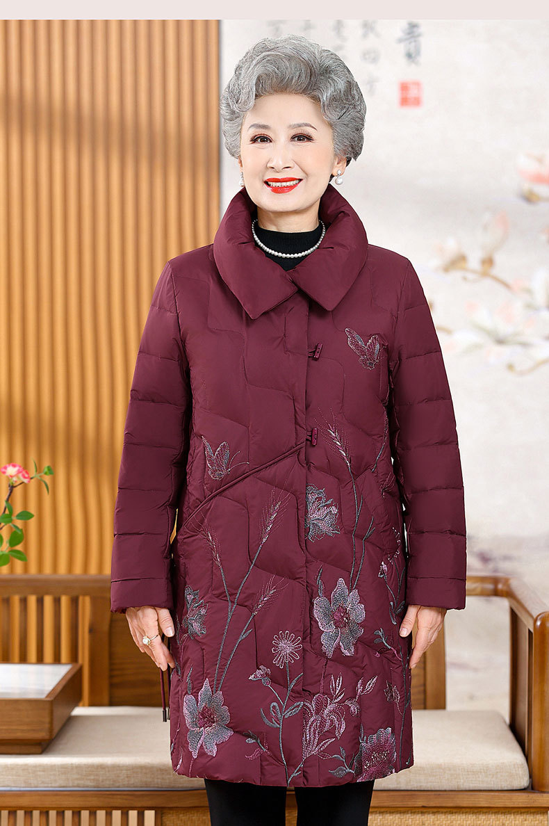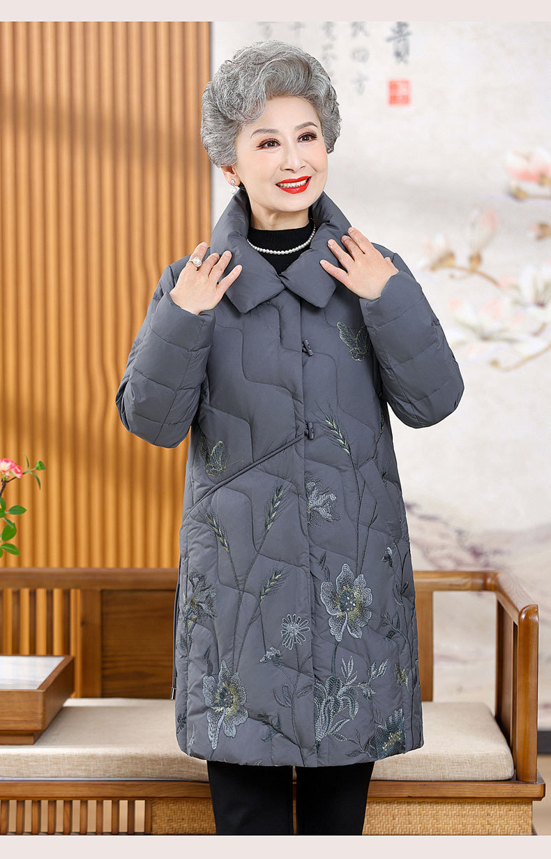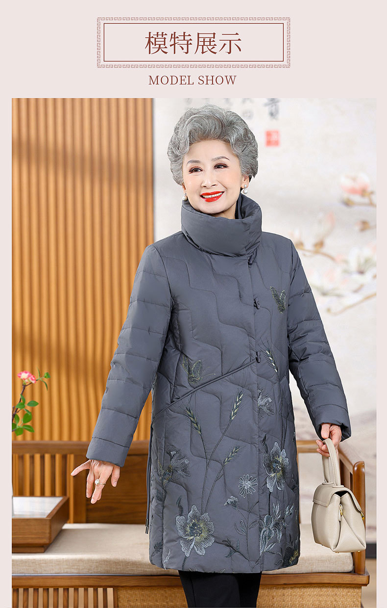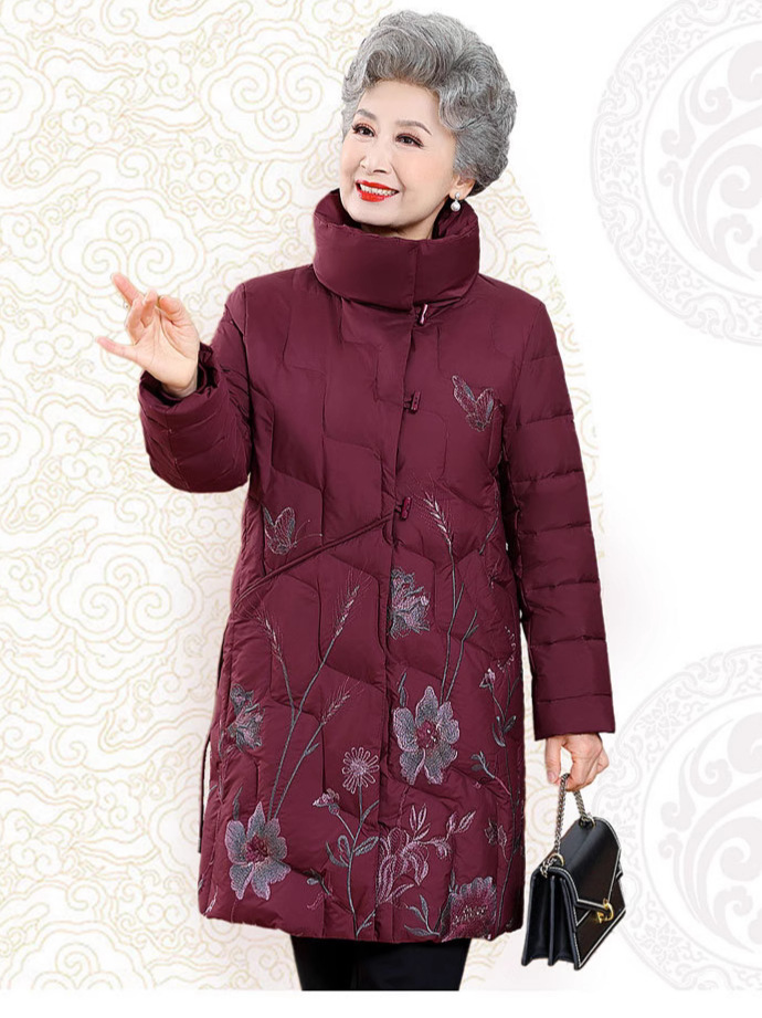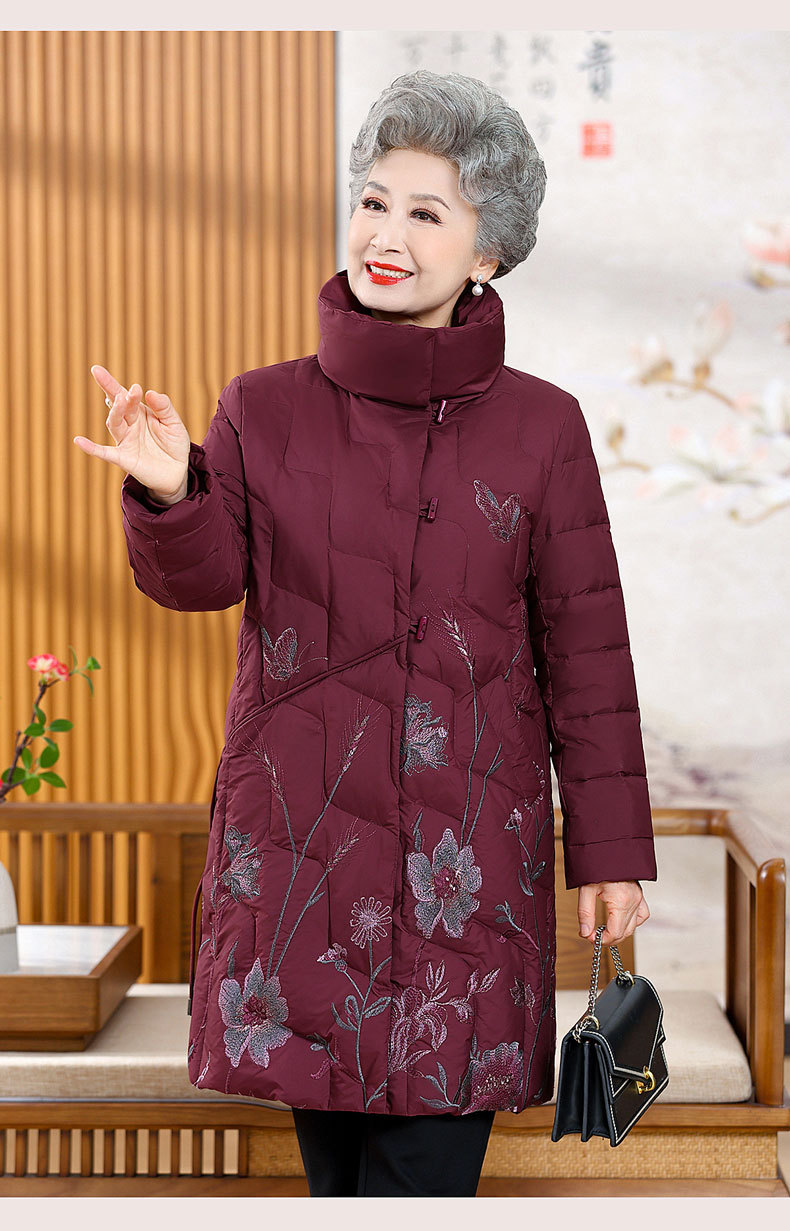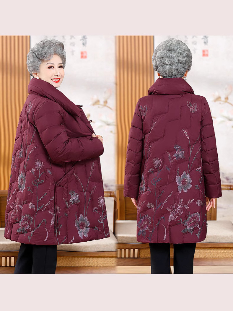 Средние и старые пуховики средней и длинной мамы пальто осень-зима топ вышивка большой размер пожилой матери толстый хлопковый костюм