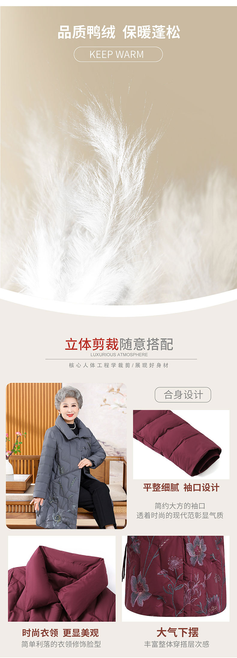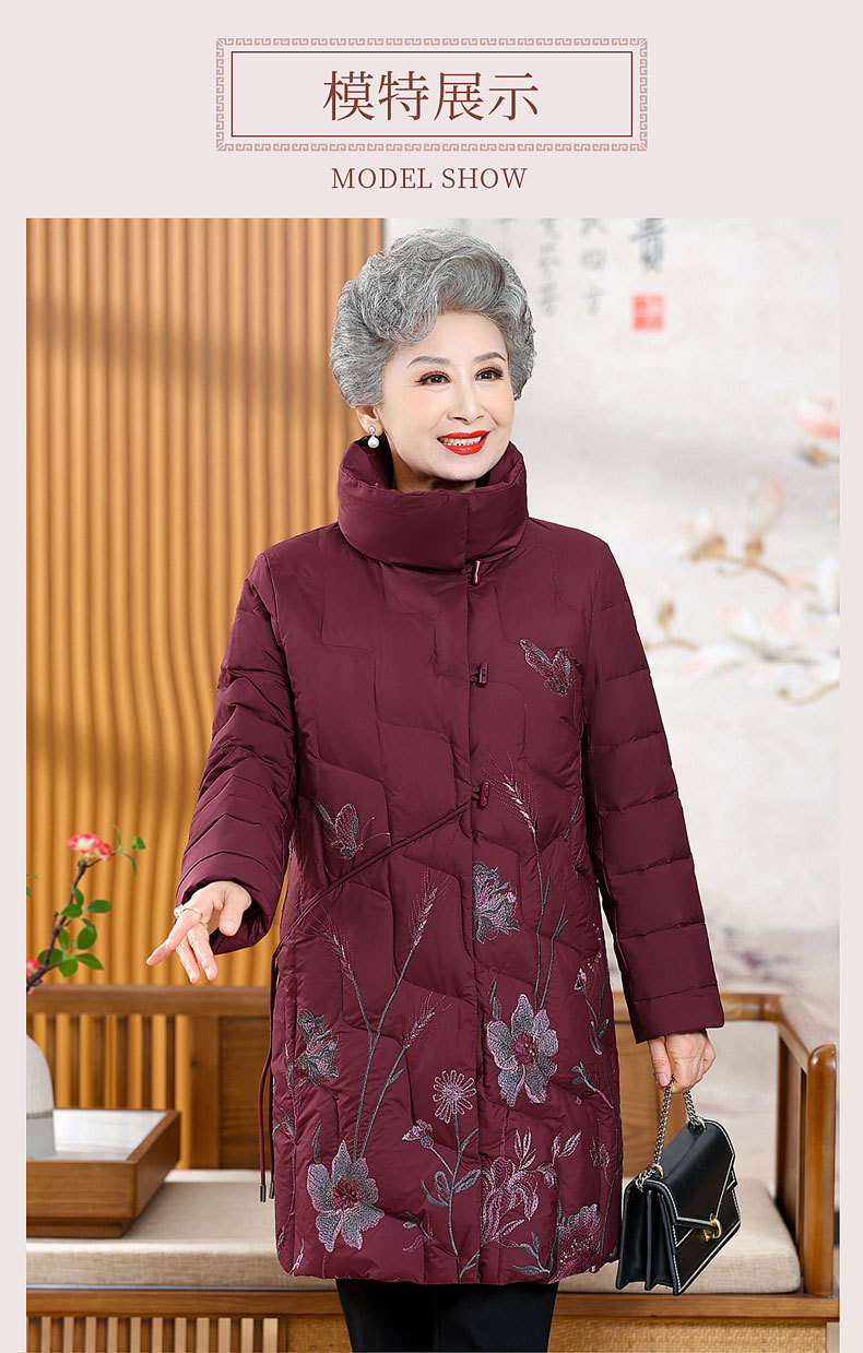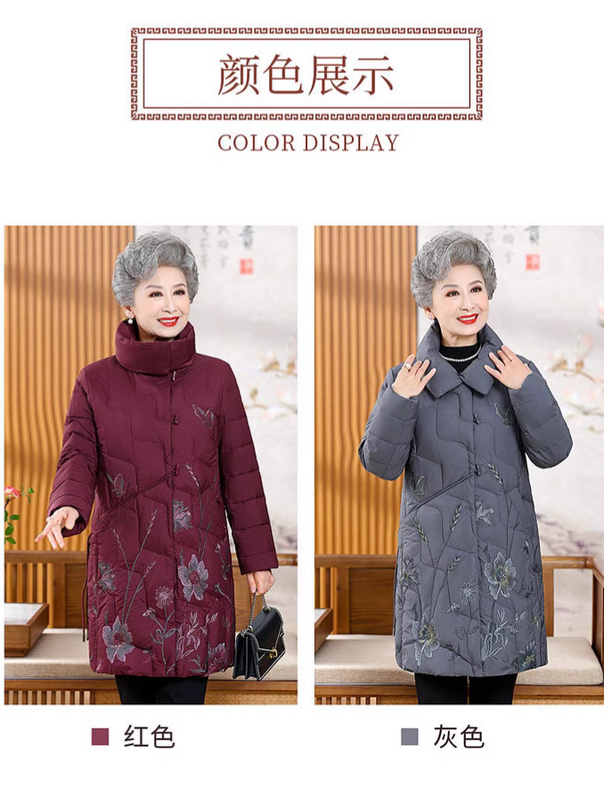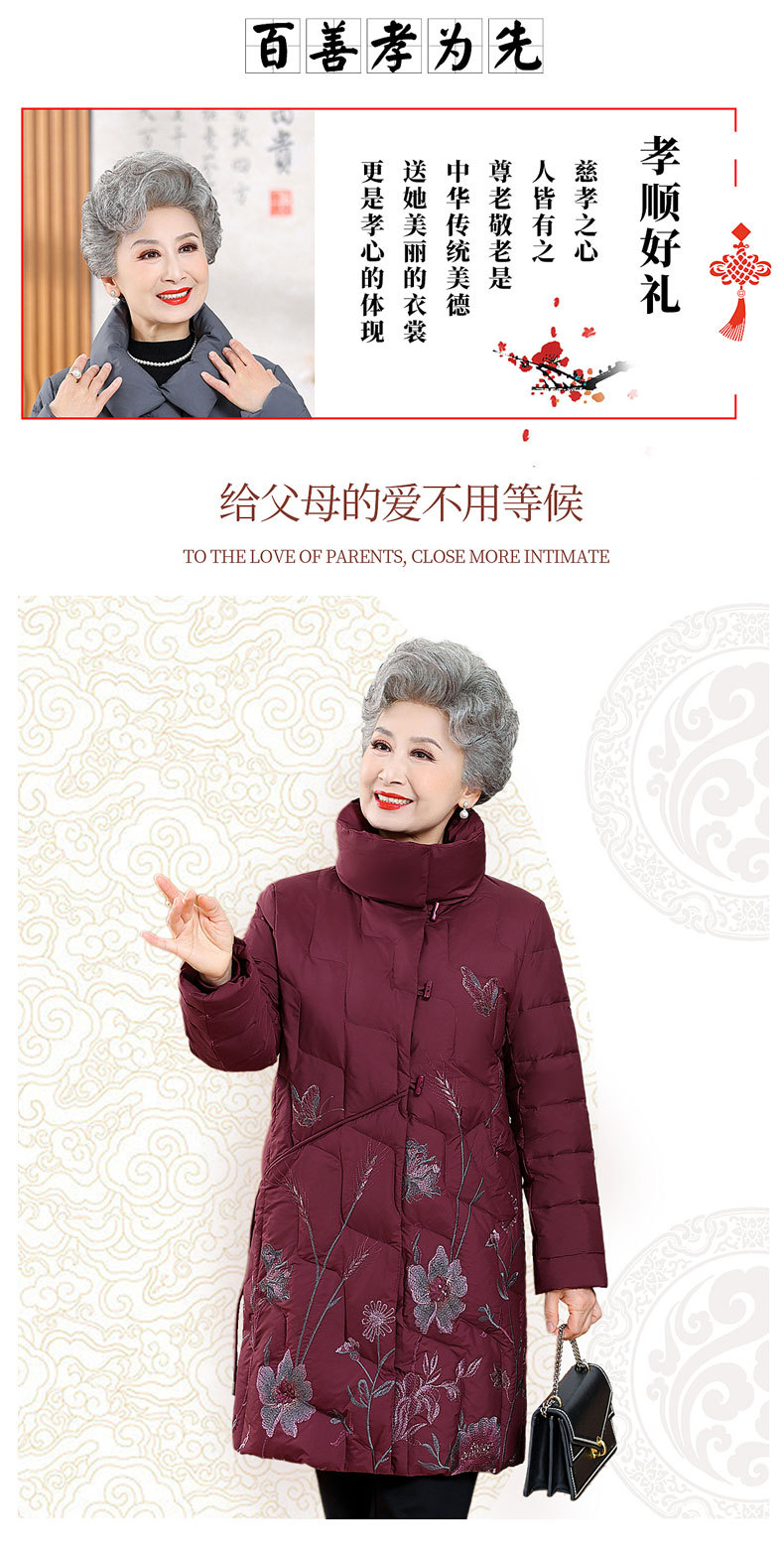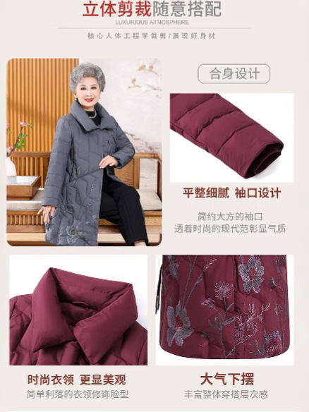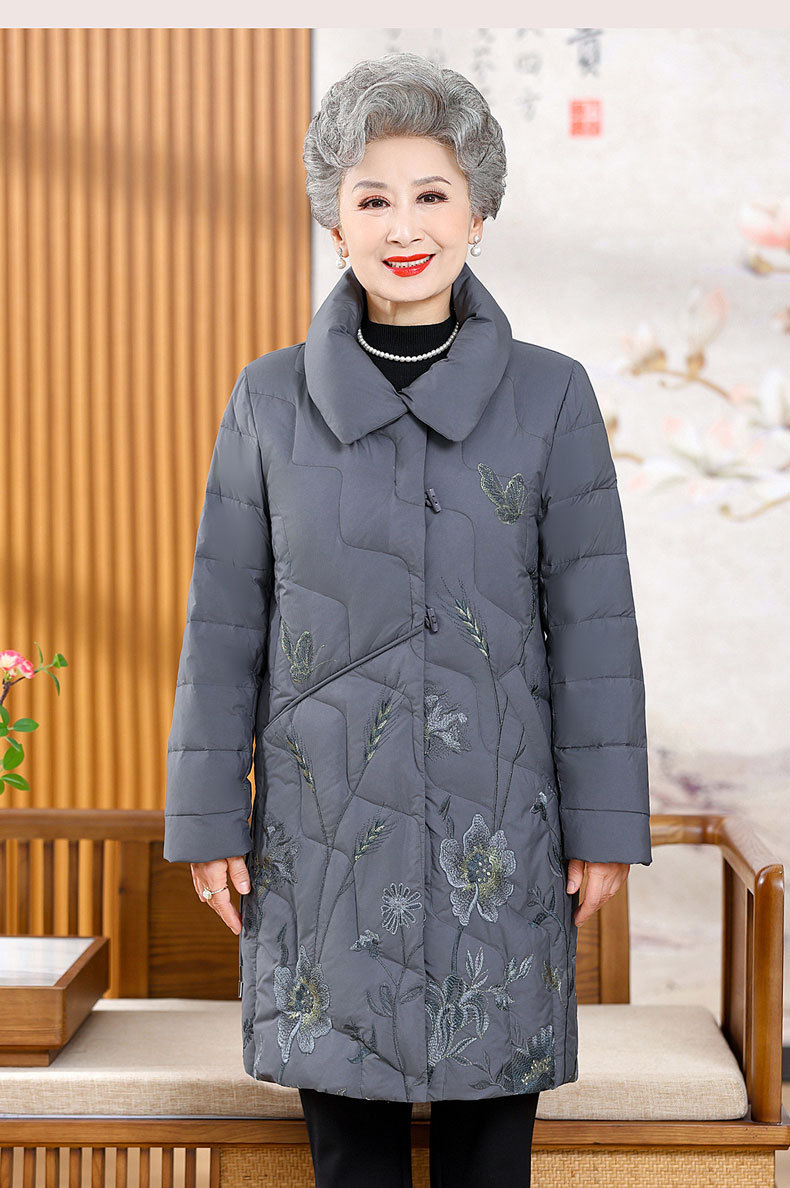 Средние и старые пуховики средней и длинной мамы пальто осень-зима топ вышивка большой размер пожилой матери толстый хлопковый костюм