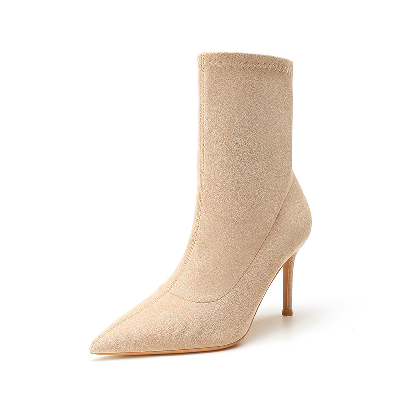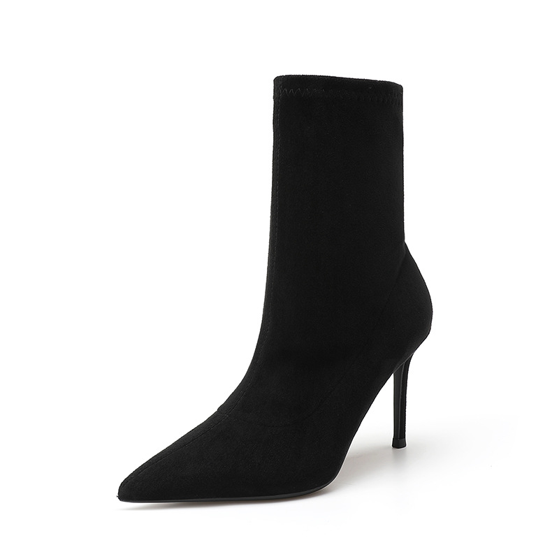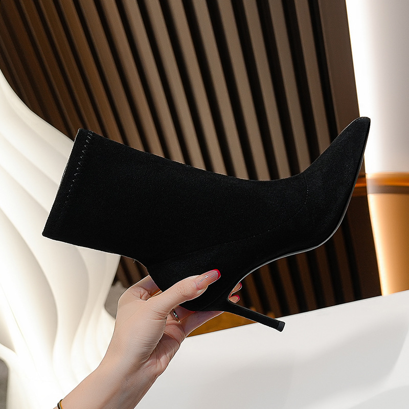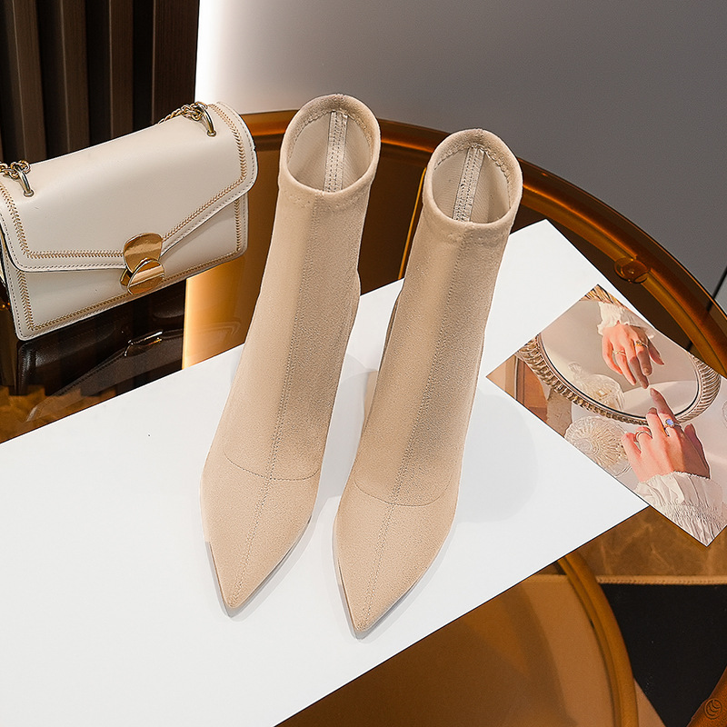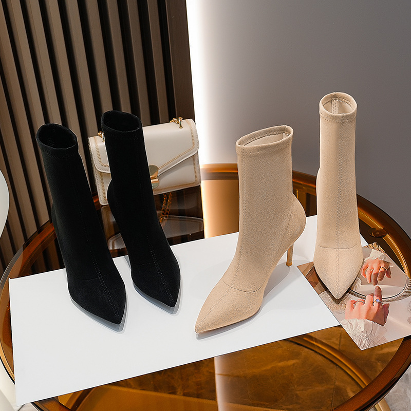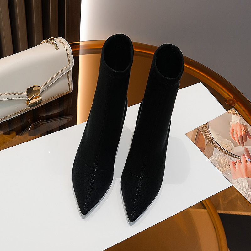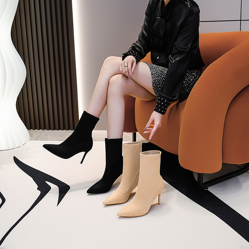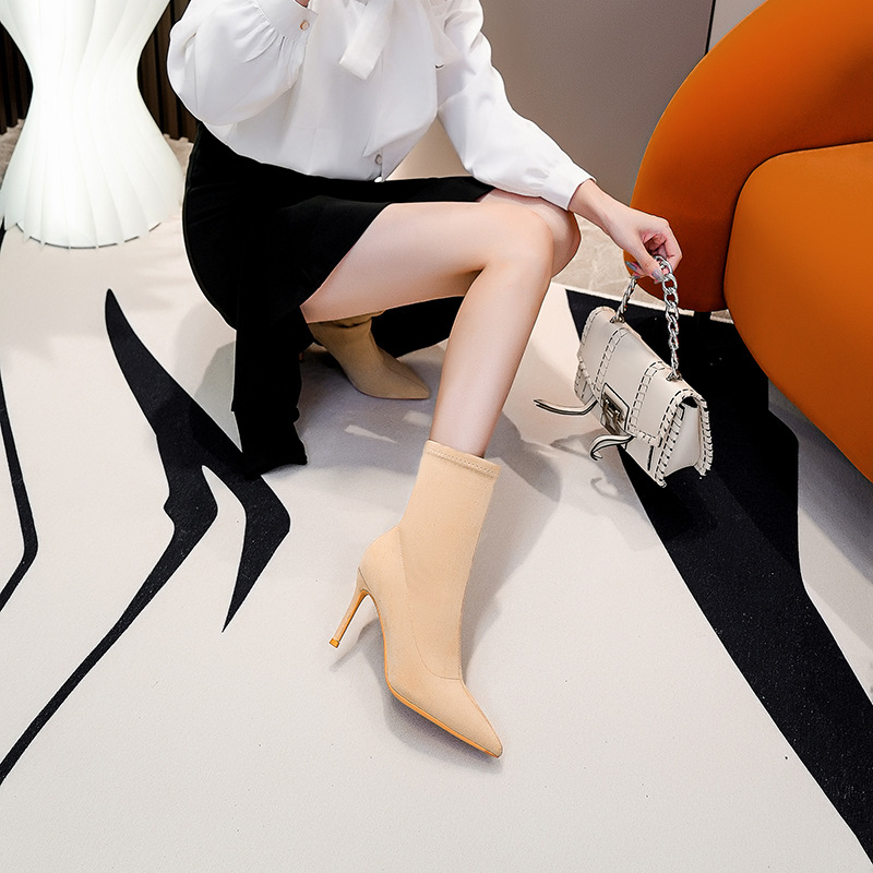 Тонкие ботильоны на каблуке, эластичные облегающие женские сапоги, новые осенне-зимние сапоги-носки 2025 года, универсальные ботинки в стиле «Мартин», туфли на высоком каблуке с острым носком