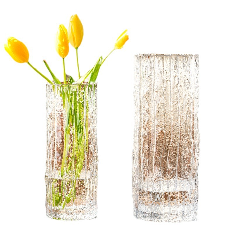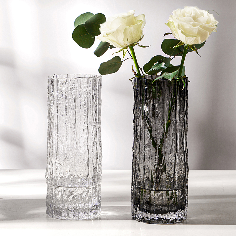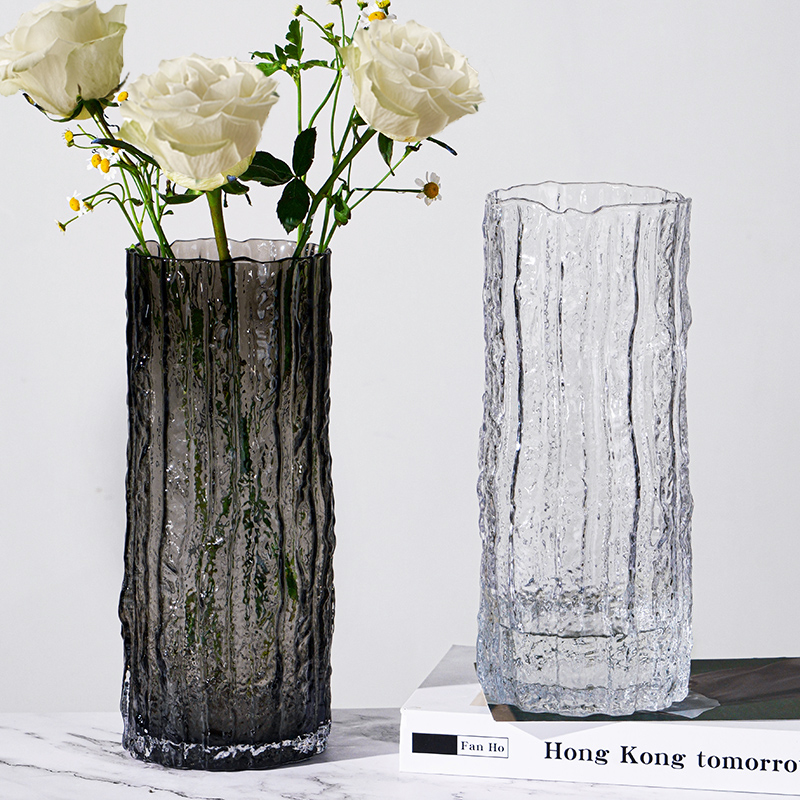 Ins Wind Net красная чрезвычайно замороженная Ледниковая ваза стеклянная прозрачная Цветочная композиция Розовые цветы Гостиная обеденный стол украшение