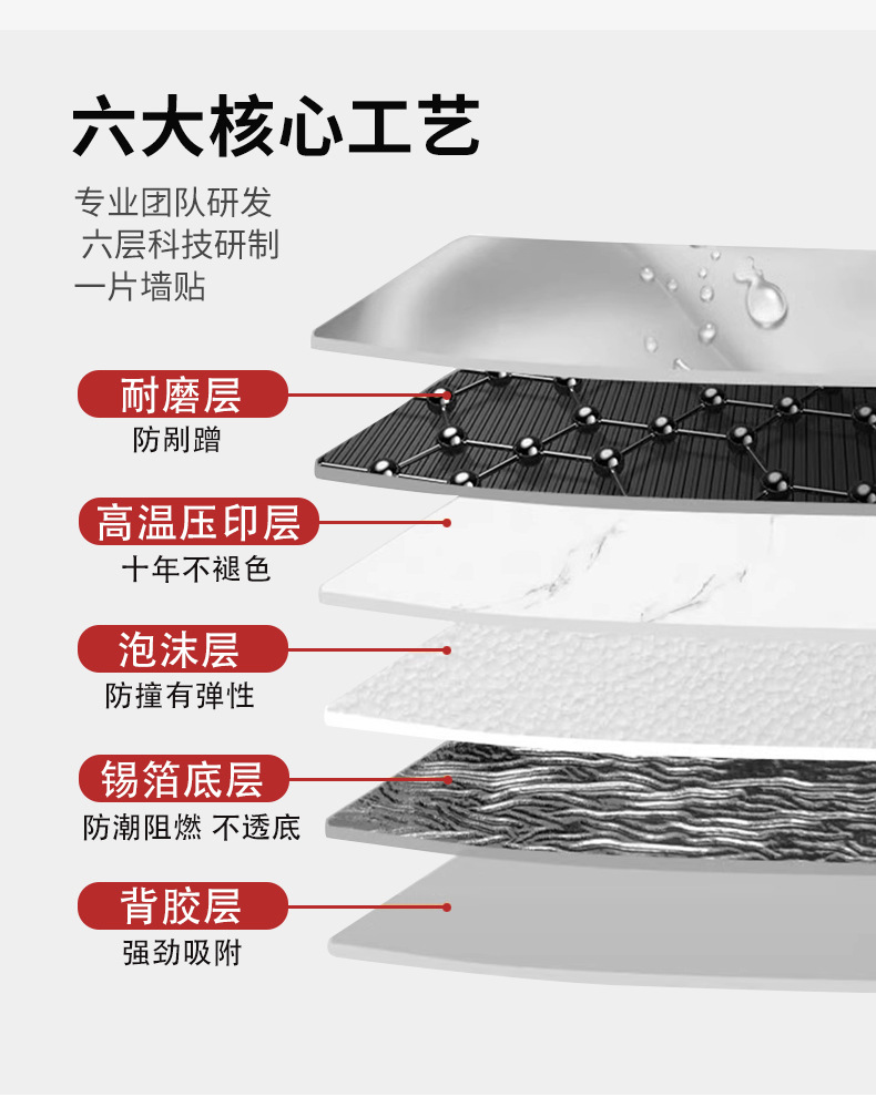 墙布表面不适合贴,其他平整光滑面都可以贴,表面不能有凹凸造形