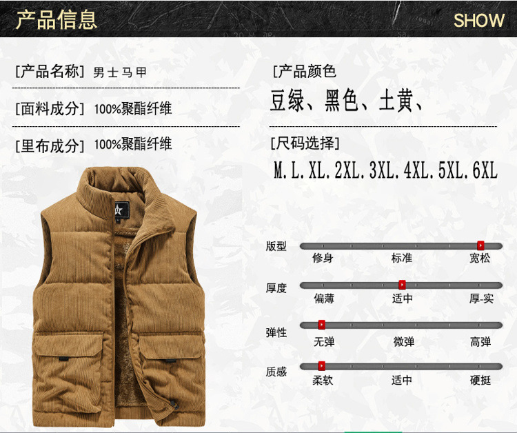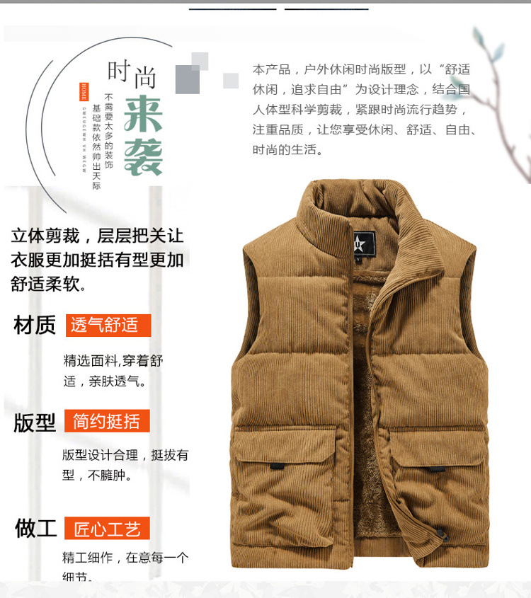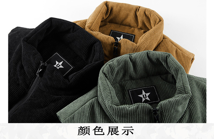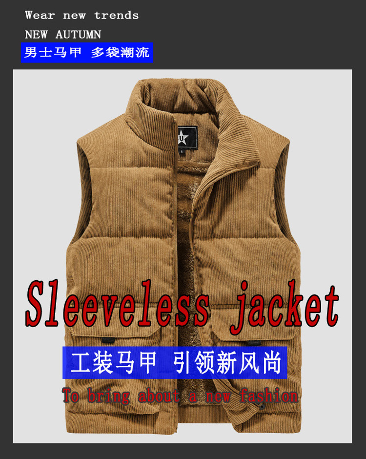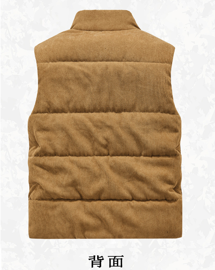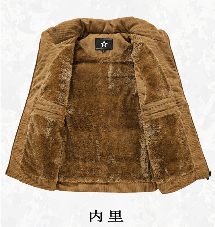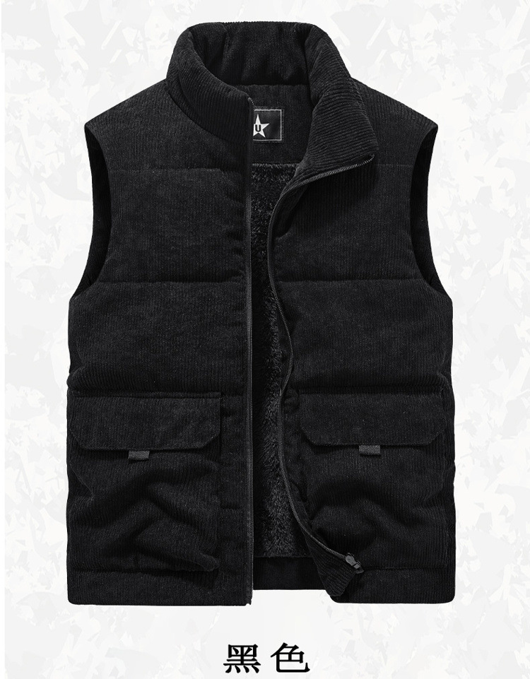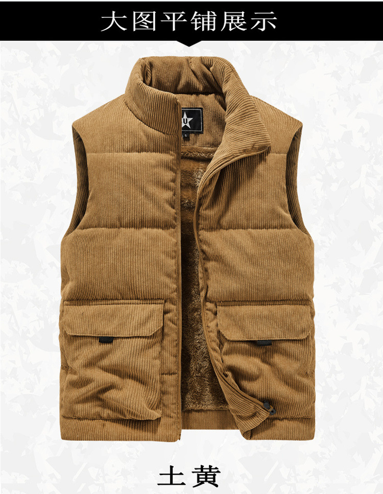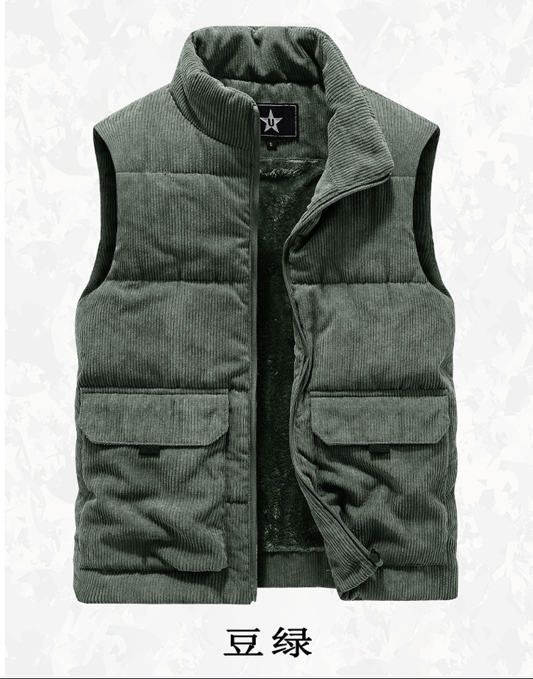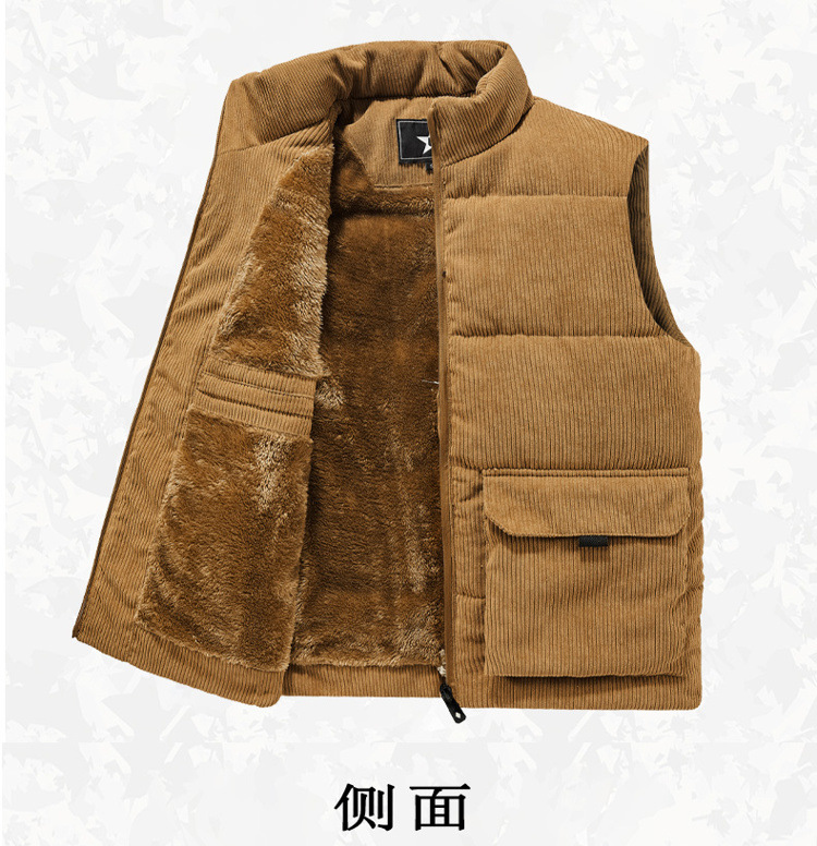 Вельветовый жилет, осенне-зимний мужской утолщенный жилет с воротником-стойкой на флисовой подкладке, жилет больших размеров, рабочая одежда, теплое пальто с хлопковой подкладкой