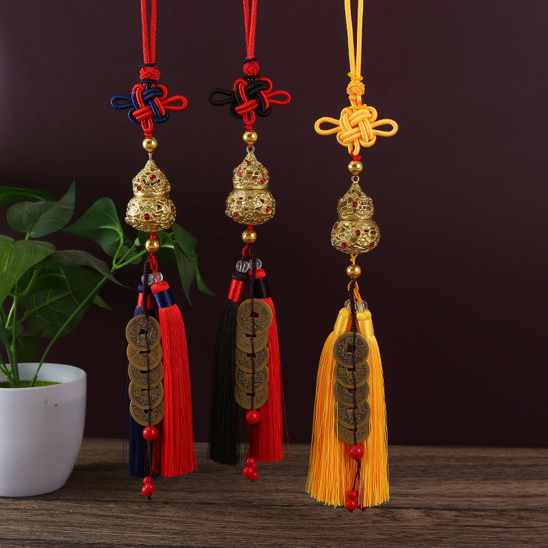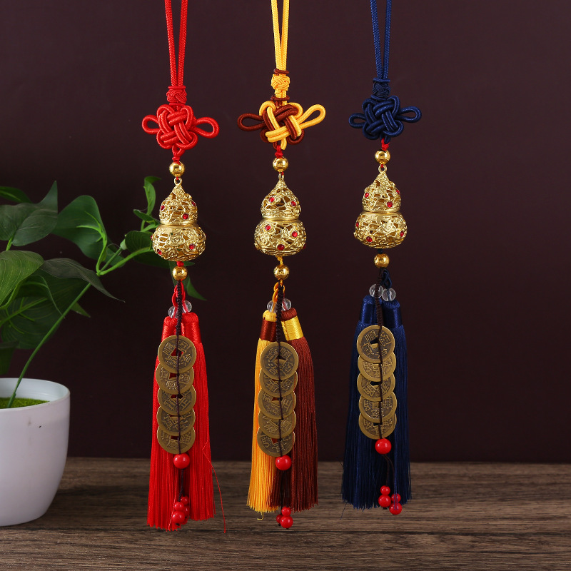 Медная Тыква пять императоров Автомобильная подвеска украшения для дома латунь ретро китайский стиль двухцветный счастливый узел подарок автомобиль висит
