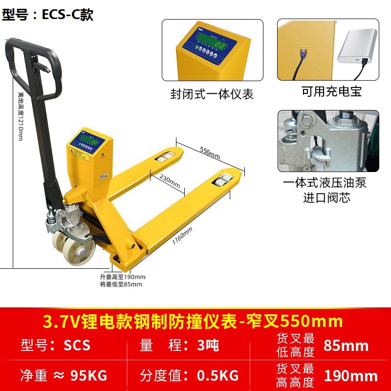 Цифровые весы для вилочного погрузчика ECS, взвешивающий вилочный погрузчик с весами, ручной гидравлический погрузчик, 2 тонны, 3 тонны, ручной погрузчик, весы, наземный бык