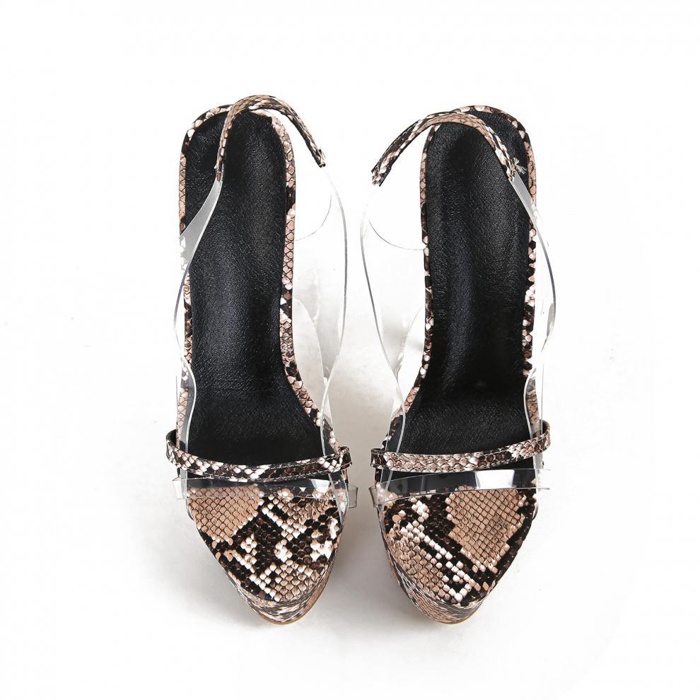 2024 летние новые европейские и американские сексуальные женские туфли на очень высоком каблуке 16 см со змеиным узором, водонепроницаемые сандалии на шпильке на платформе, размер 40 внешней торговли