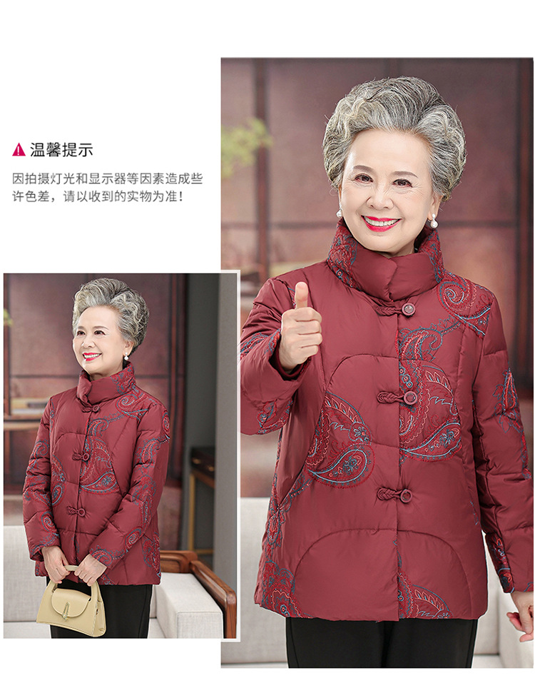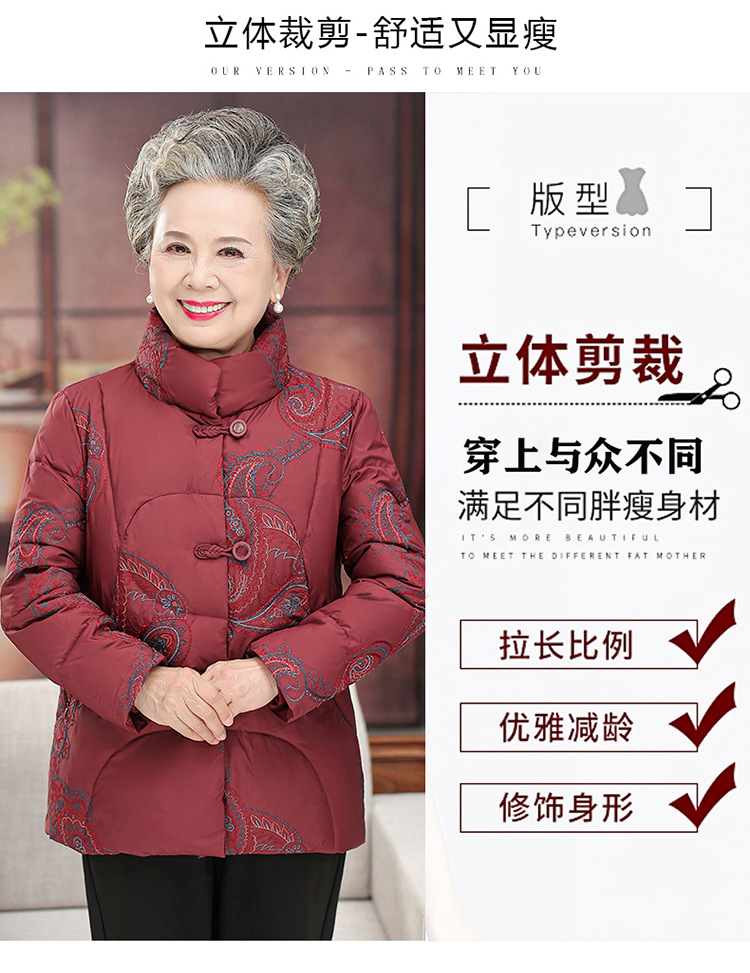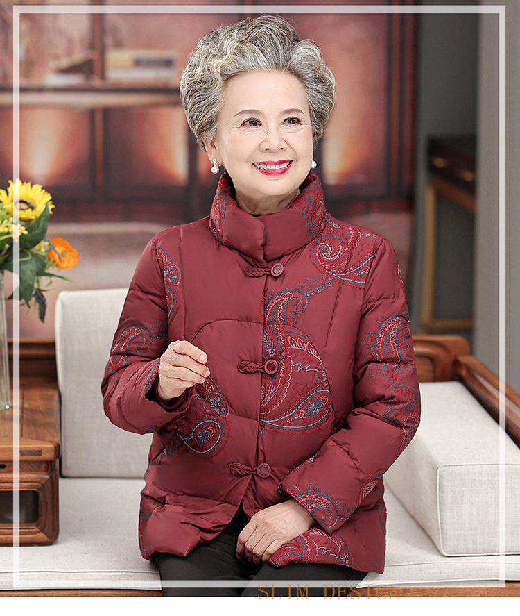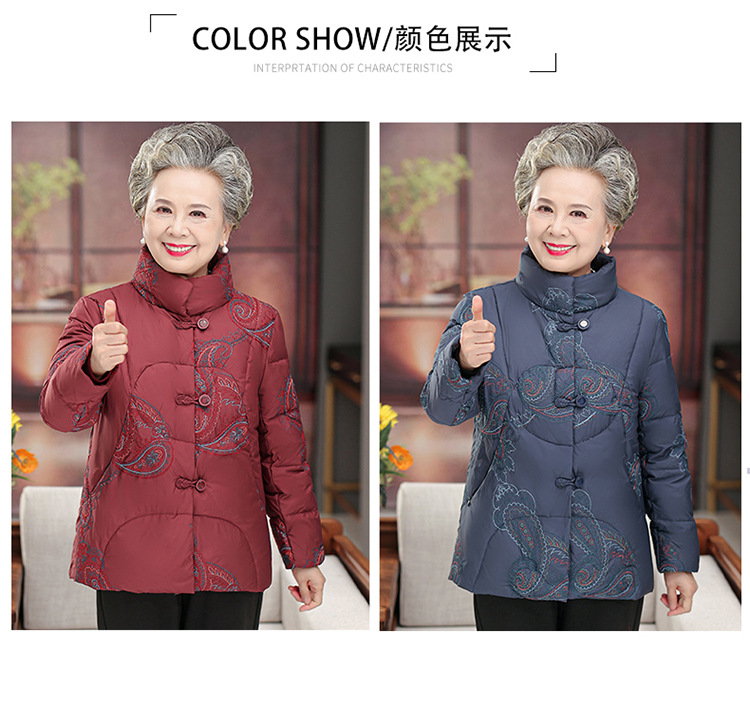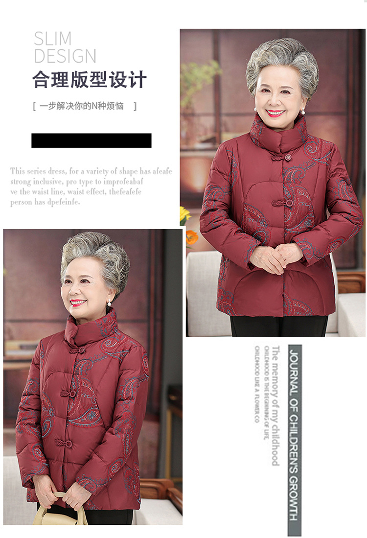 Осенняя одежда для пожилых людей Пуховик для женщин Одежда для бабушки Короткая куртка с хлопковой подкладкой для старой леди Куртка с хлопковой подкладкой для одежды матери для пожилых людей